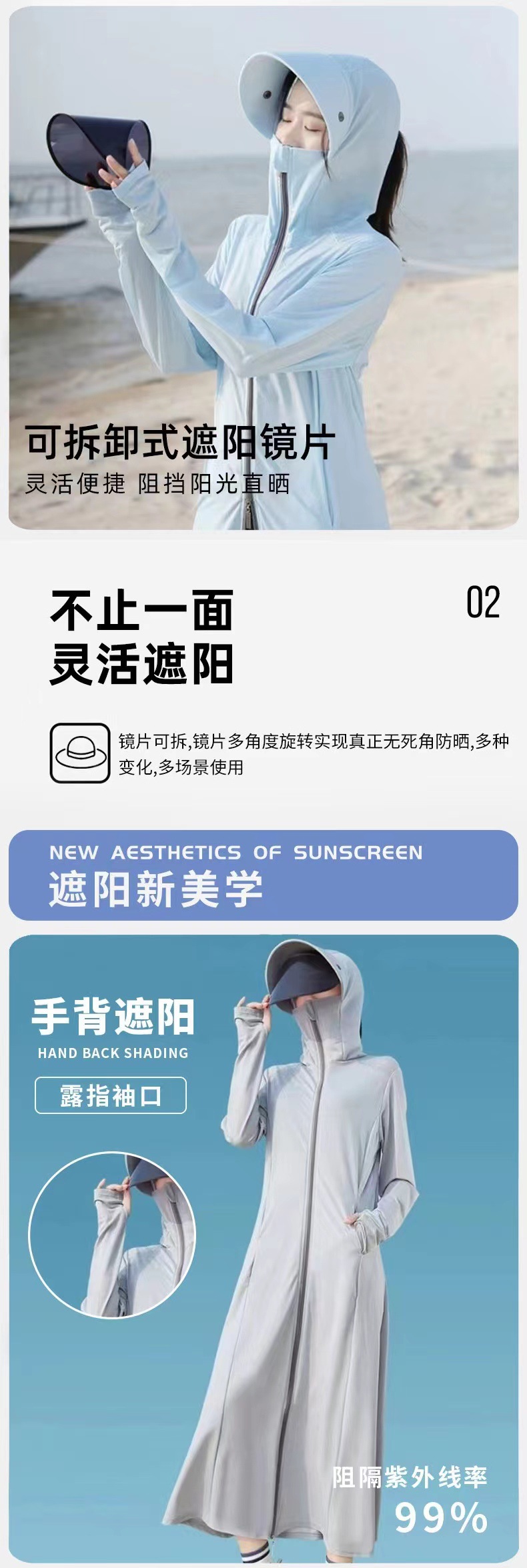 长款防晒衣女款夏季大檐镜片全身防紫外线薄款透气冰丝防晒 服外