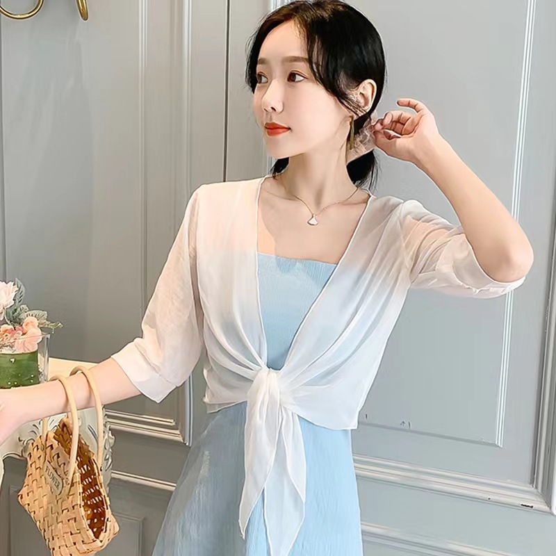 夏季新款防晒衣小披肩夏季外搭短款防晒开衫雪纺上衣女薄款百搭