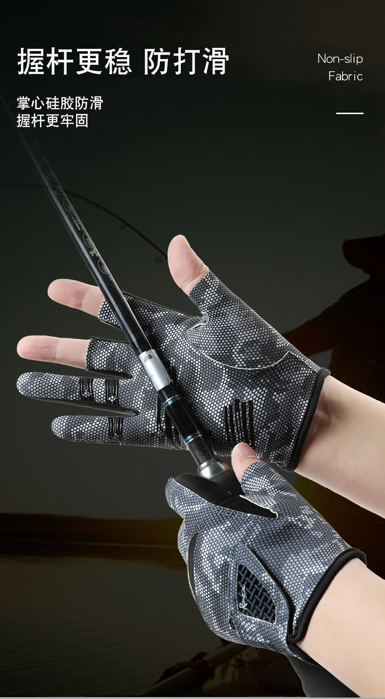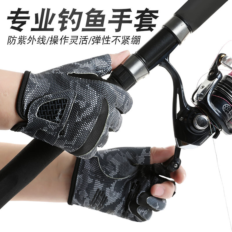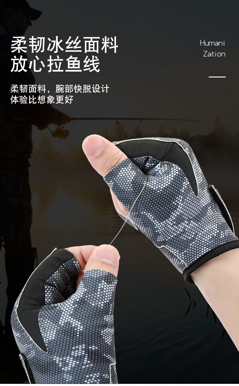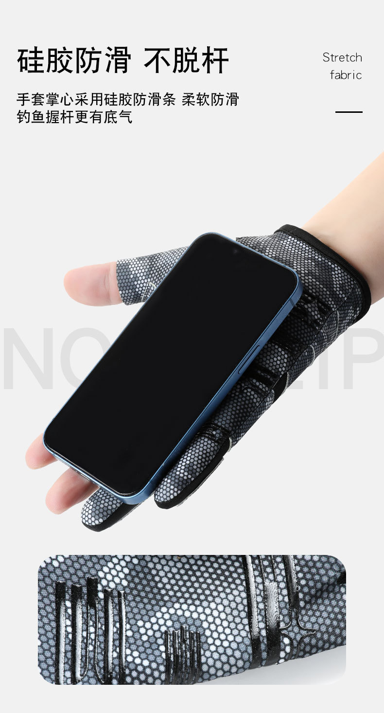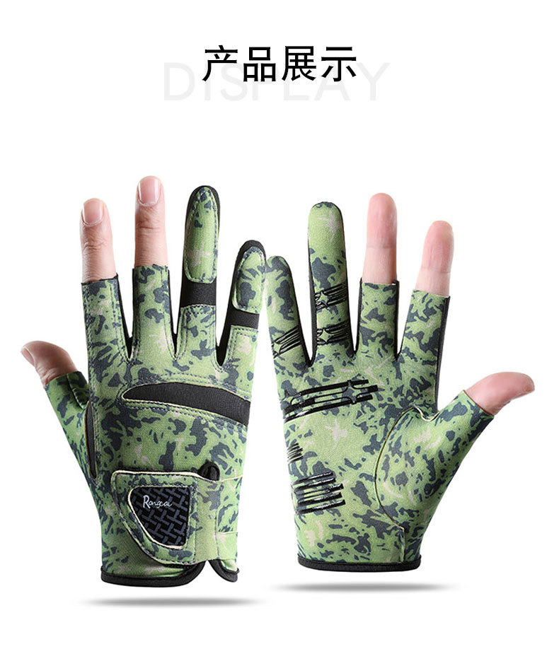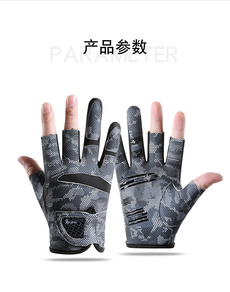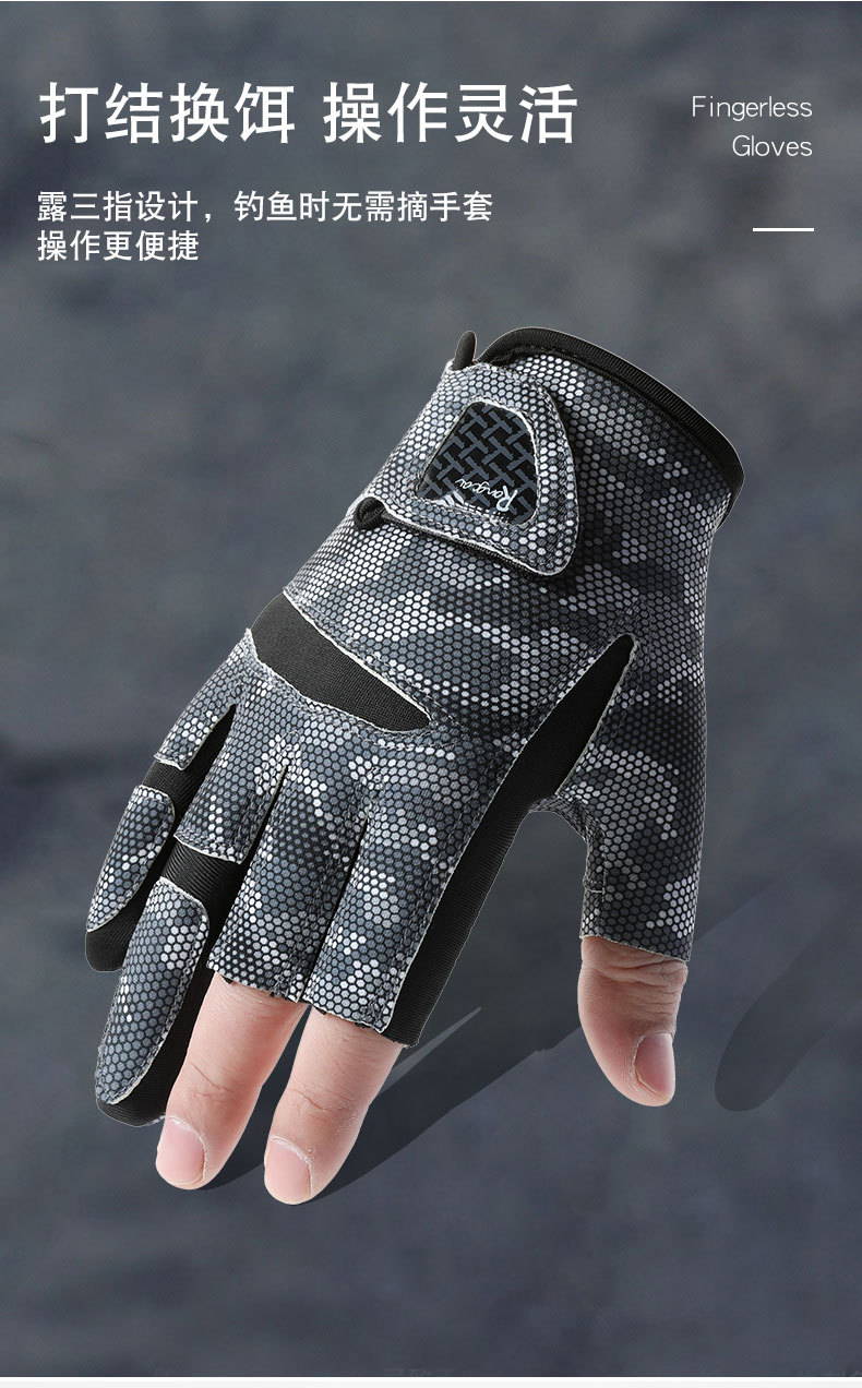 钓鱼手套男漏三指防晒耐磨防滑透气春夏季垂钓路亚手套亚马逊跨境
