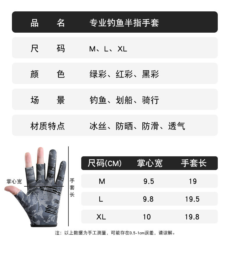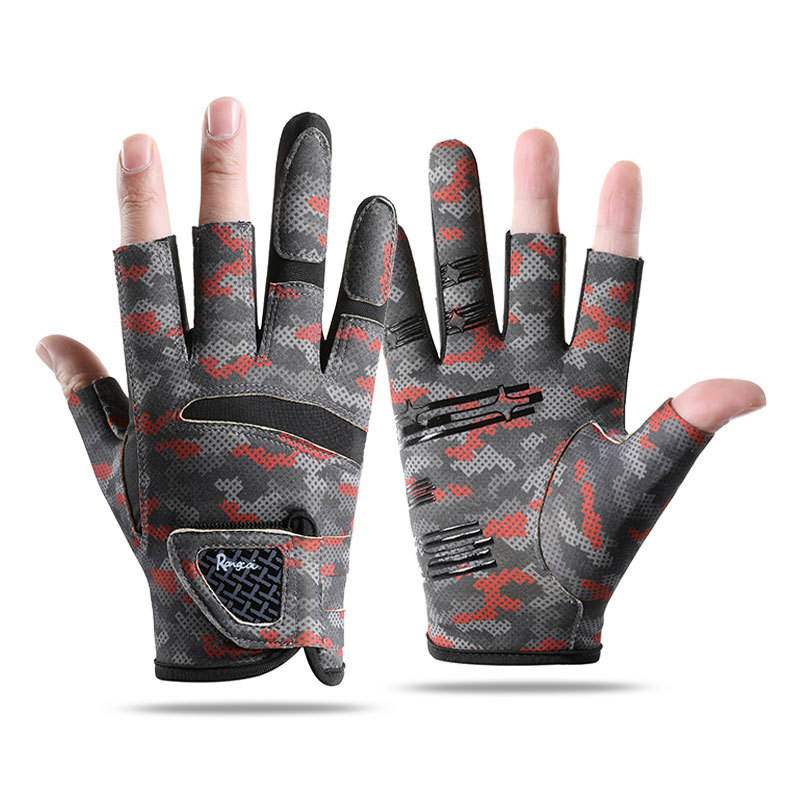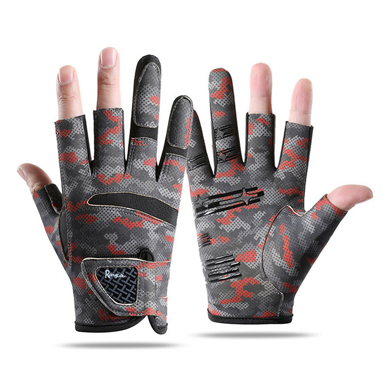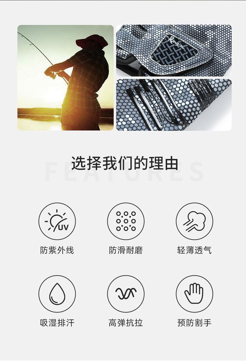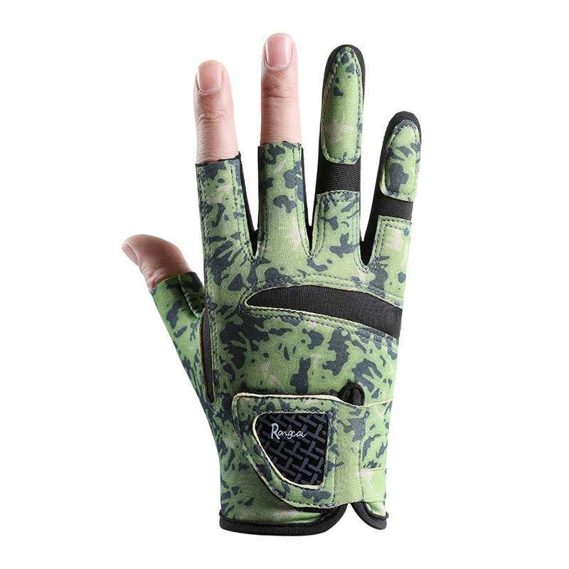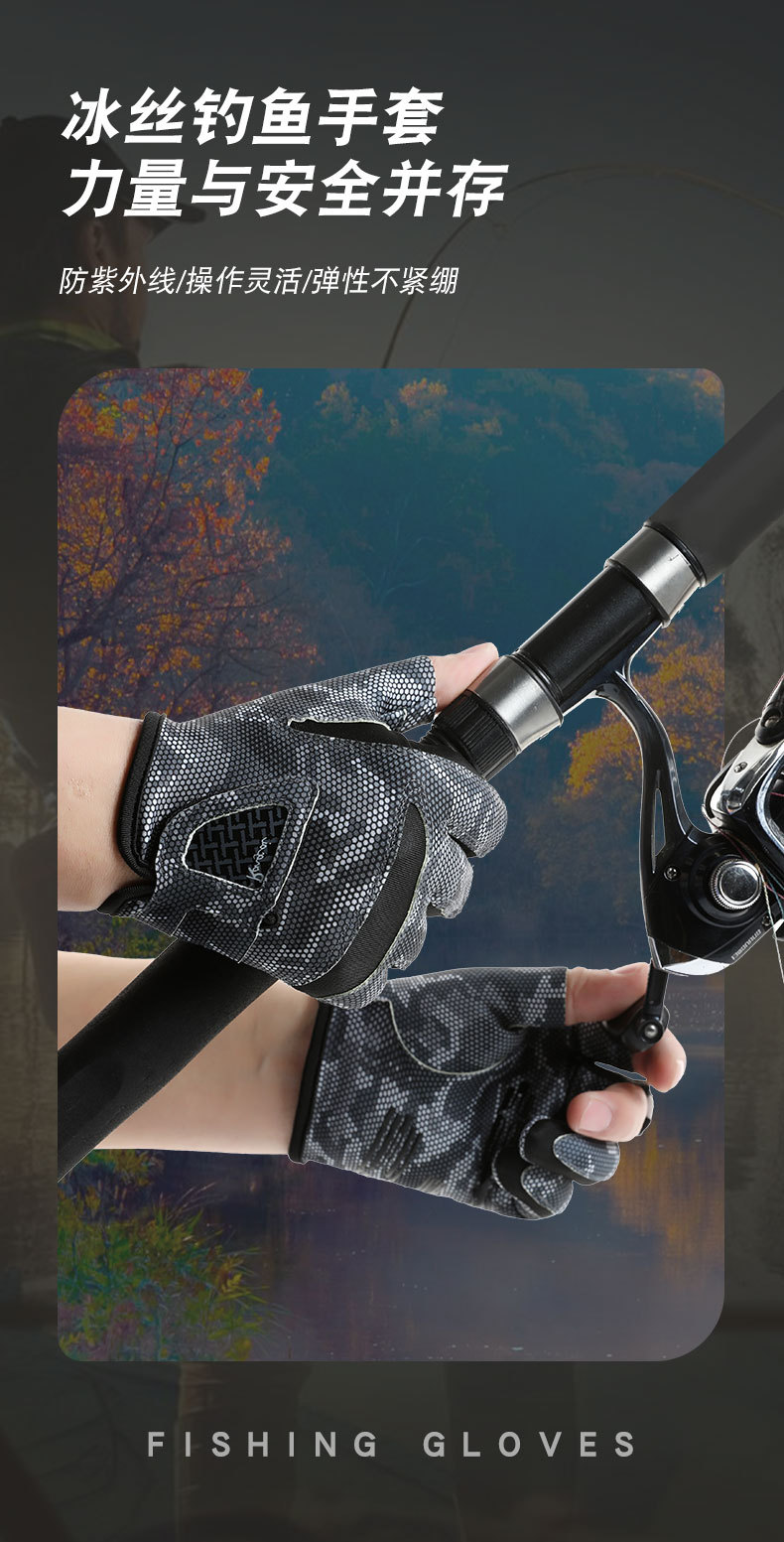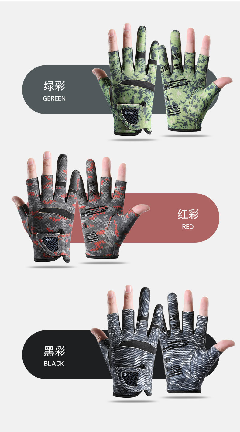 钓鱼手套男漏三指防晒耐磨防滑透气春夏季垂钓路亚手套亚马逊跨境
