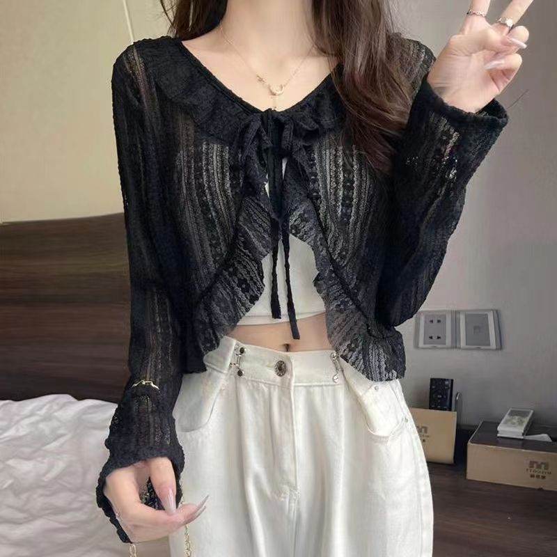 夏季新款百搭蕾丝小披肩外套短款长袖防晒衫外搭开衫薄款空调衫