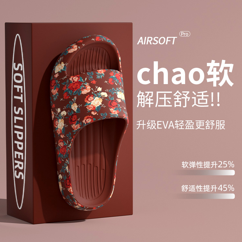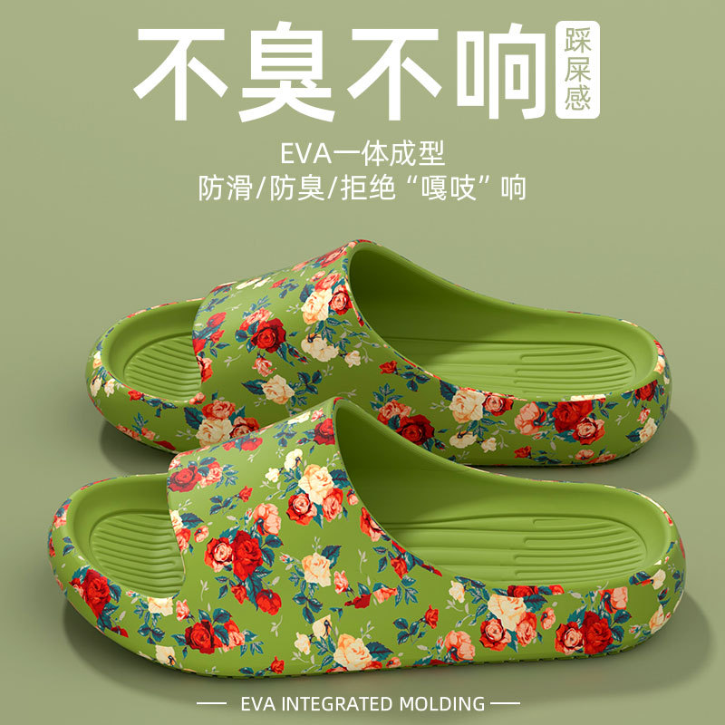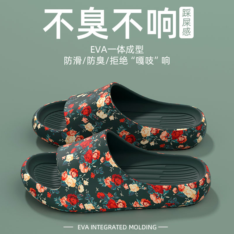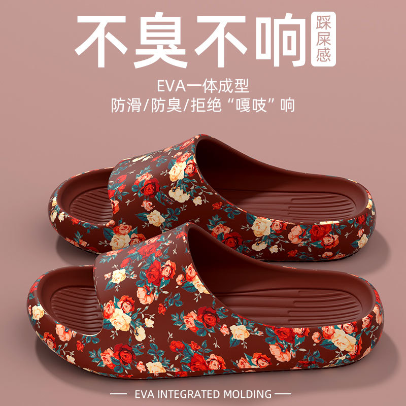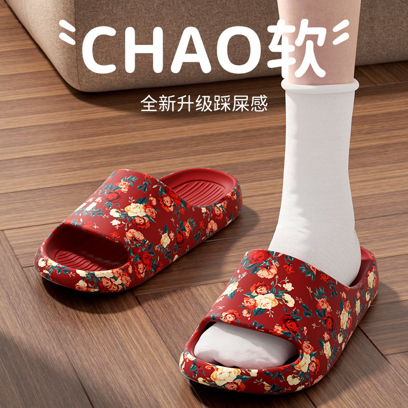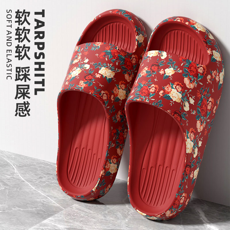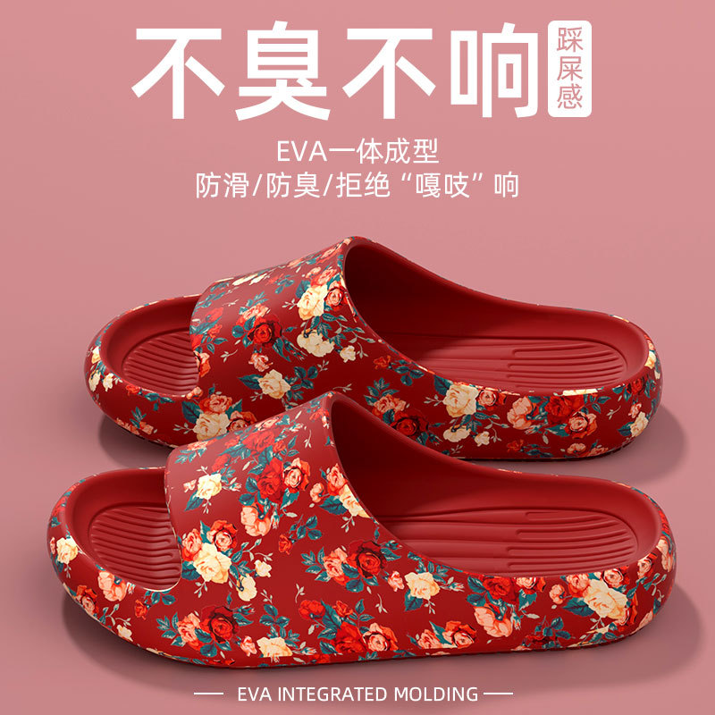 东北大花凉拖鞋女夏季结婚喜庆情侣居家防滑厚底踩屎感外穿凉拖男