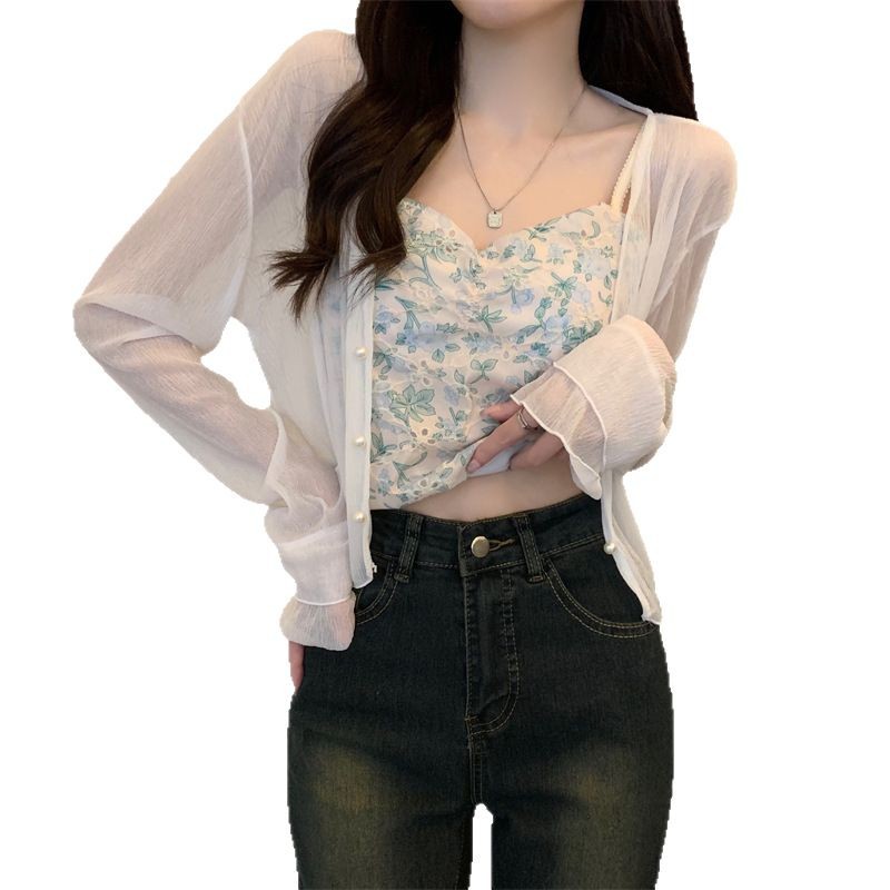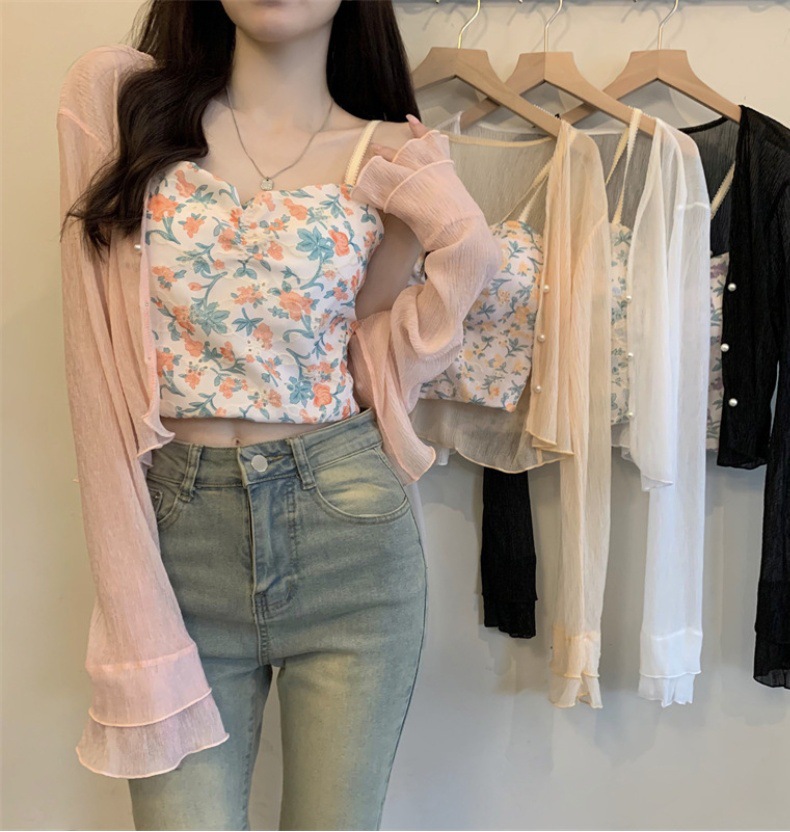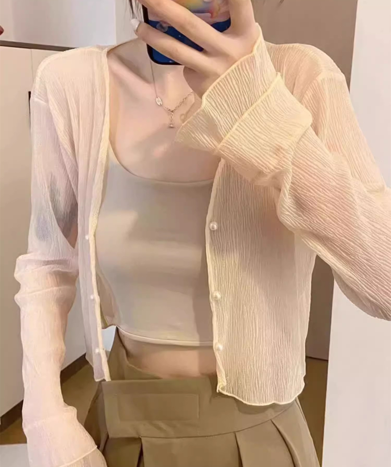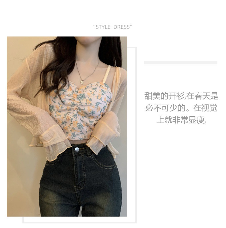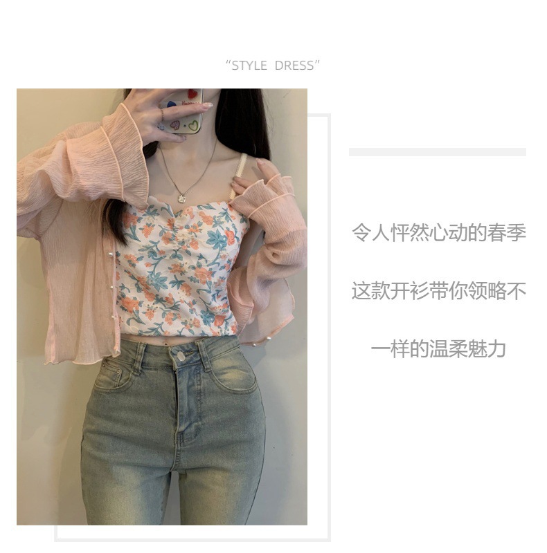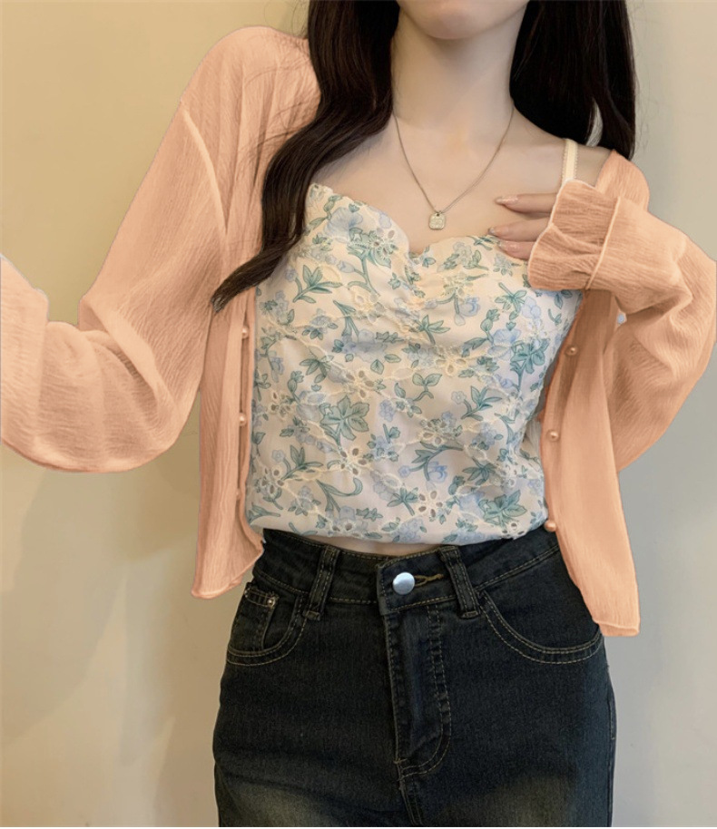 法式女长袖防晒雪纺外搭披肩空调小开衫沙滩防晒衣新款2025年夏天
