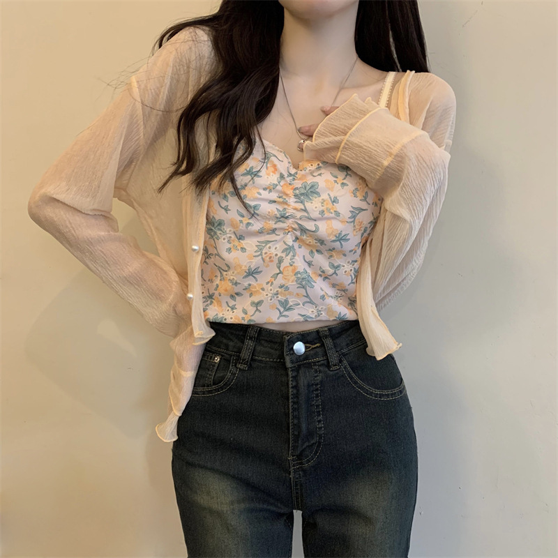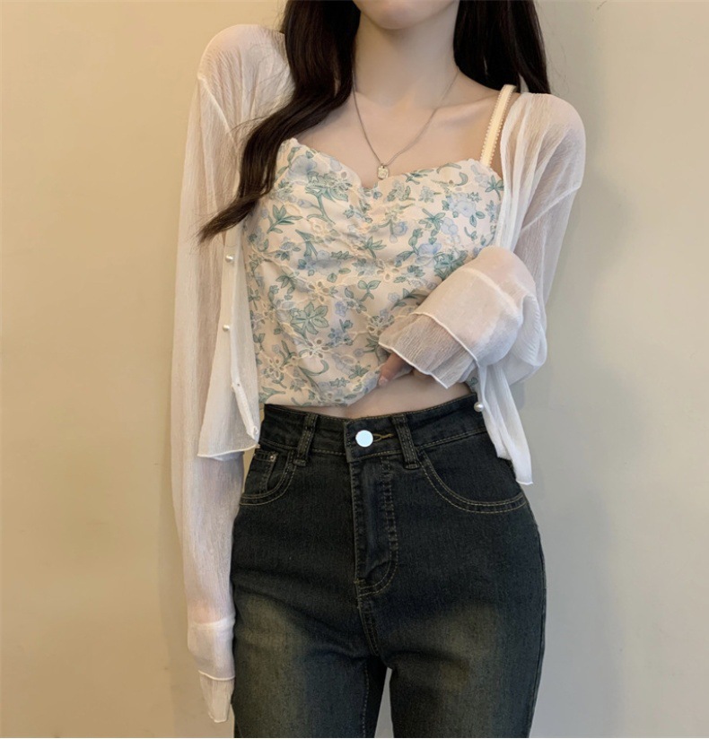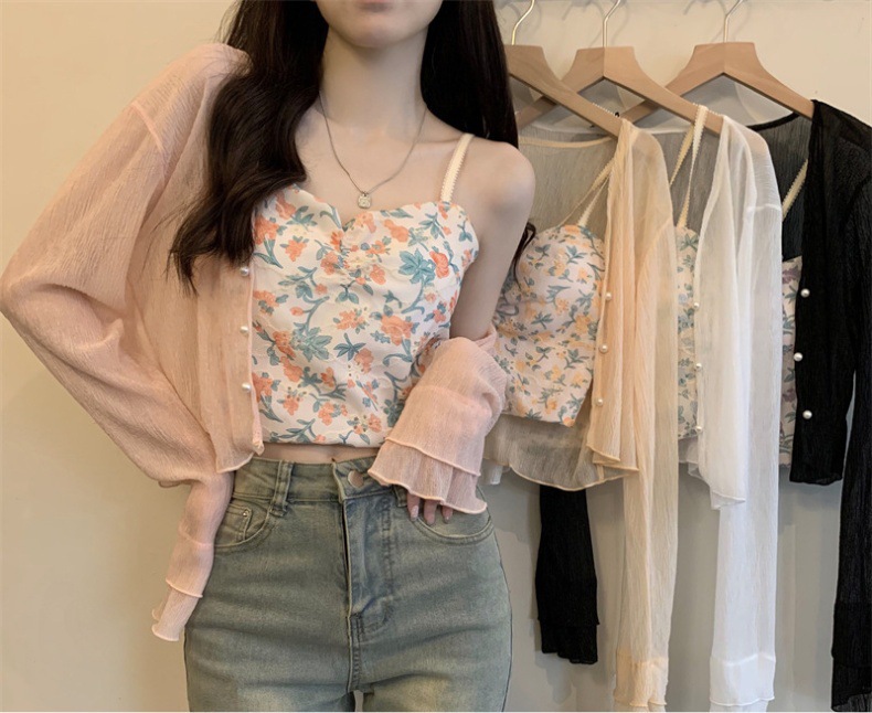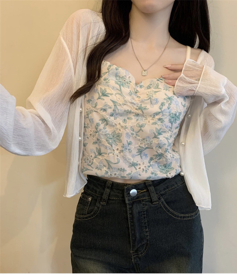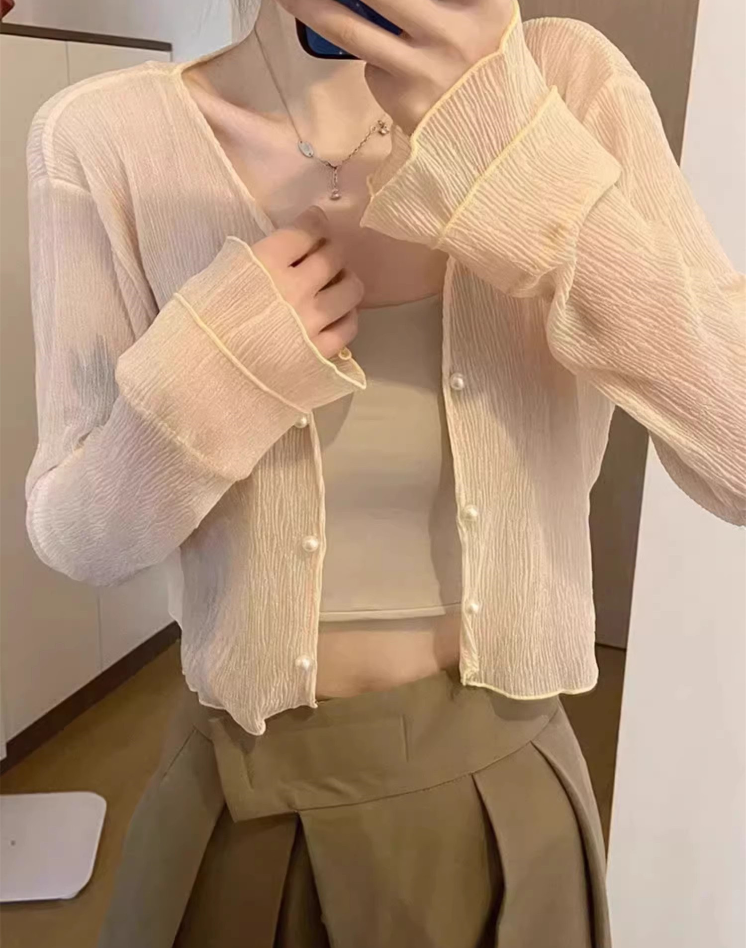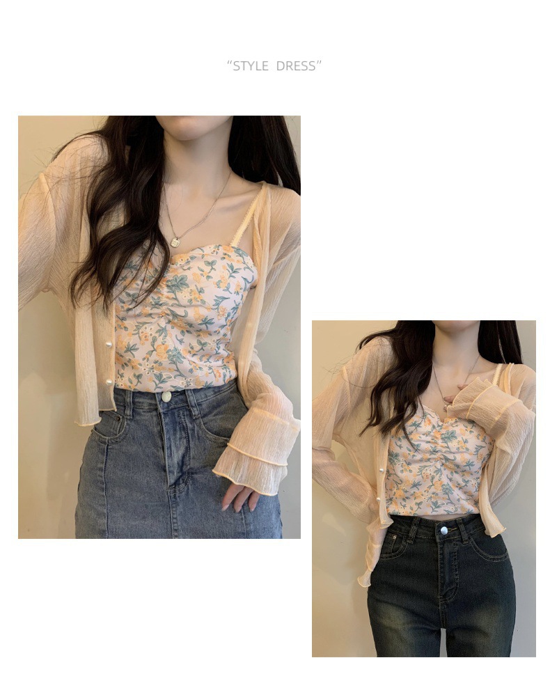 法式女长袖防晒雪纺外搭披肩空调小开衫沙滩防晒衣新款2025年夏天
