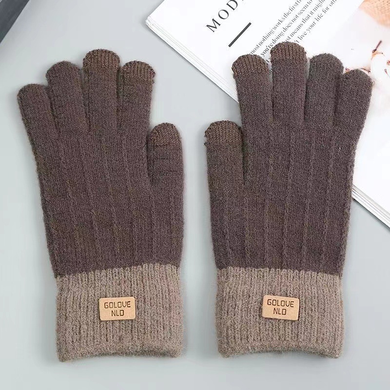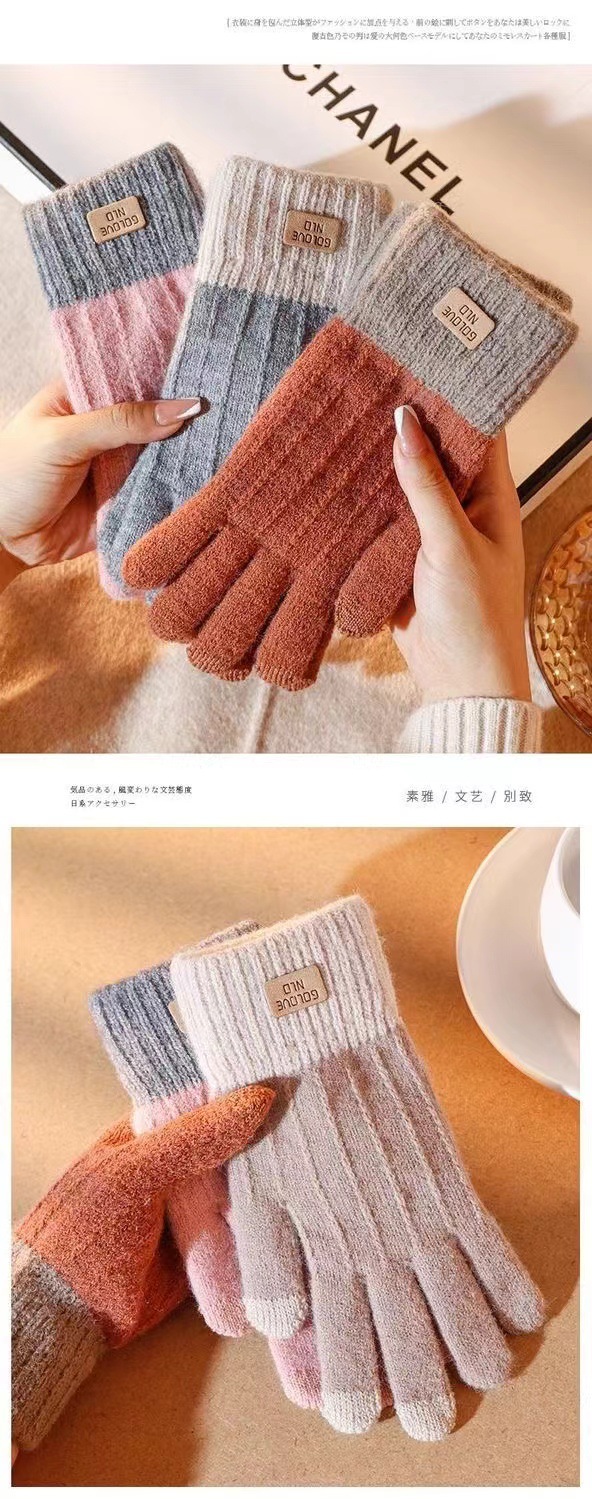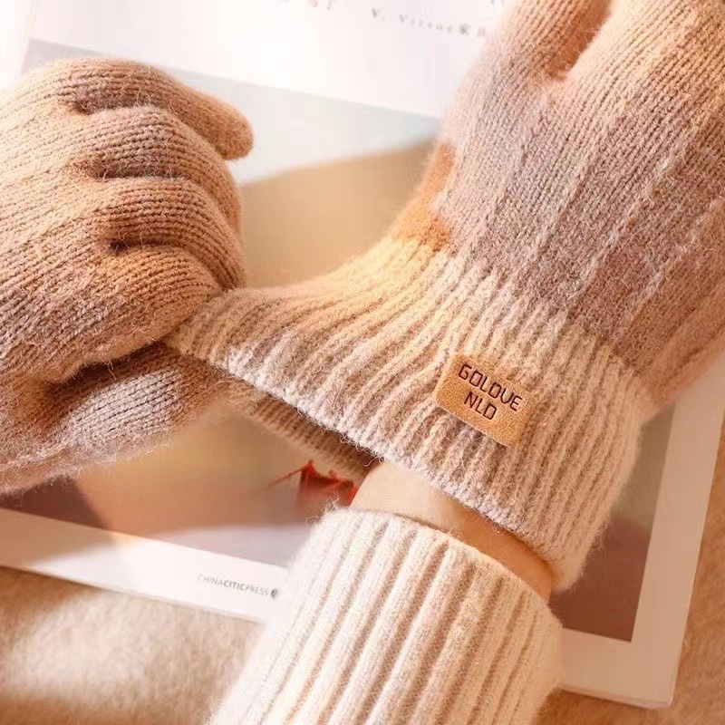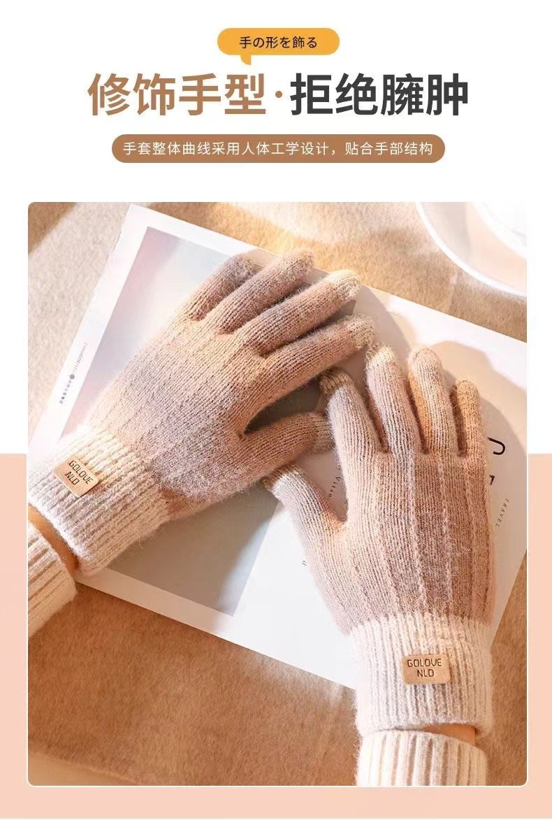针织触屏手套保暖防滑加绒加厚羊驼绒女士秋冬季韩版情侣毛线手套