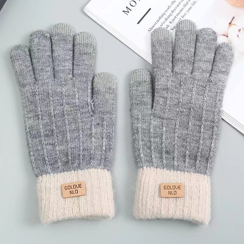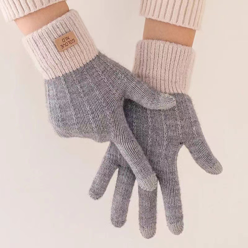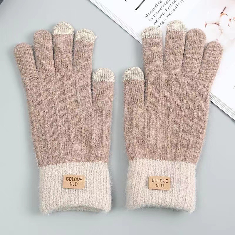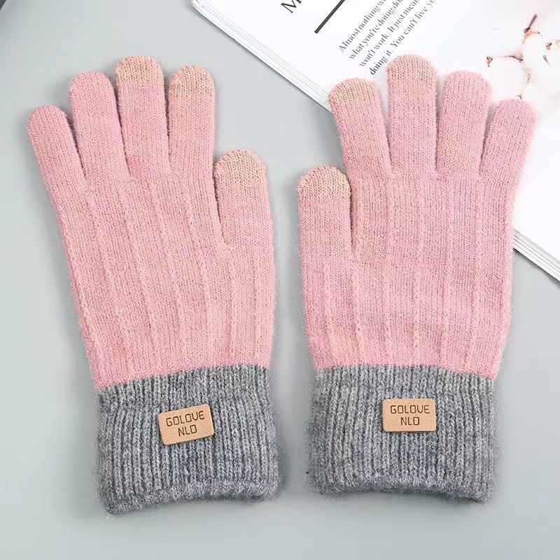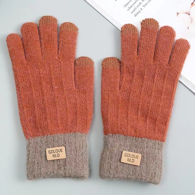 针织触屏手套保暖防滑加绒加厚羊驼绒女士秋冬季韩版情侣毛线手套