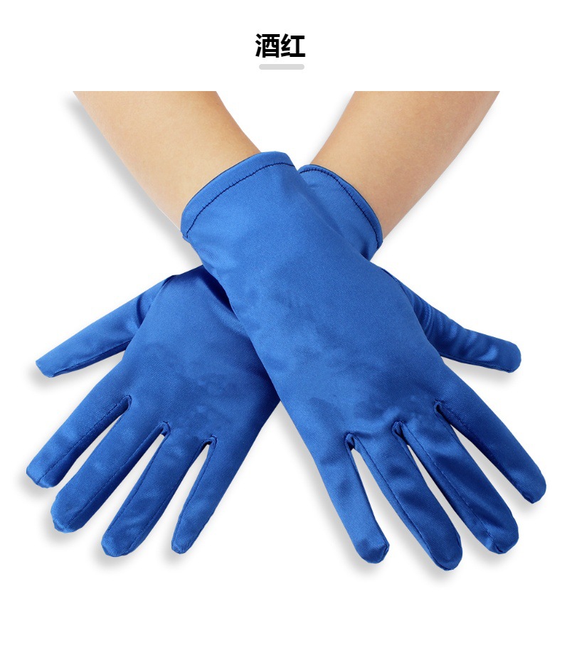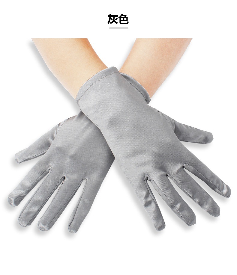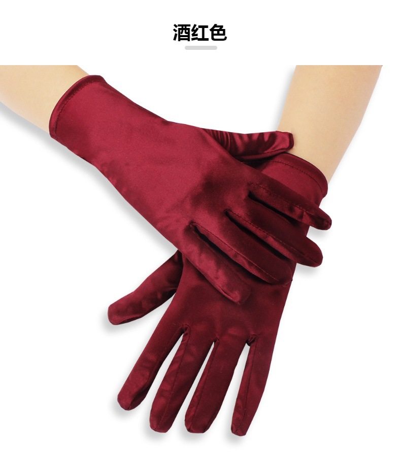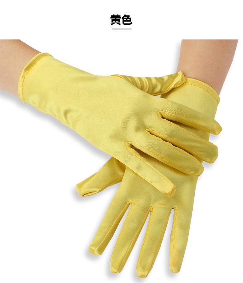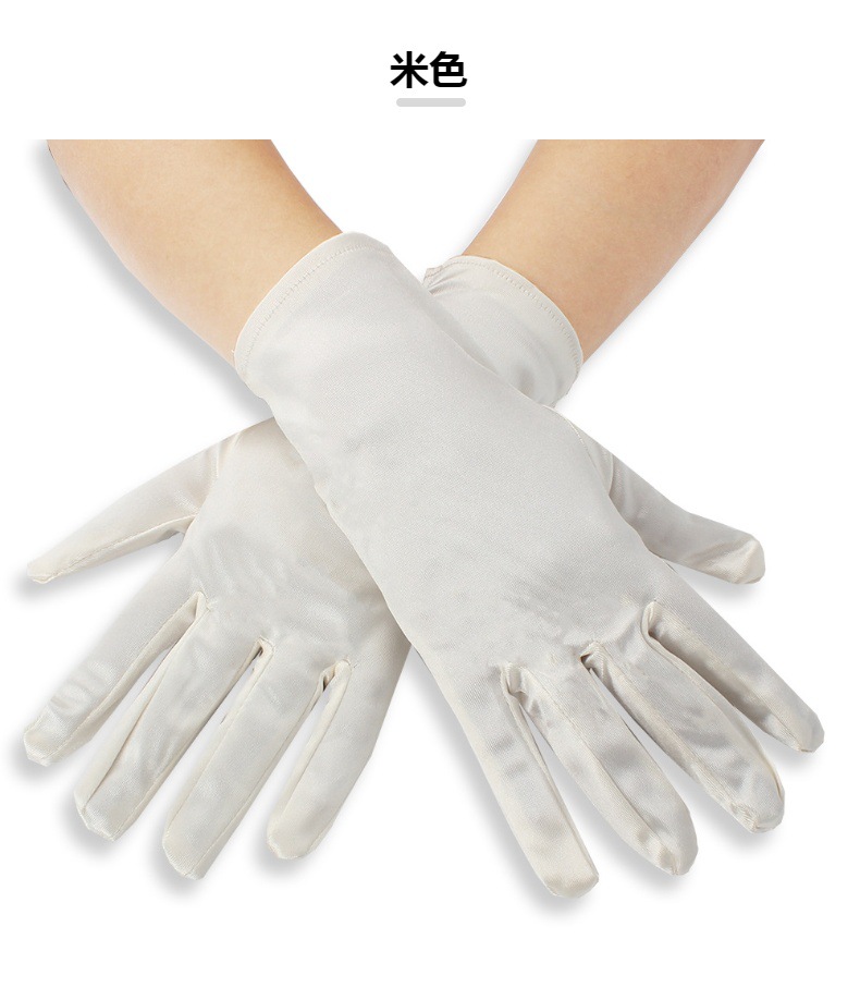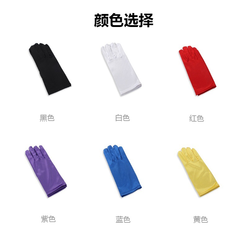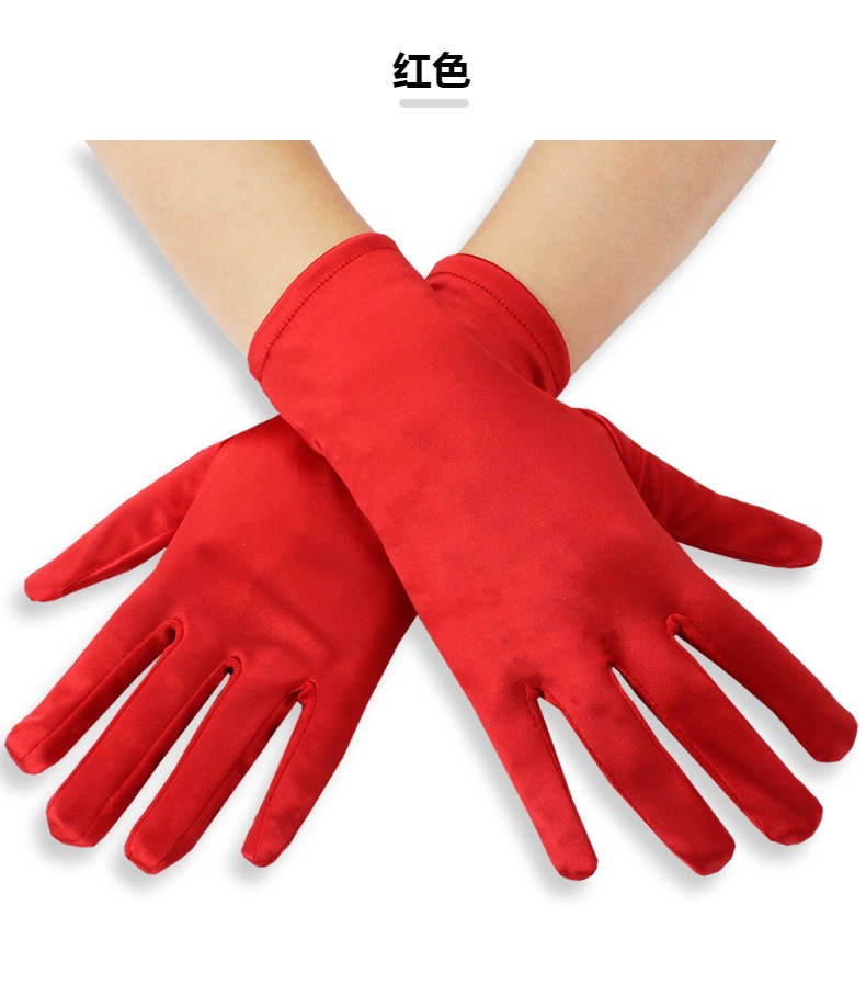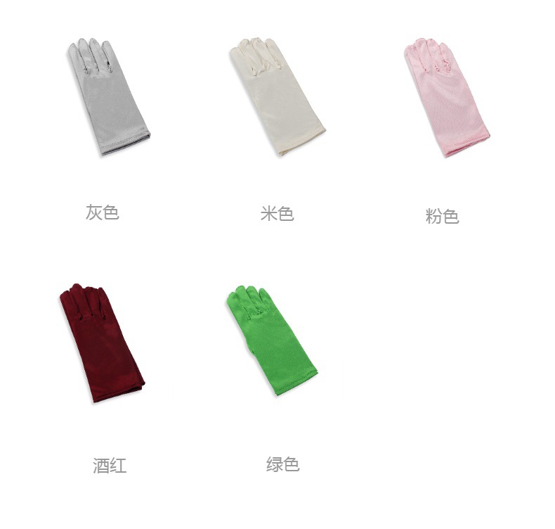 新娘全涤色丁短款婚纱手套女士舞台表演礼服结婚手套缎面手套多色