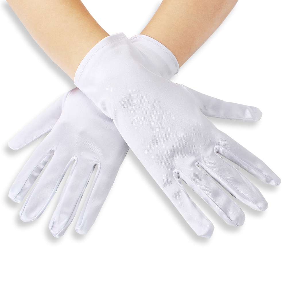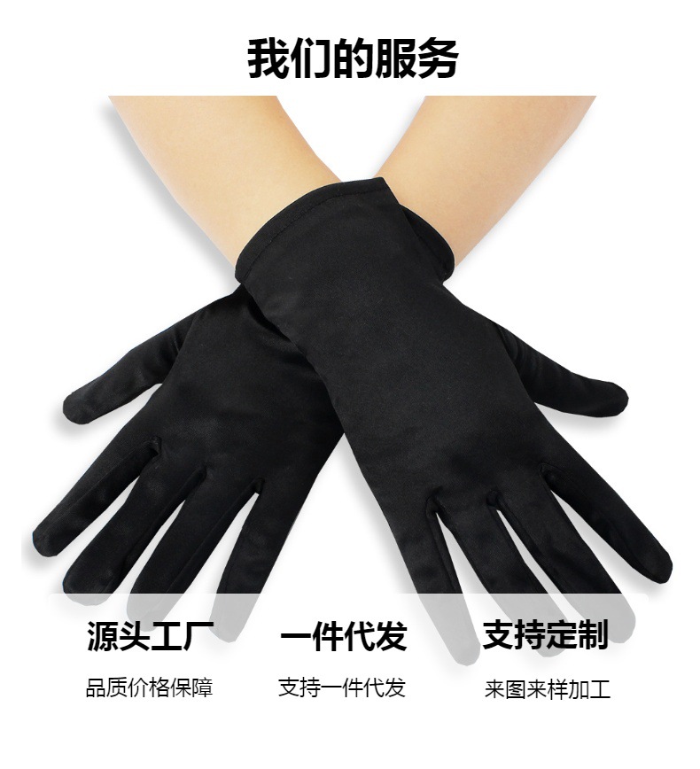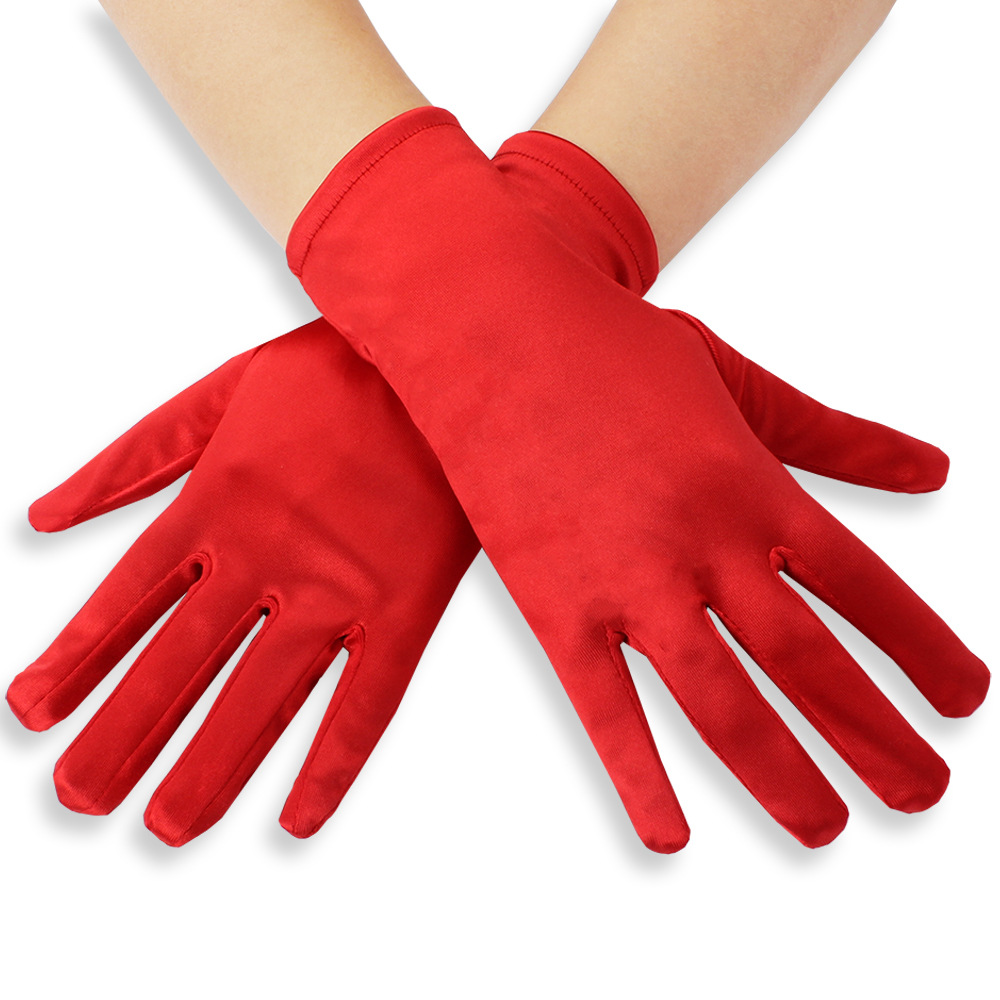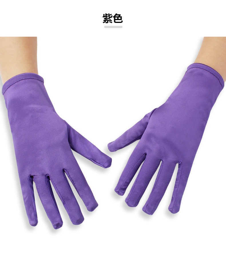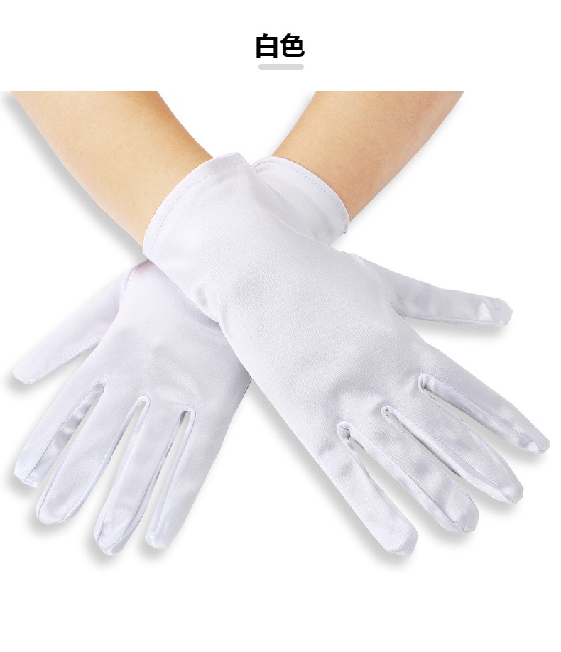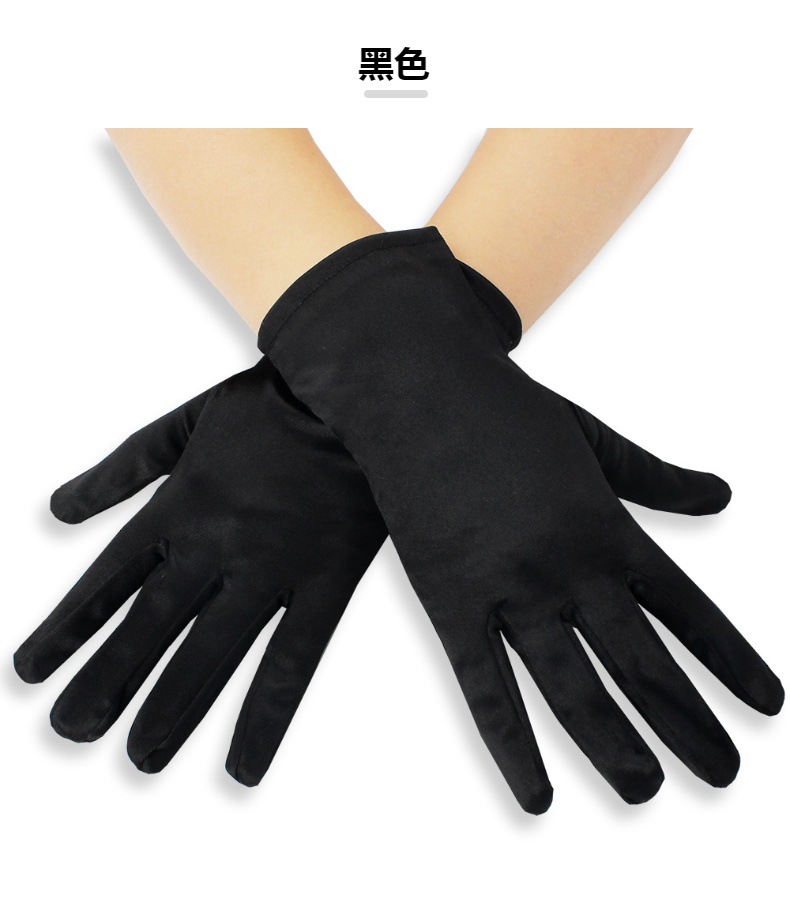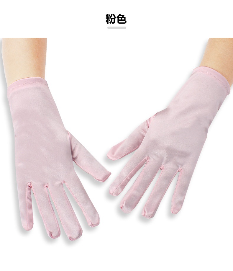 新娘全涤色丁短款婚纱手套女士舞台表演礼服结婚手套缎面手套多色