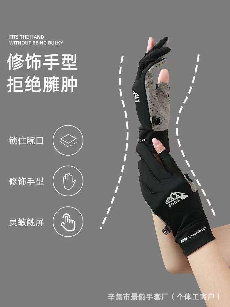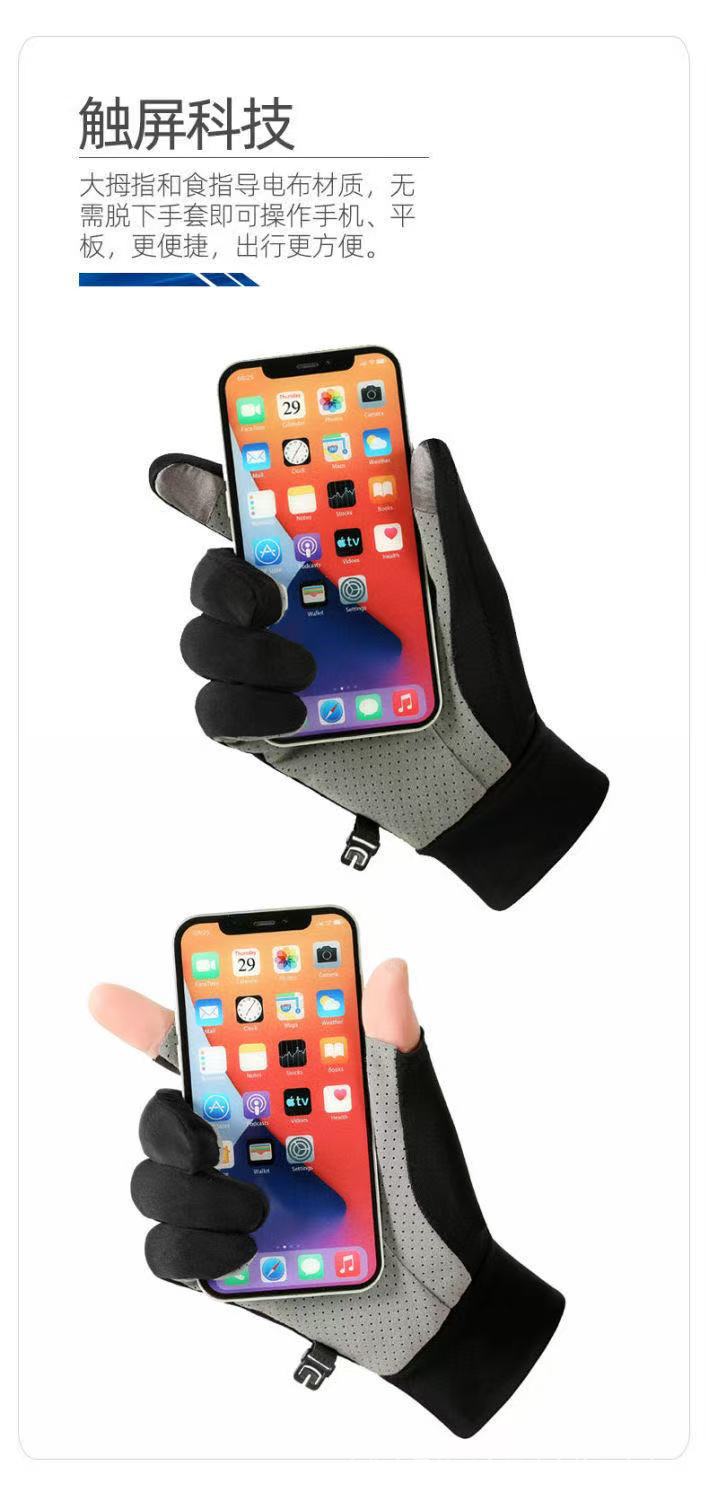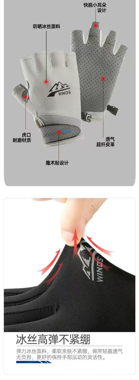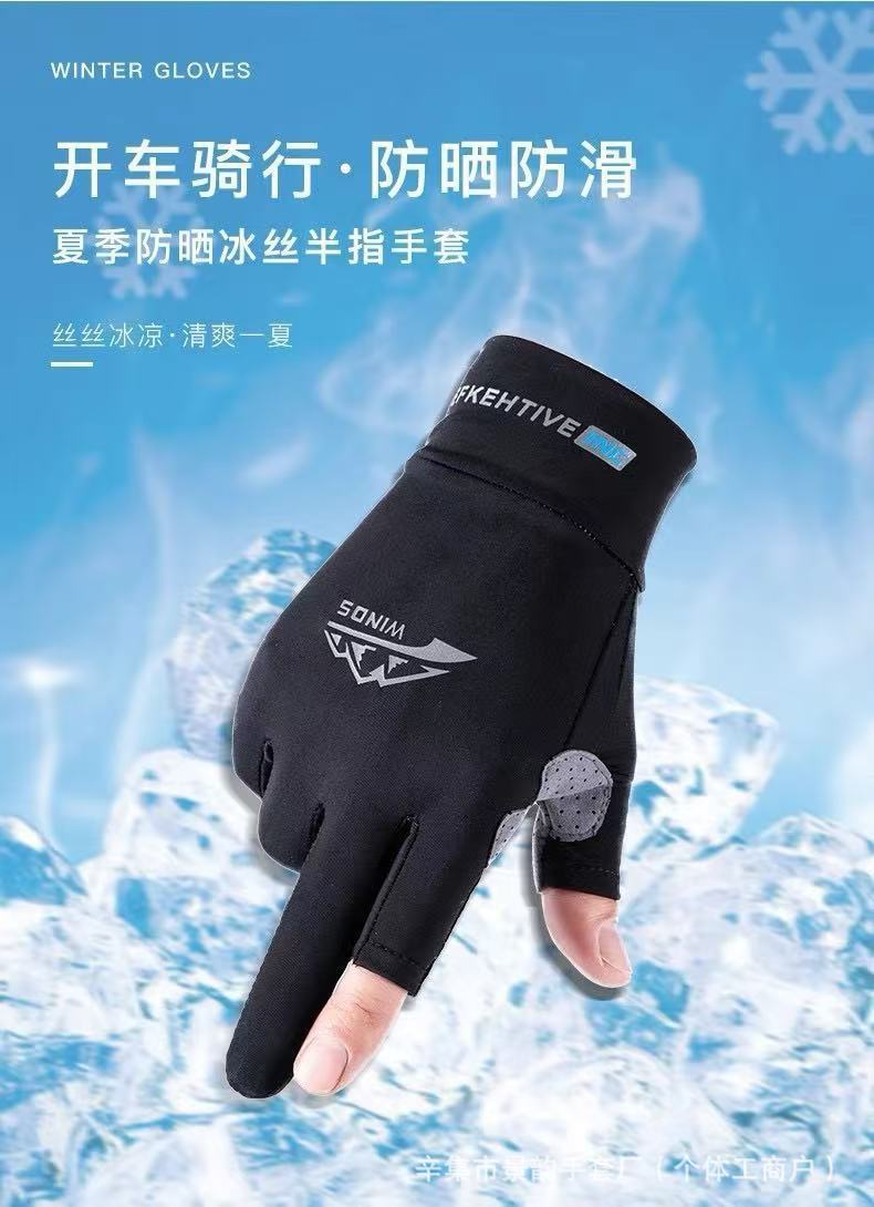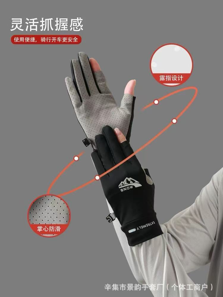 防晒手套男女士夏季冰丝防滑透气开车触屏骑行情侣漏二指钓鱼手套