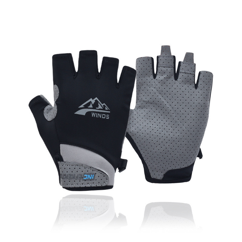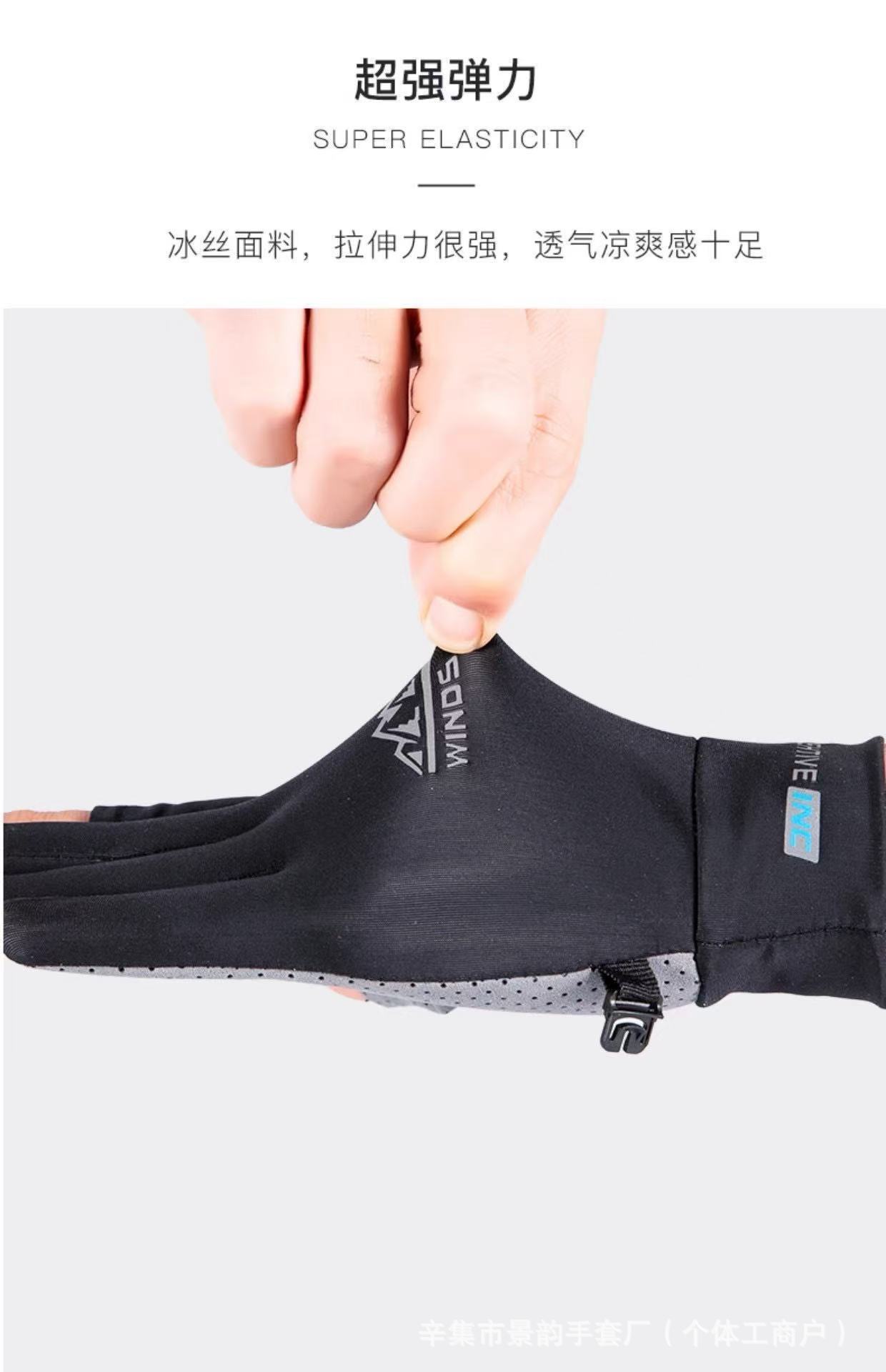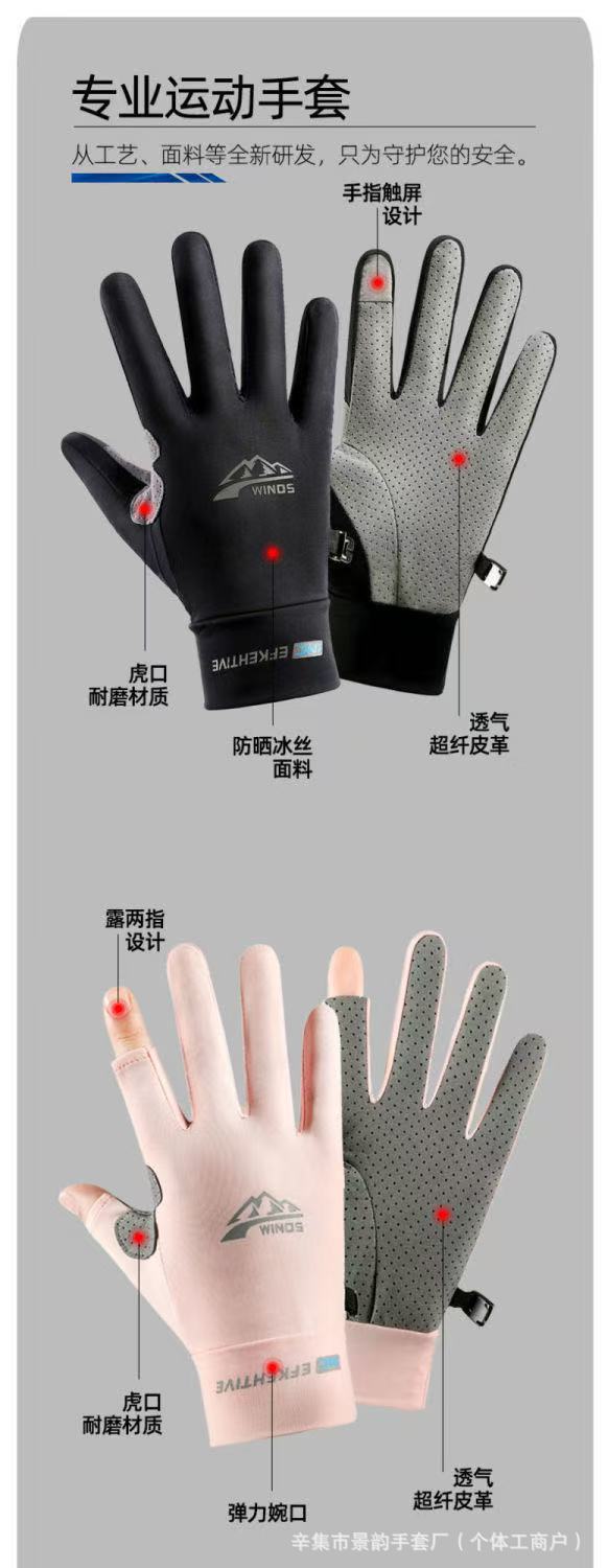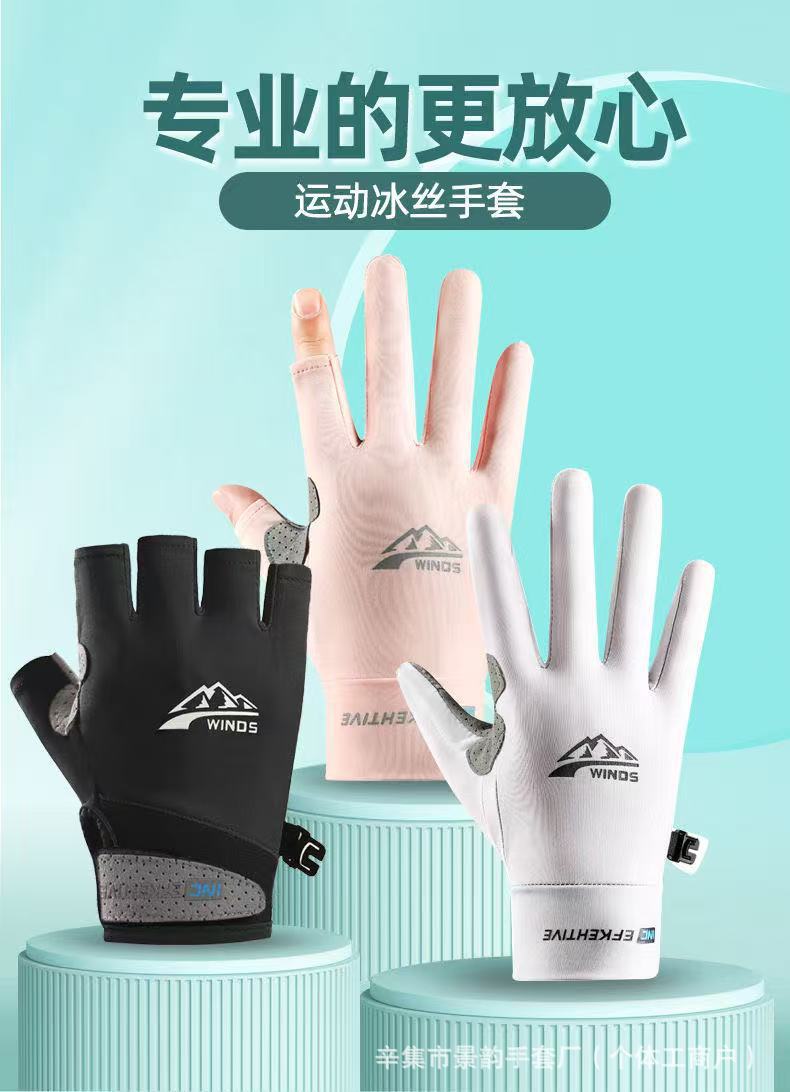 防晒手套男女士夏季冰丝防滑透气开车触屏骑行情侣漏二指钓鱼手套