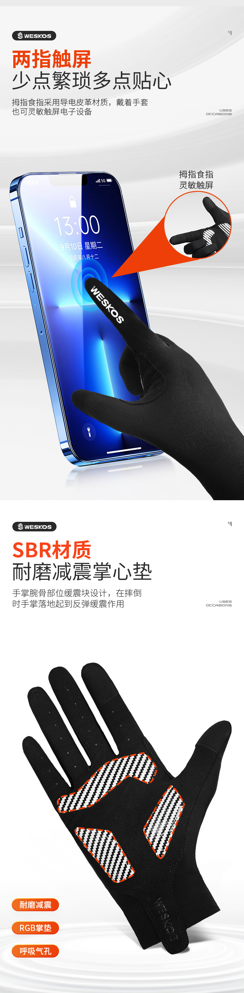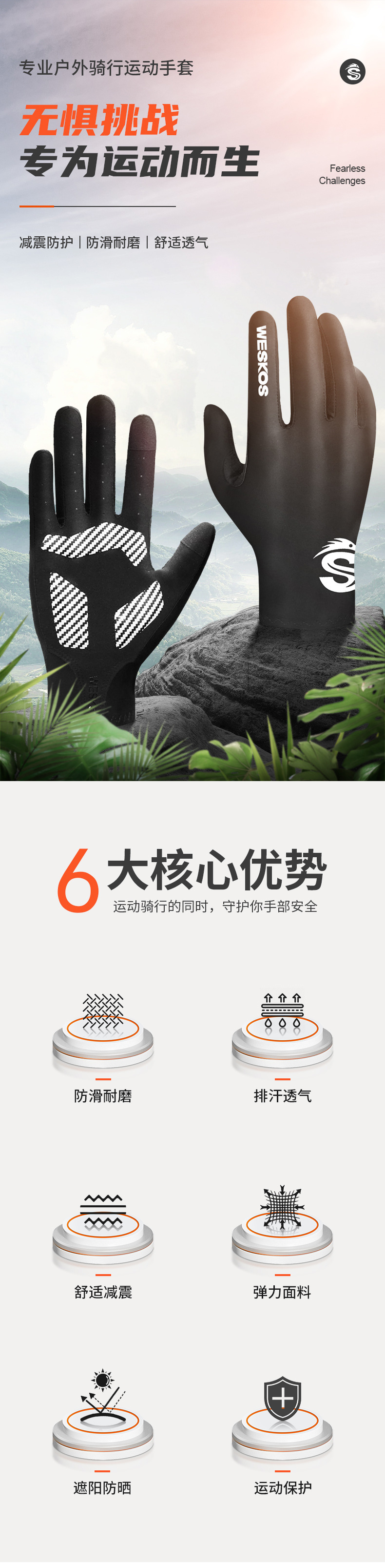 定制骑行手套夏季防晒自行车长指防震防滑户外运动触屏户外骑行