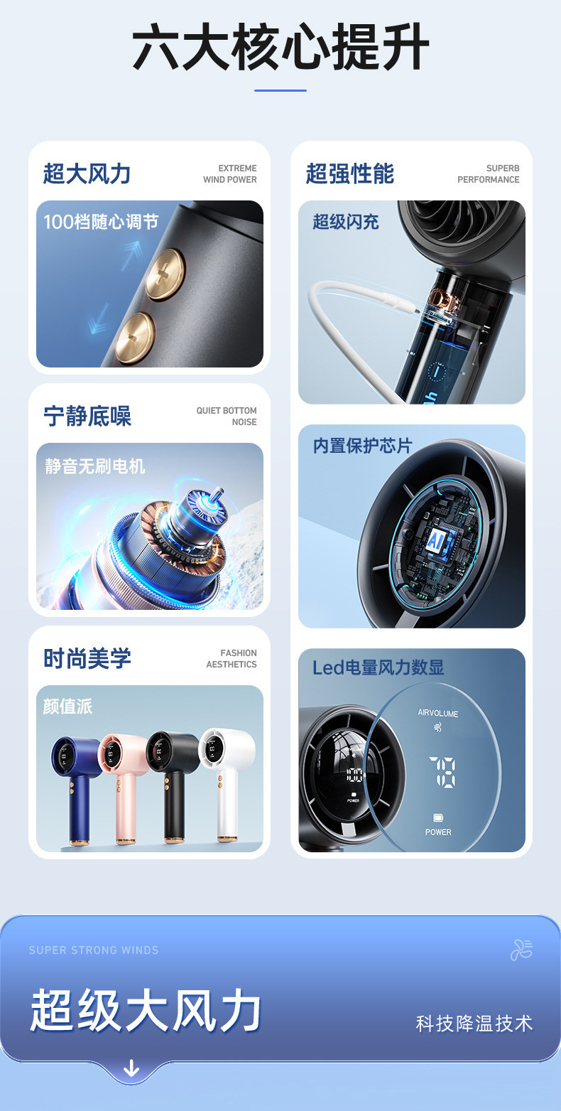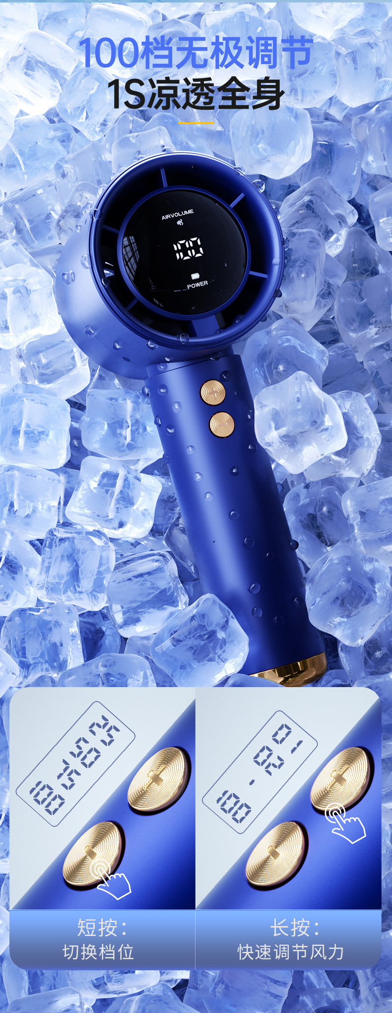 新款100档高速手持风扇usb迷你便携式充电涡轮小风扇桌面小电风扇