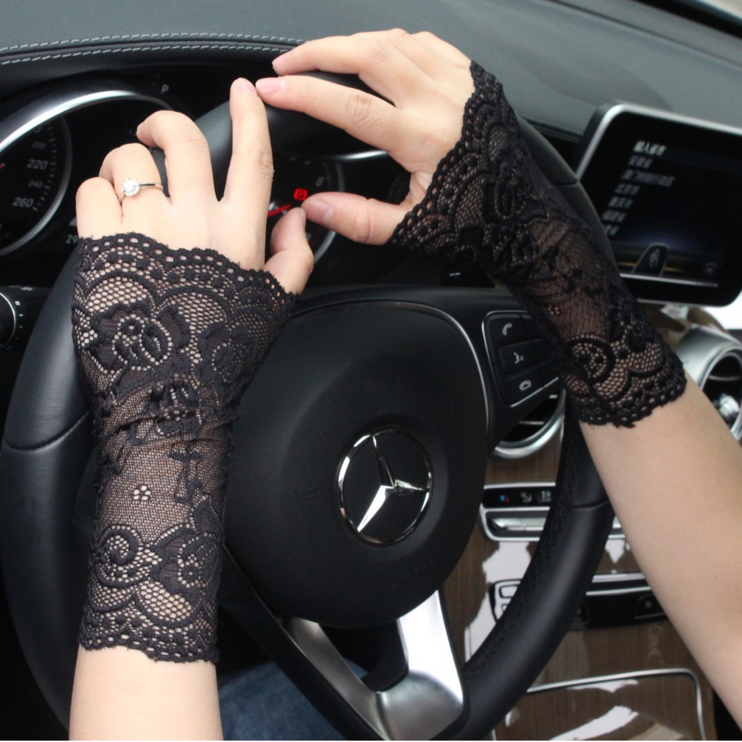 厂家批发夏季弹力蕾丝短手套防晒开车防滑女士薄手套批发