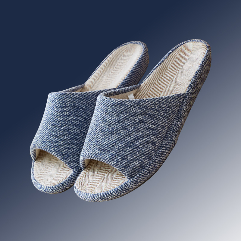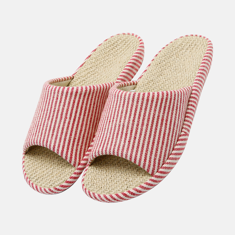 严选2025日式竖条纹春夏厚底亚麻居家四季情侣家居盆底拖鞋