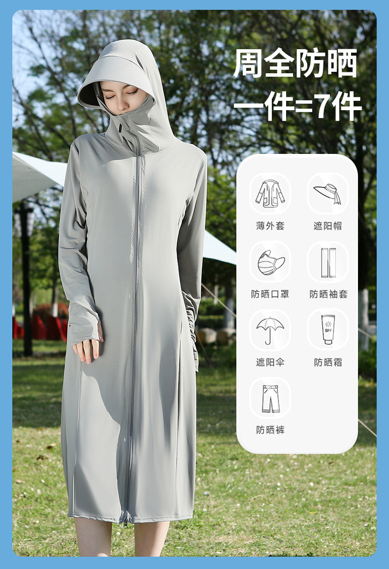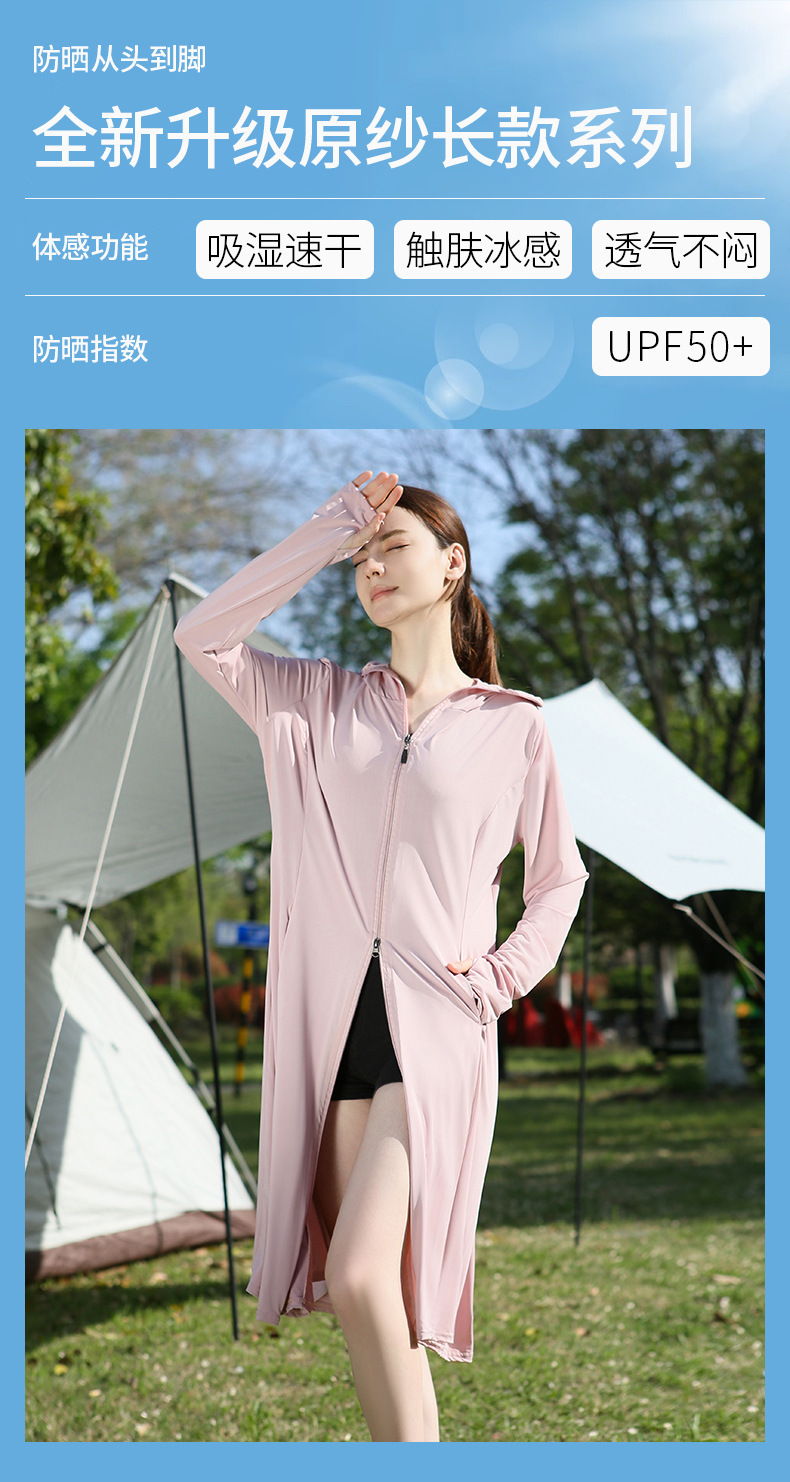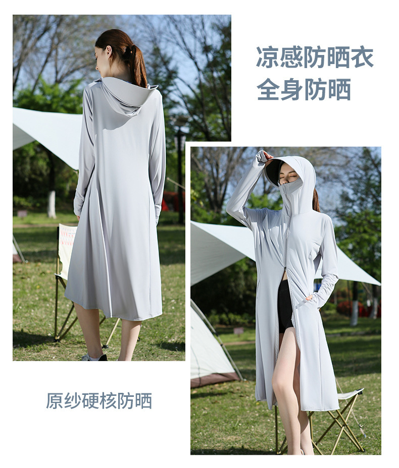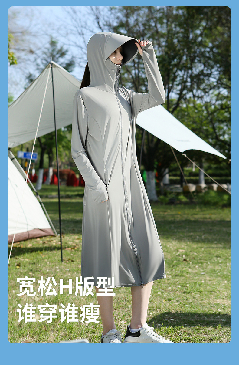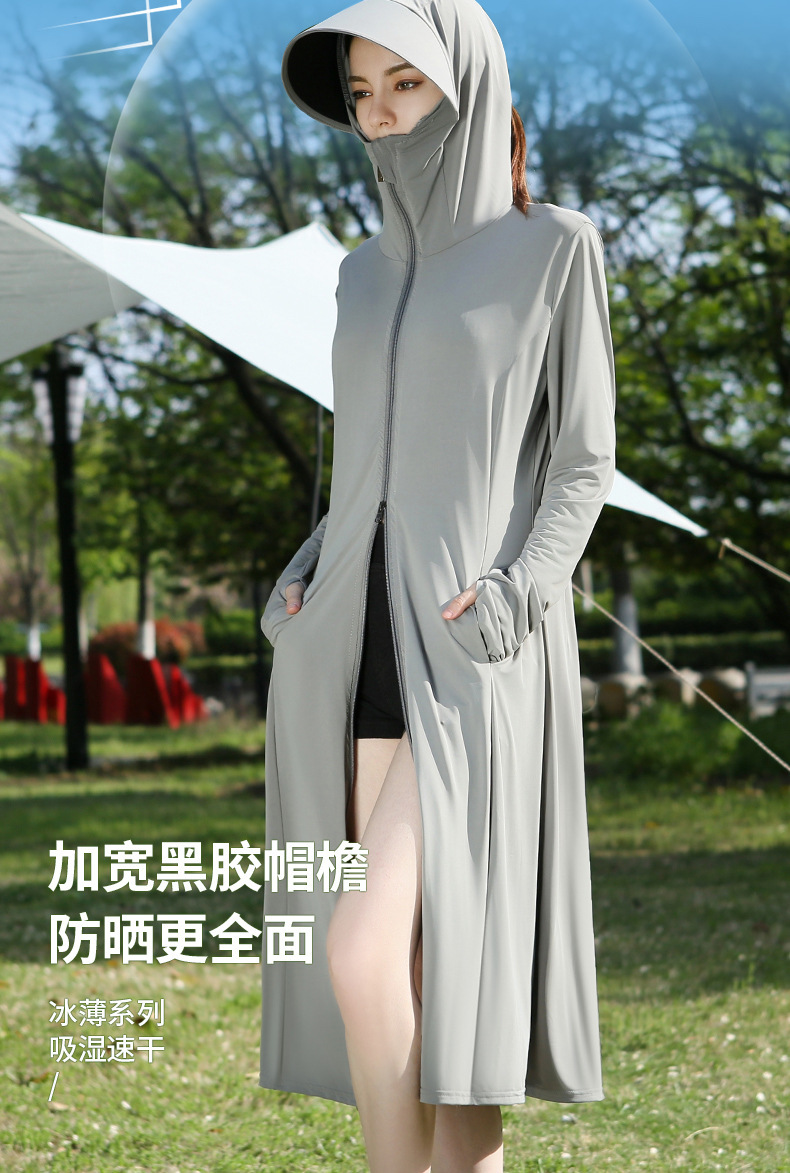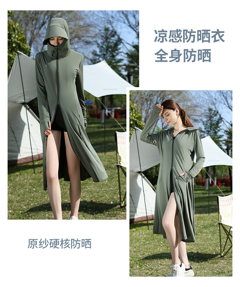 长款防晒衣户外女新款防紫外线冰钛原纱骑车防晒服冰丝透气外套夏