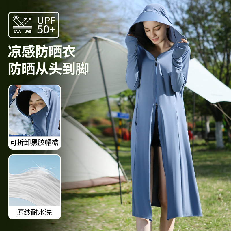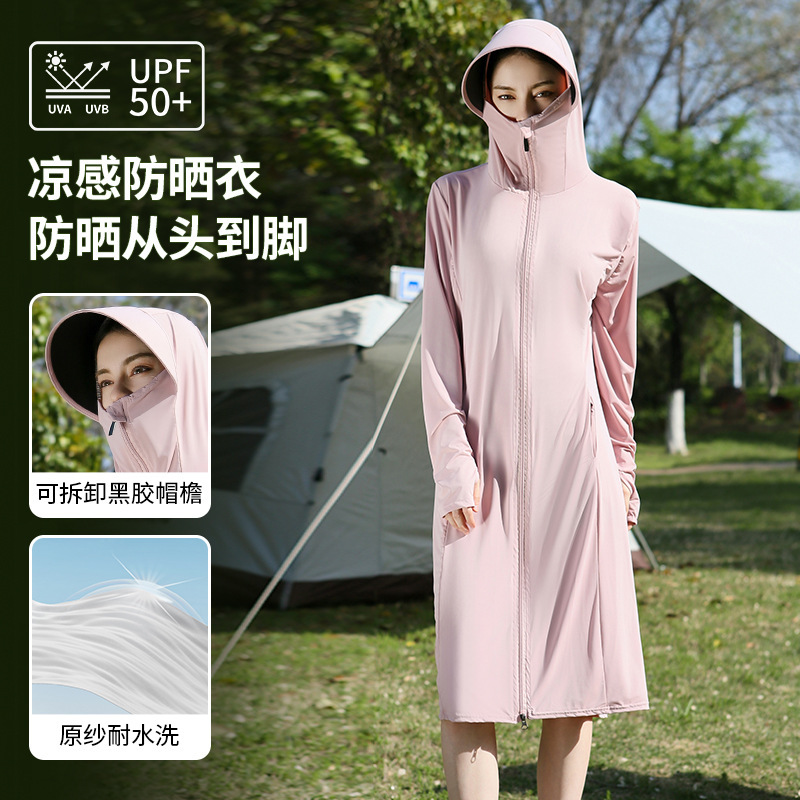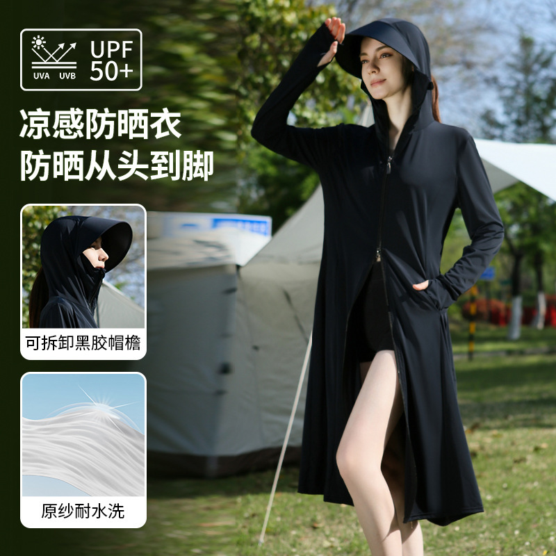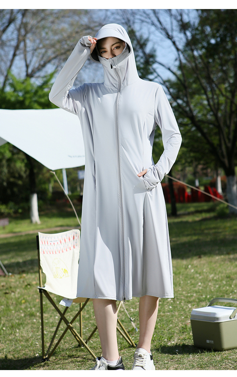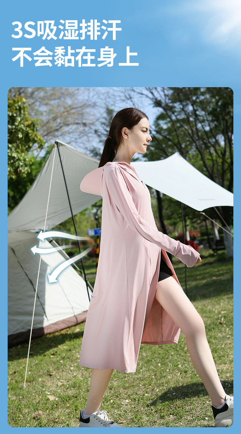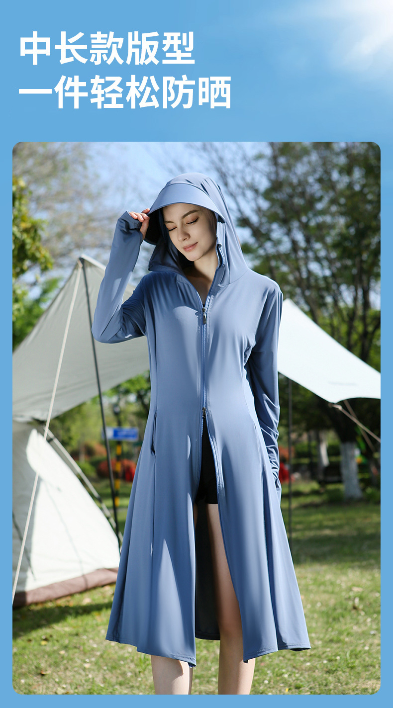 长款防晒衣户外女新款防紫外线冰钛原纱骑车防晒服冰丝透气外套夏