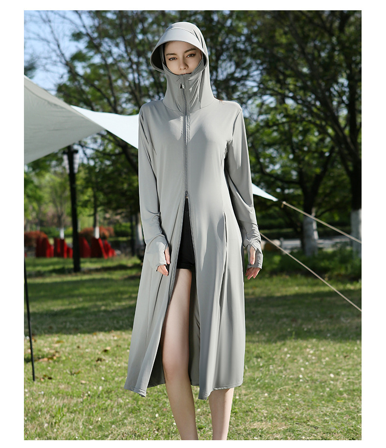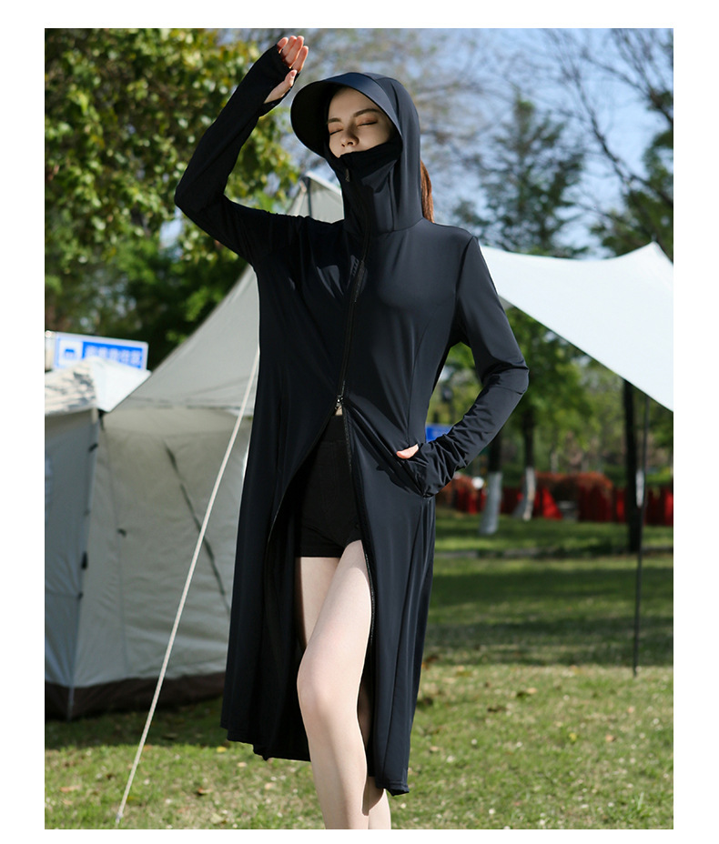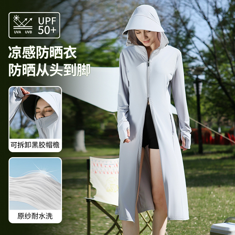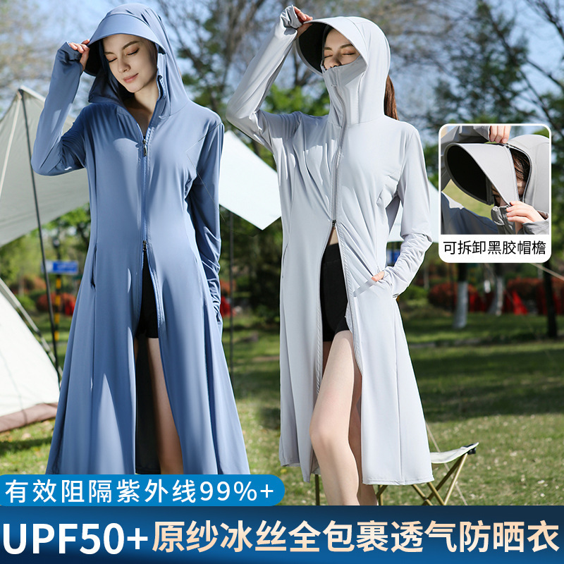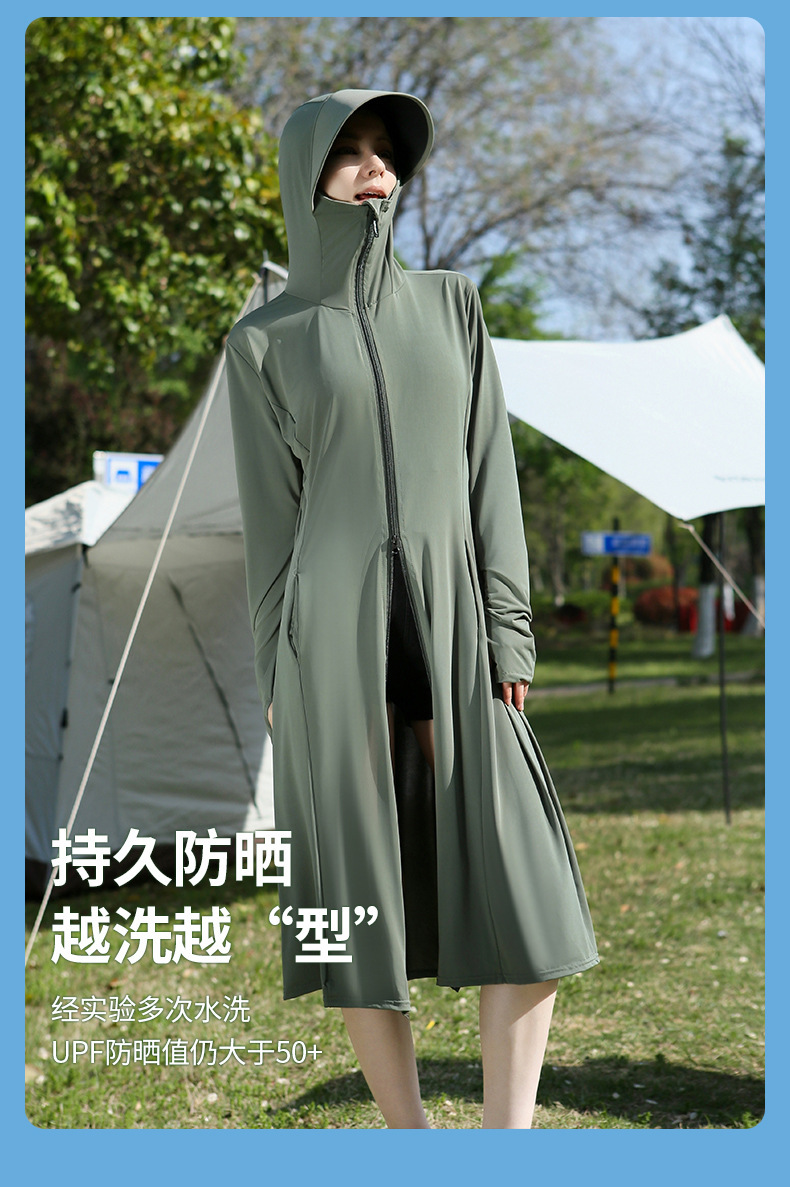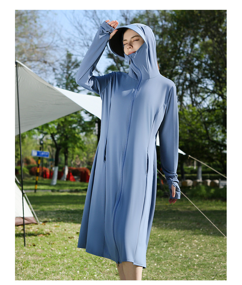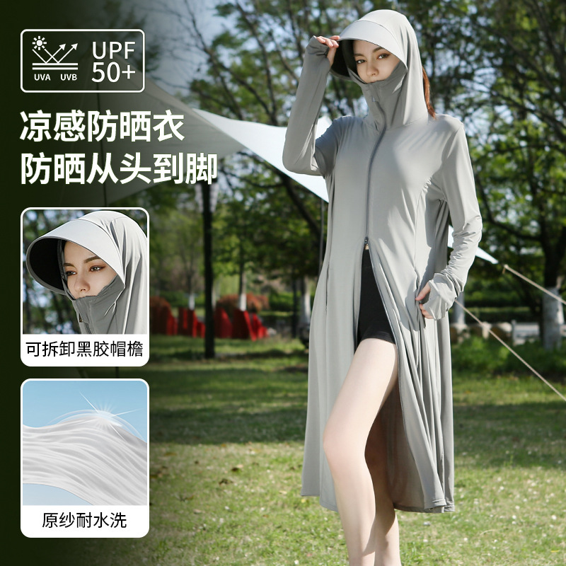 长款防晒衣户外女新款防紫外线冰钛原纱骑车防晒服冰丝透气外套夏