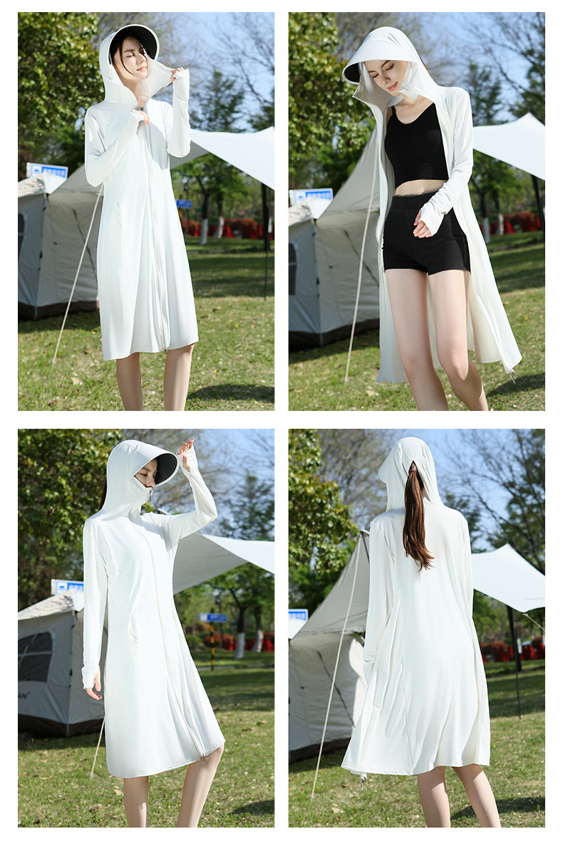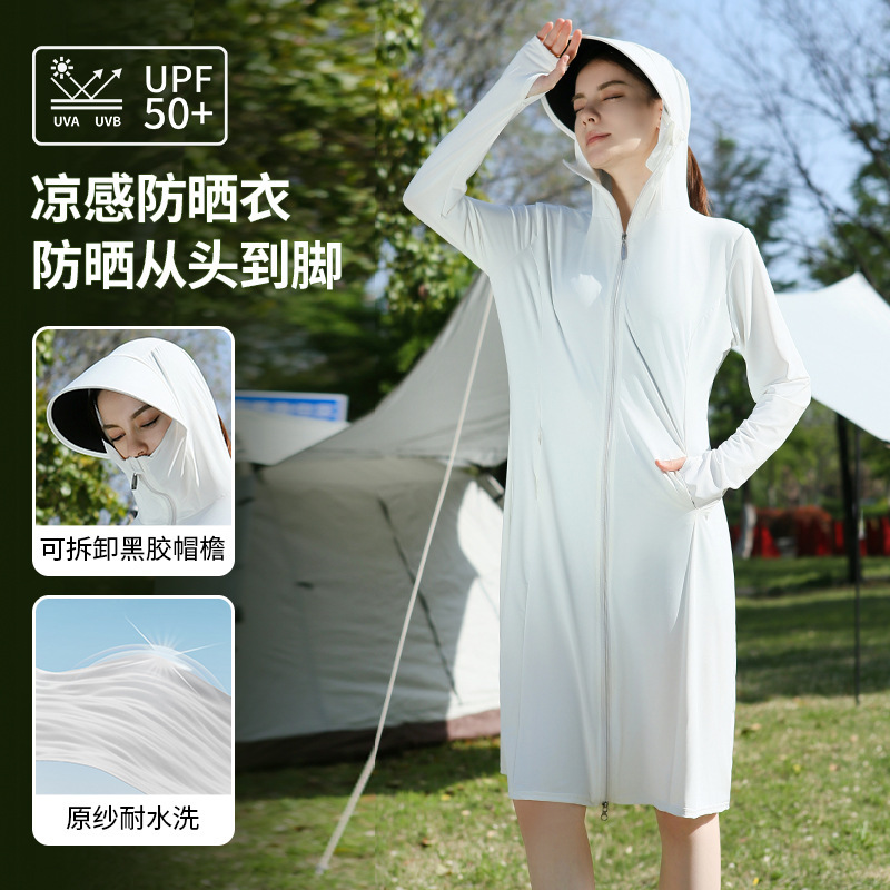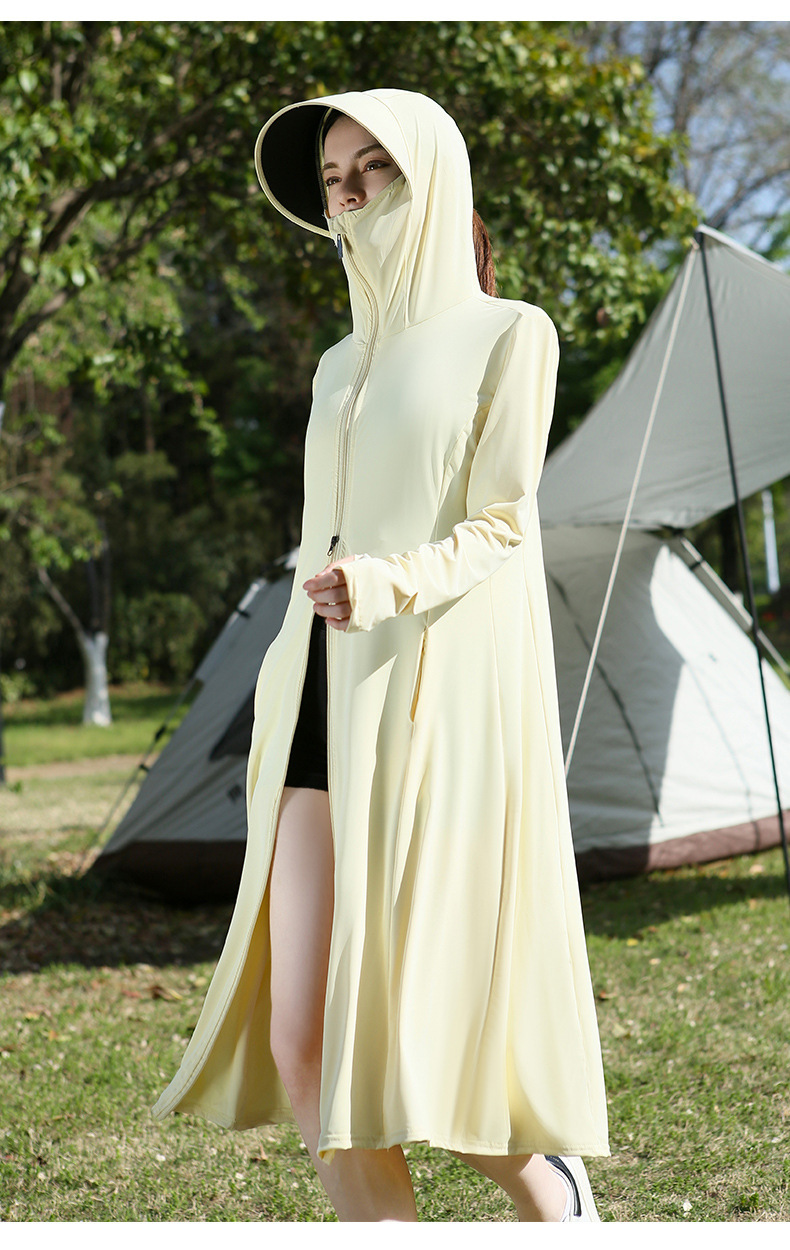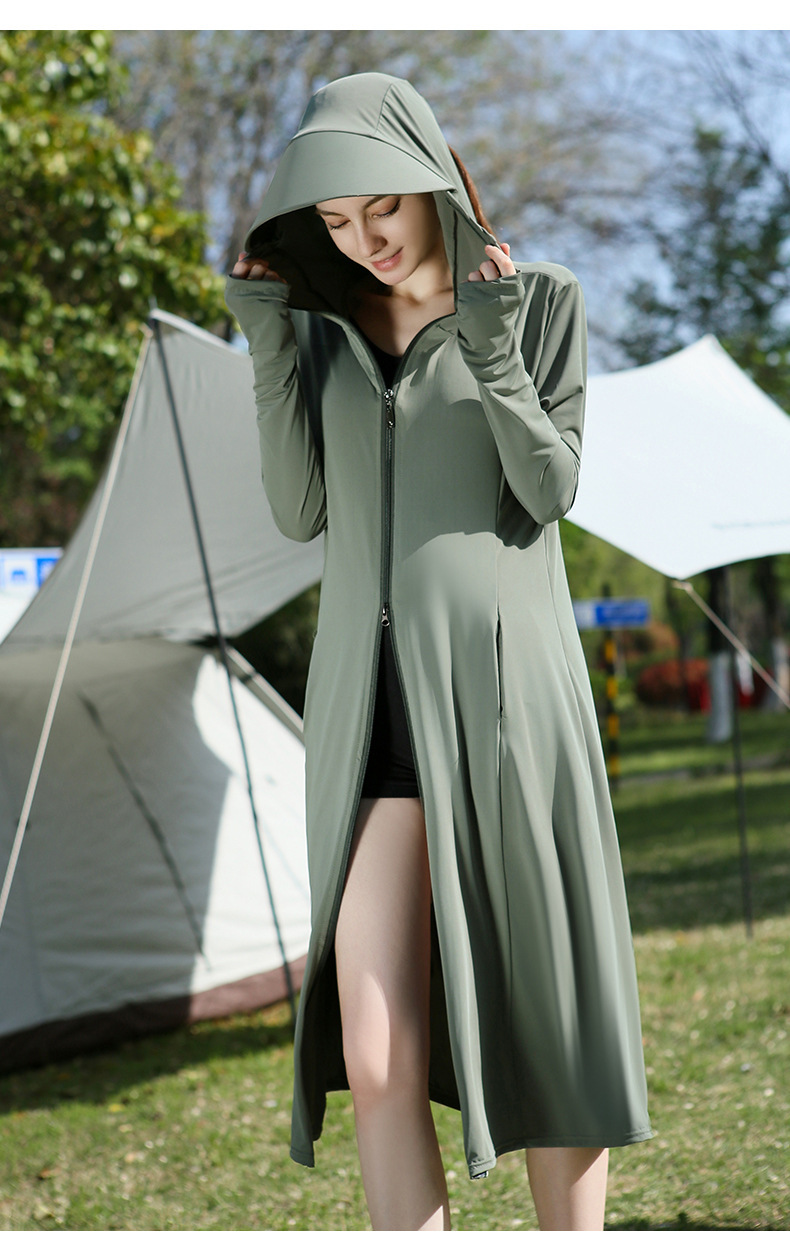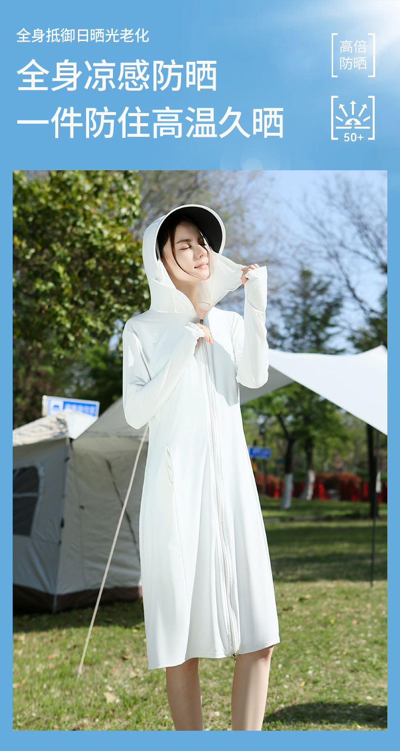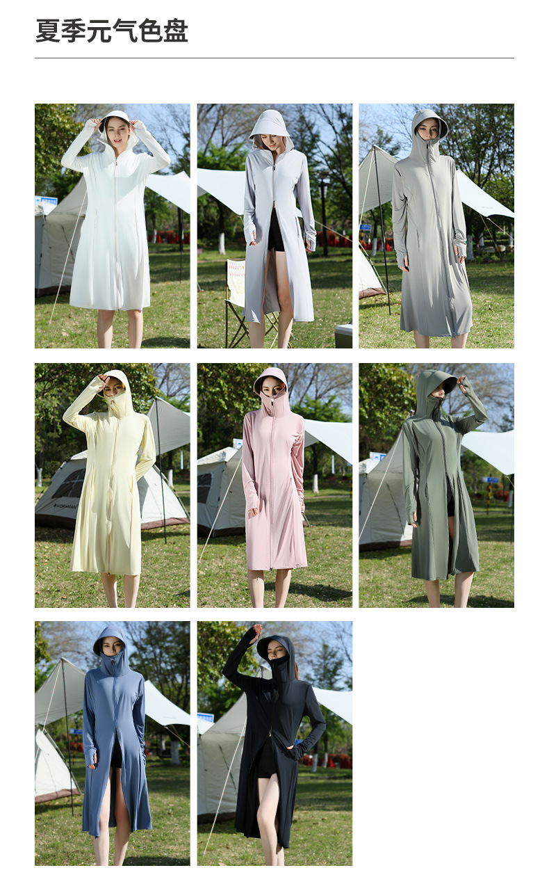 长款防晒衣户外女新款防紫外线冰钛原纱骑车防晒服冰丝透气外套夏