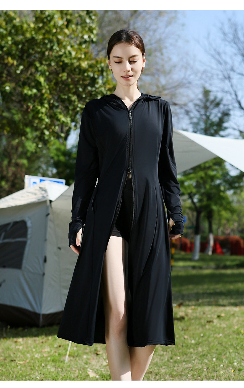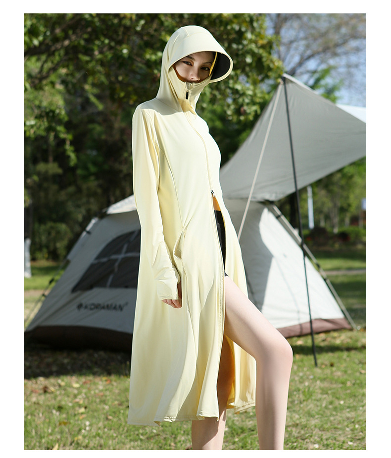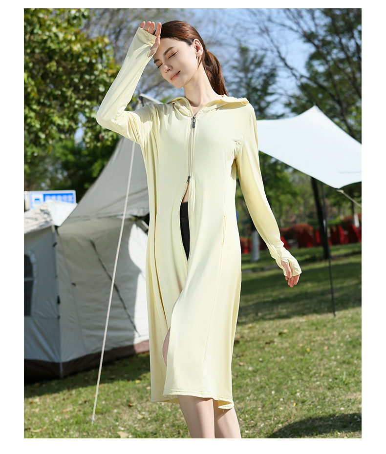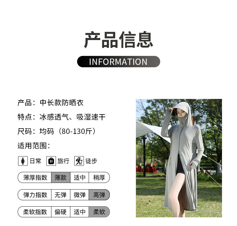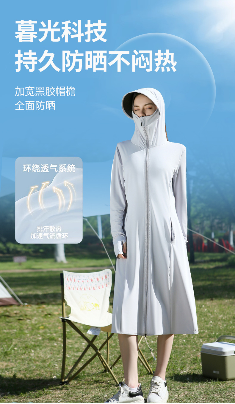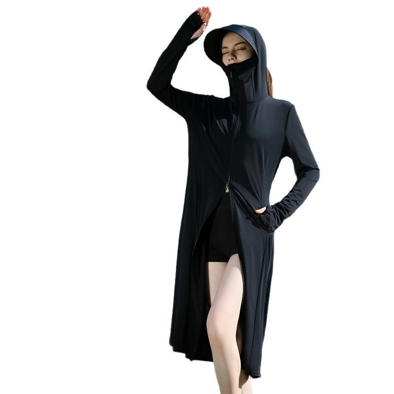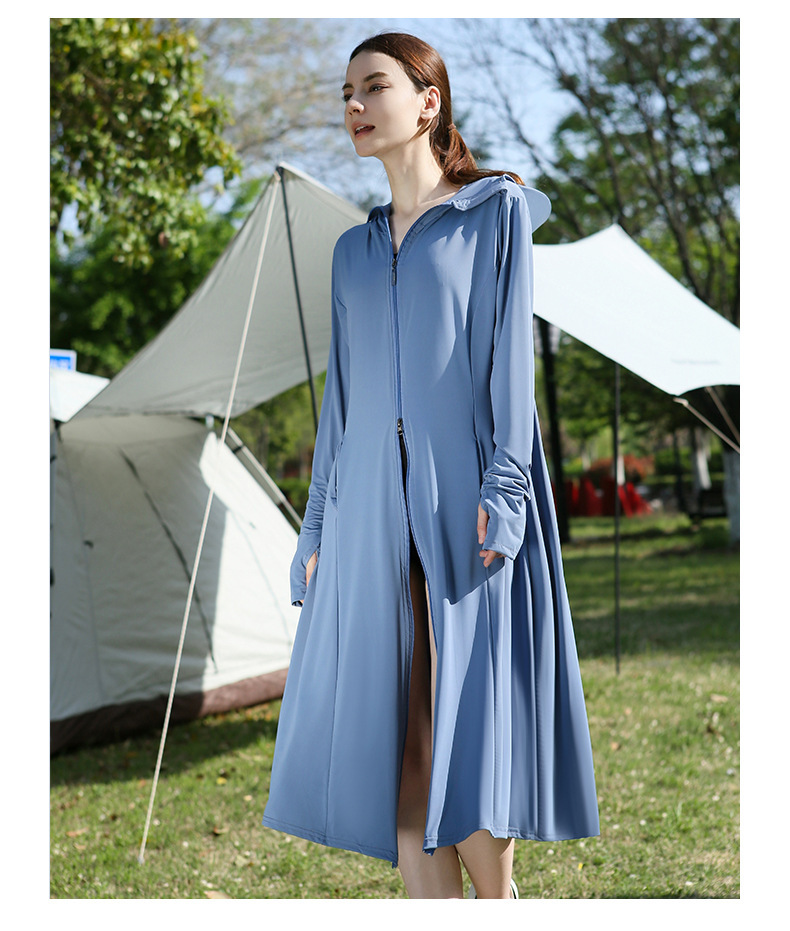 长款防晒衣户外女新款防紫外线冰钛原纱骑车防晒服冰丝透气外套夏