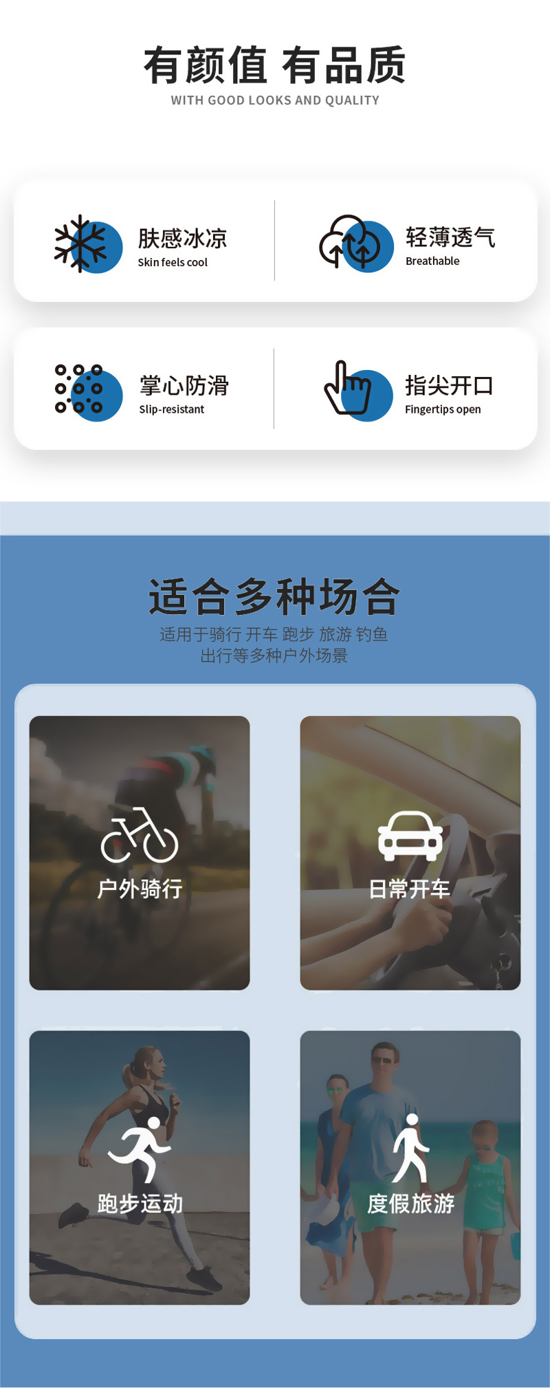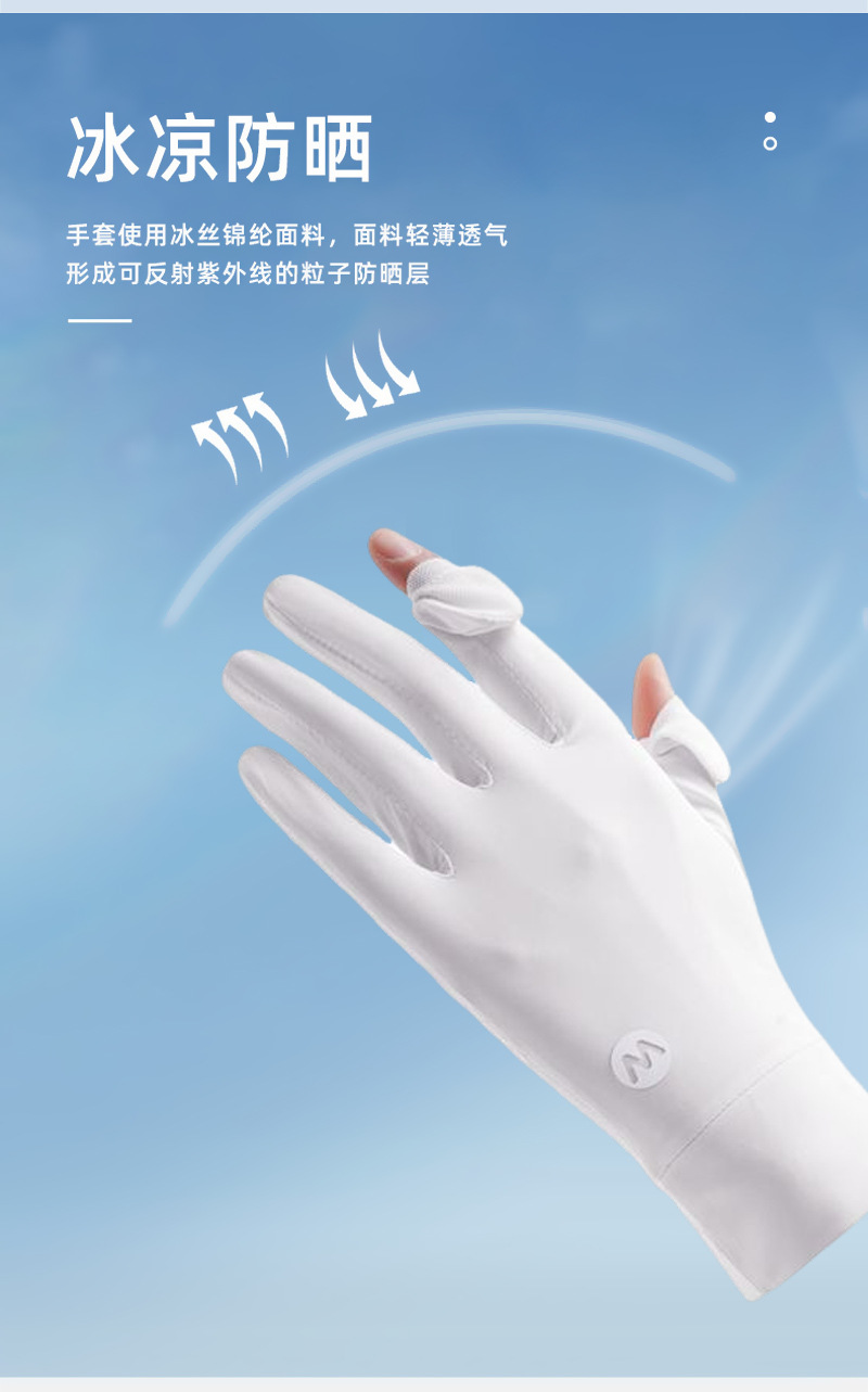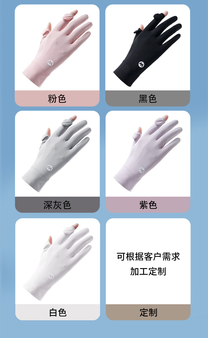 翻盖防滑触屏透气骑行女士夏季开车户外防紫外线全指冰丝防晒手套