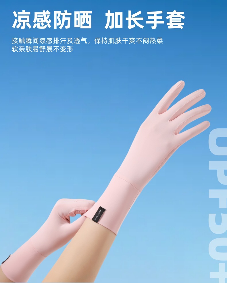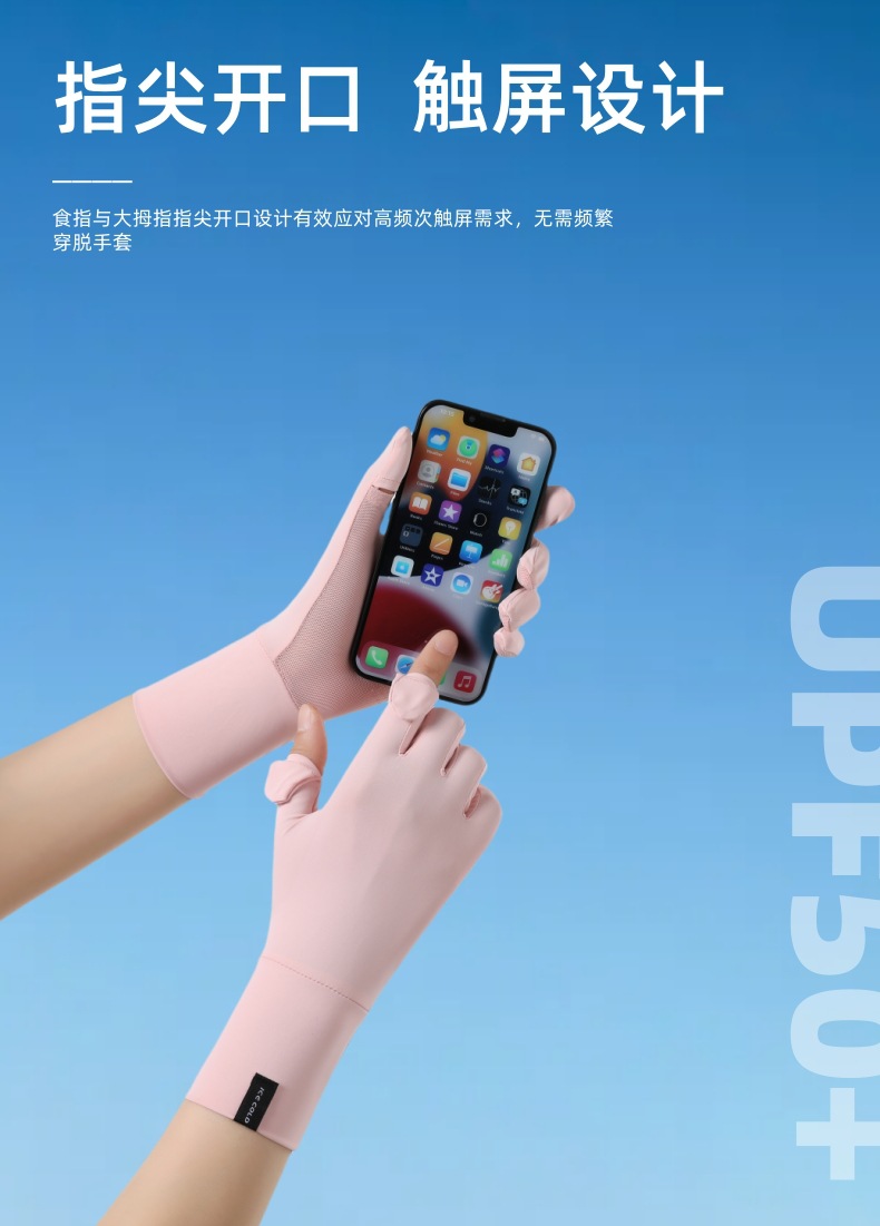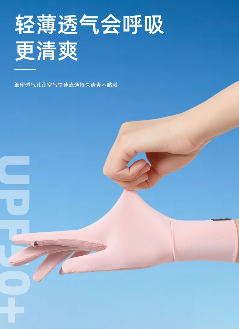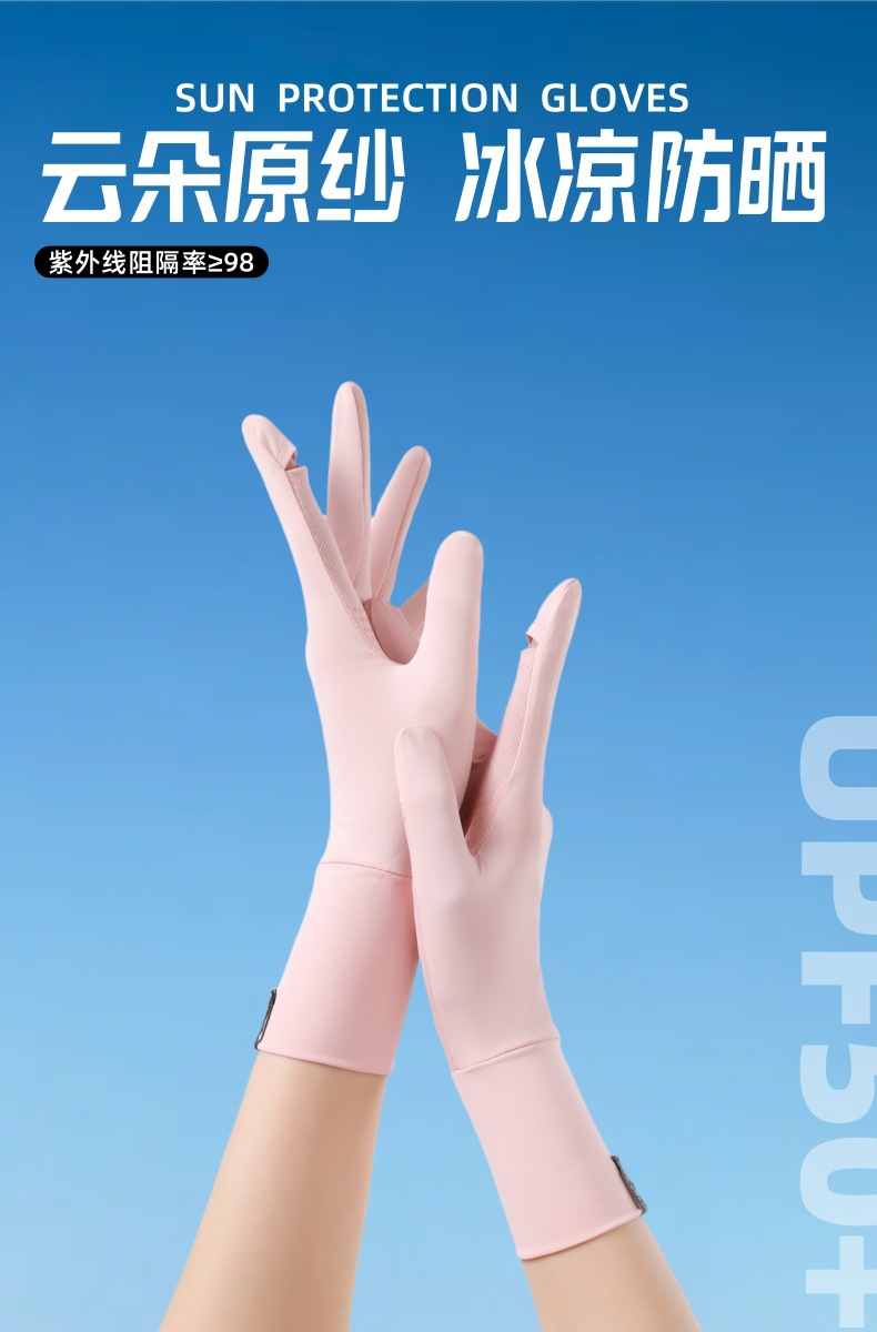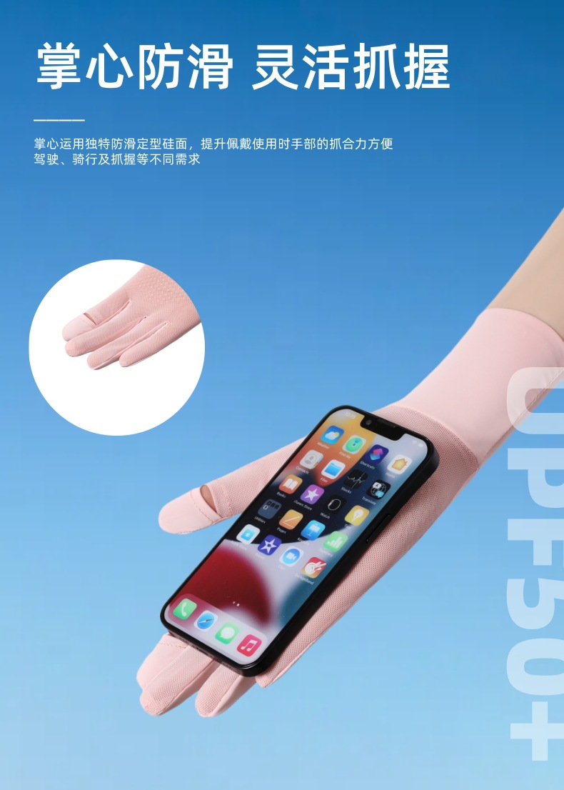 防晒手套女夏季薄款遮阳防紫外线防滑加长户外骑行冰丝露指屏手套