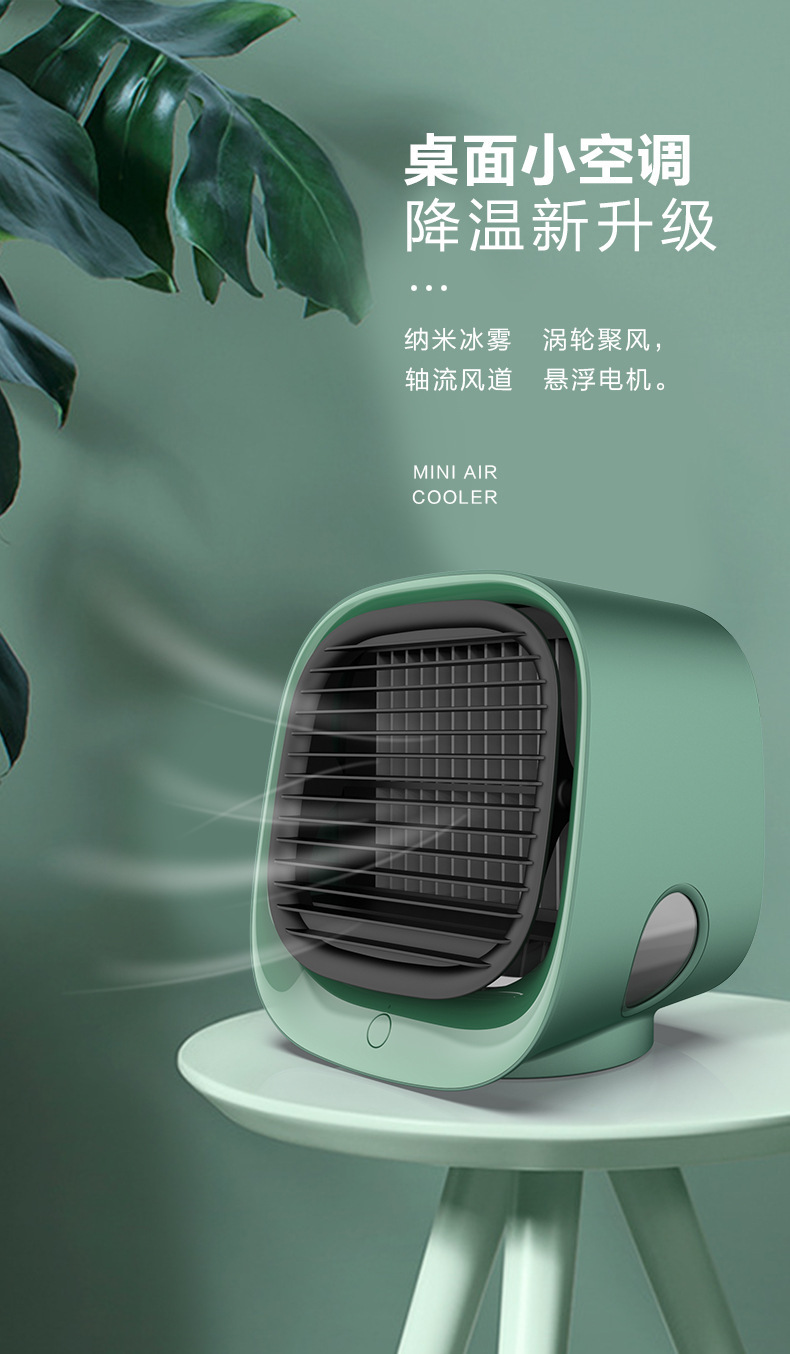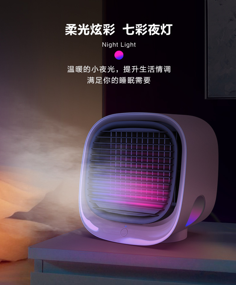 跨境新款迷你冷风机加湿usb风扇便携式桌面办公家用空调扇
