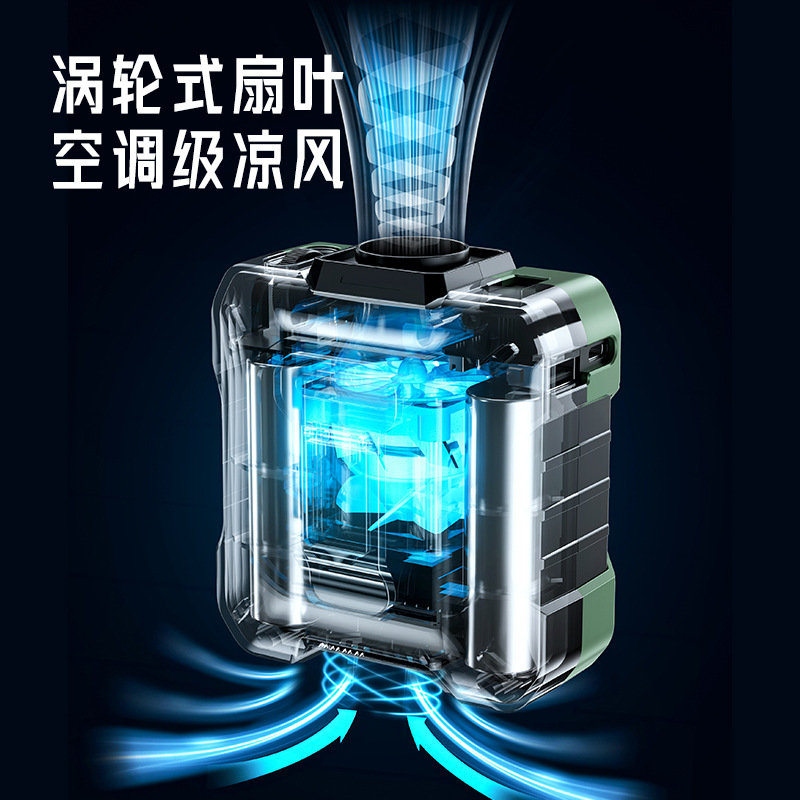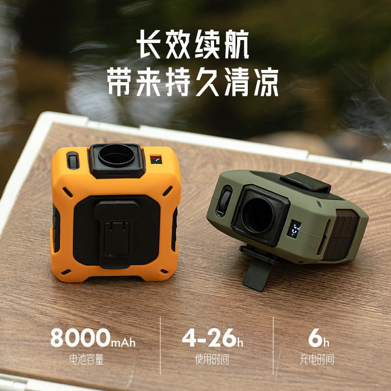 跨境户外高速挂腰风扇 挂脖USB大容量滚轮百档调速暴力涡轮风扇