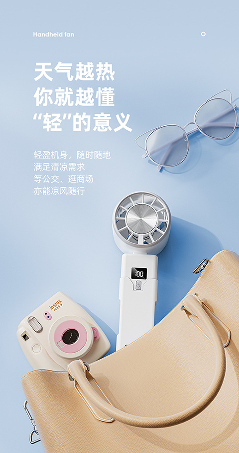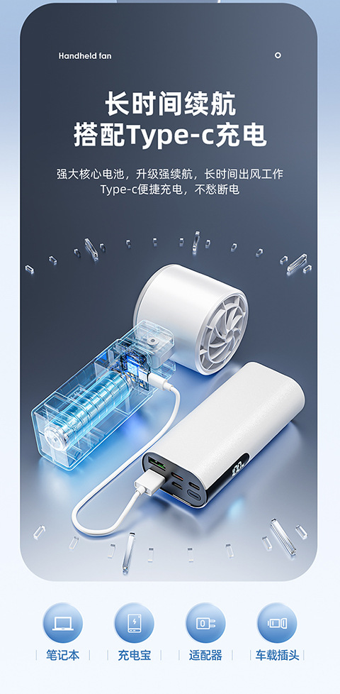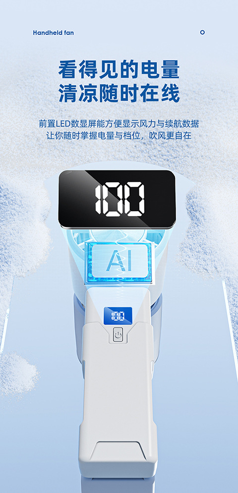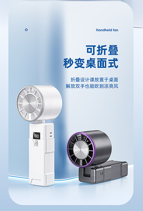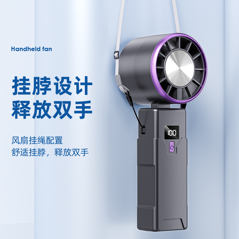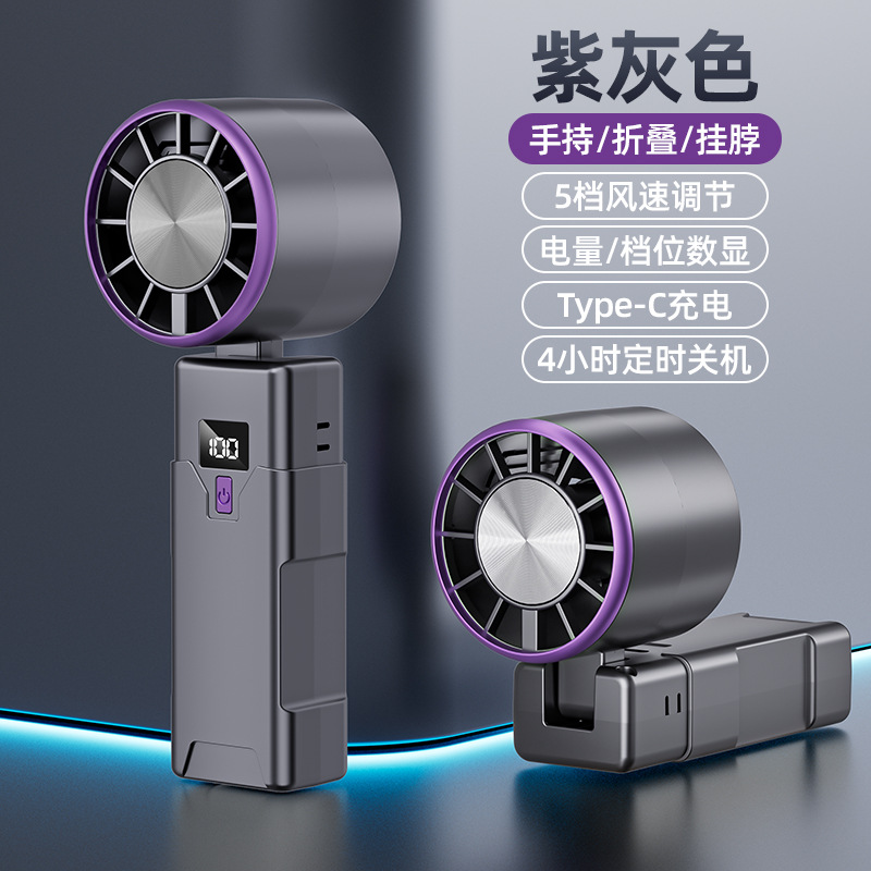 折叠高速手持风扇户外桌面便携USB充电电风扇礼品批发数显长续航