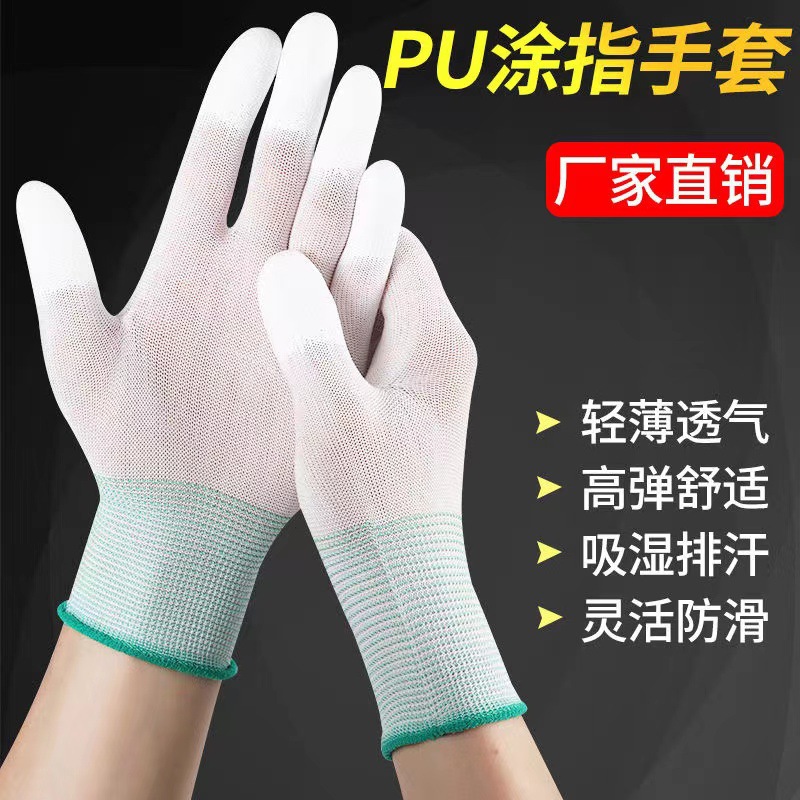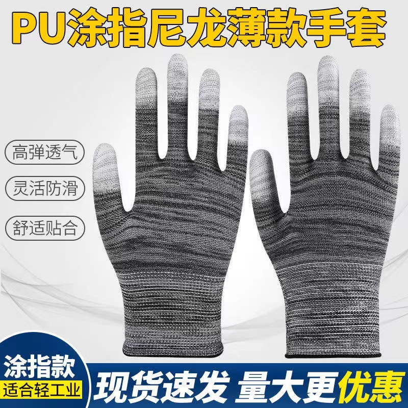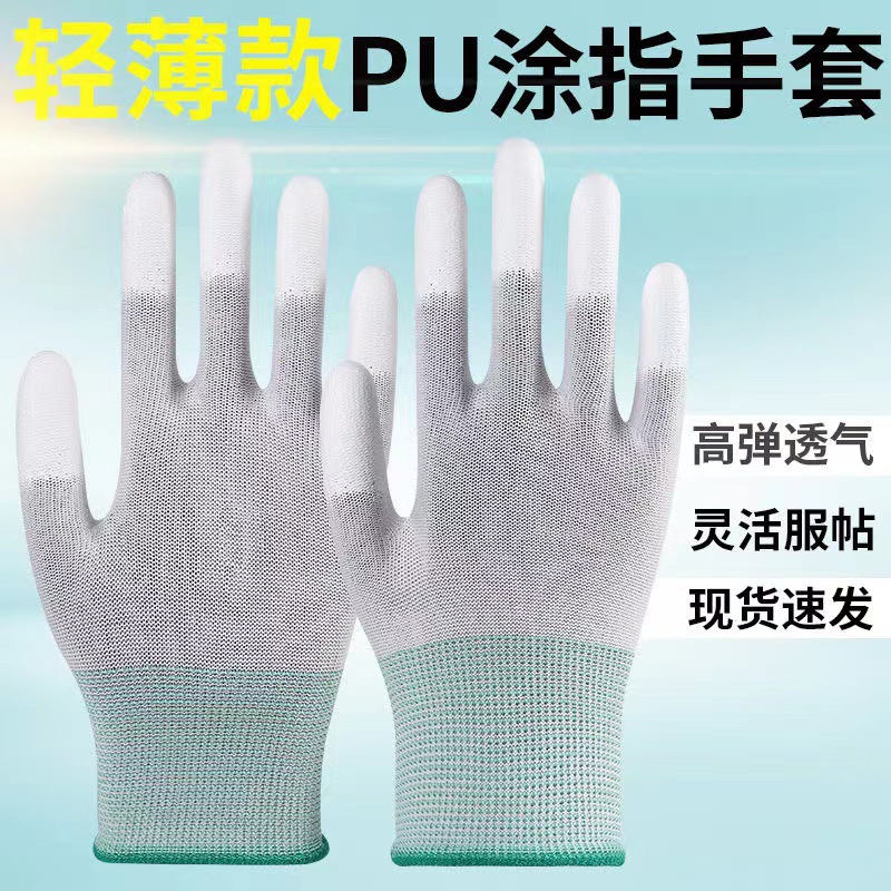 超薄款尼龙PU涂指手套无尘电子工厂车间防滑透气防晒劳保手套