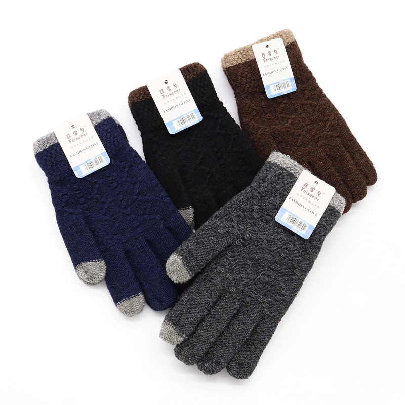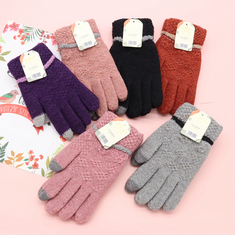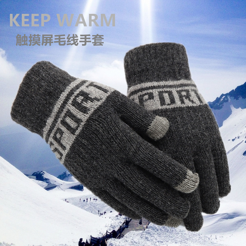 骑行保暖毛线触屏新款写字秋冬针织全指成人手套韩式男女加厚手套