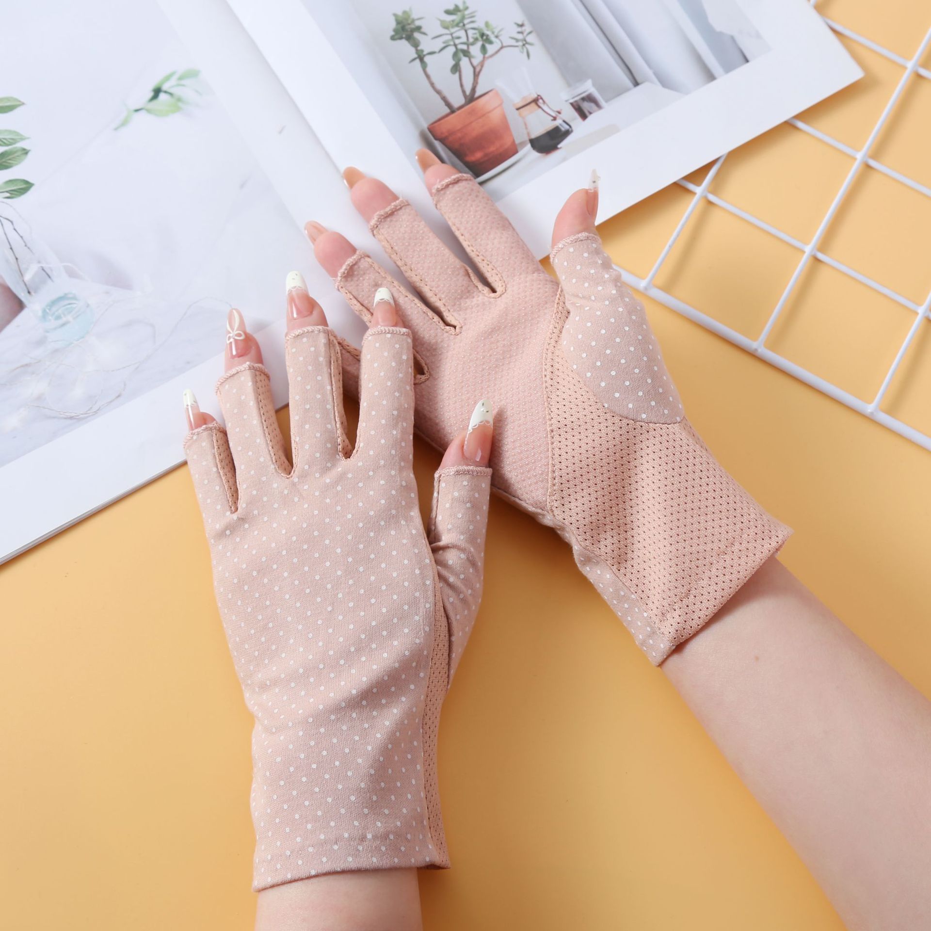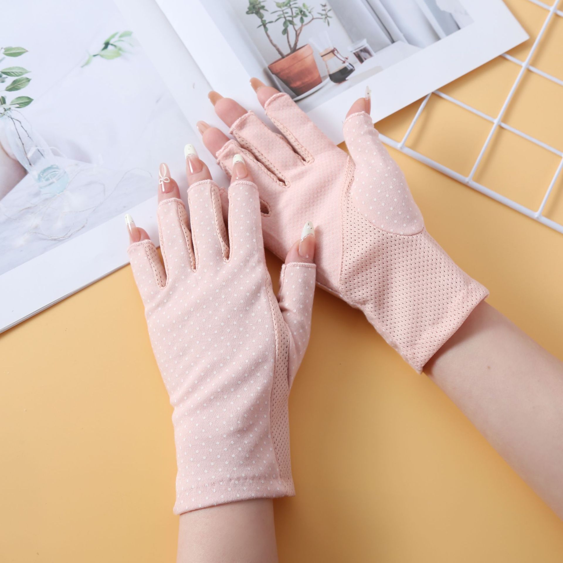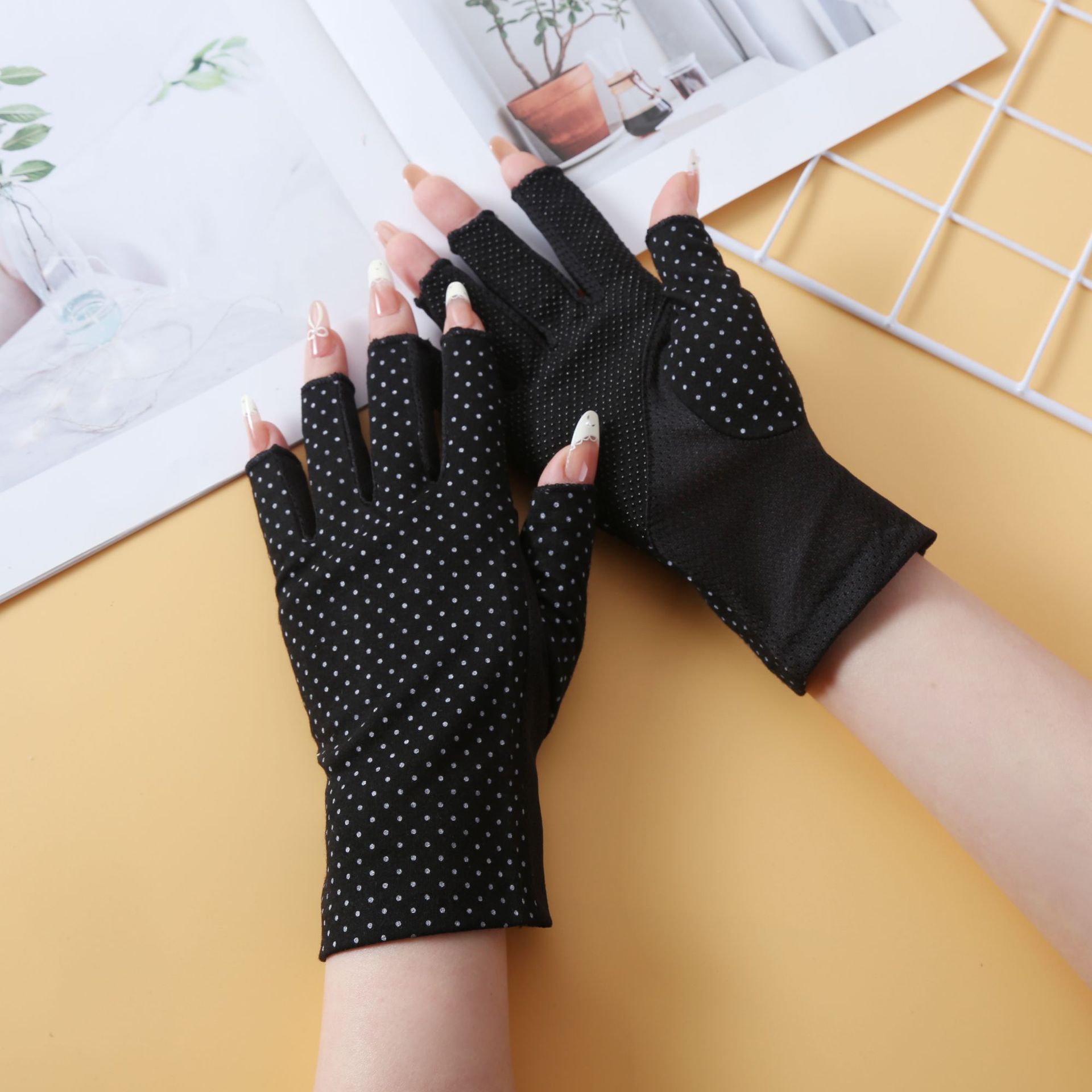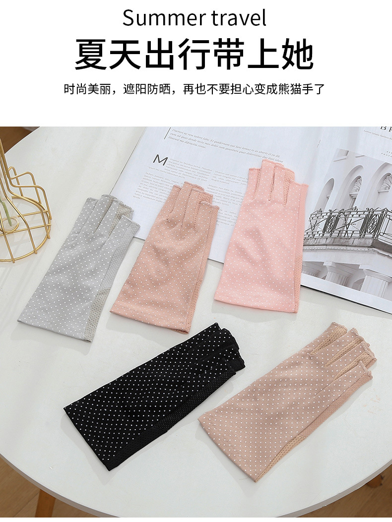 防晒手套夏季薄款男女开车防紫外线波点防滑半指纯棉手套跨境外贸