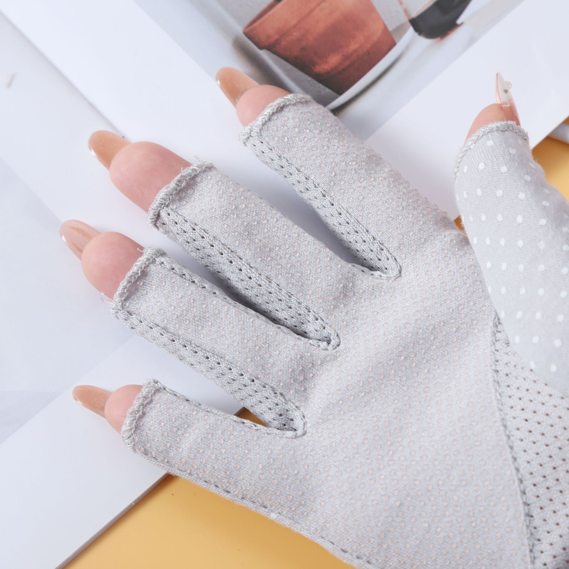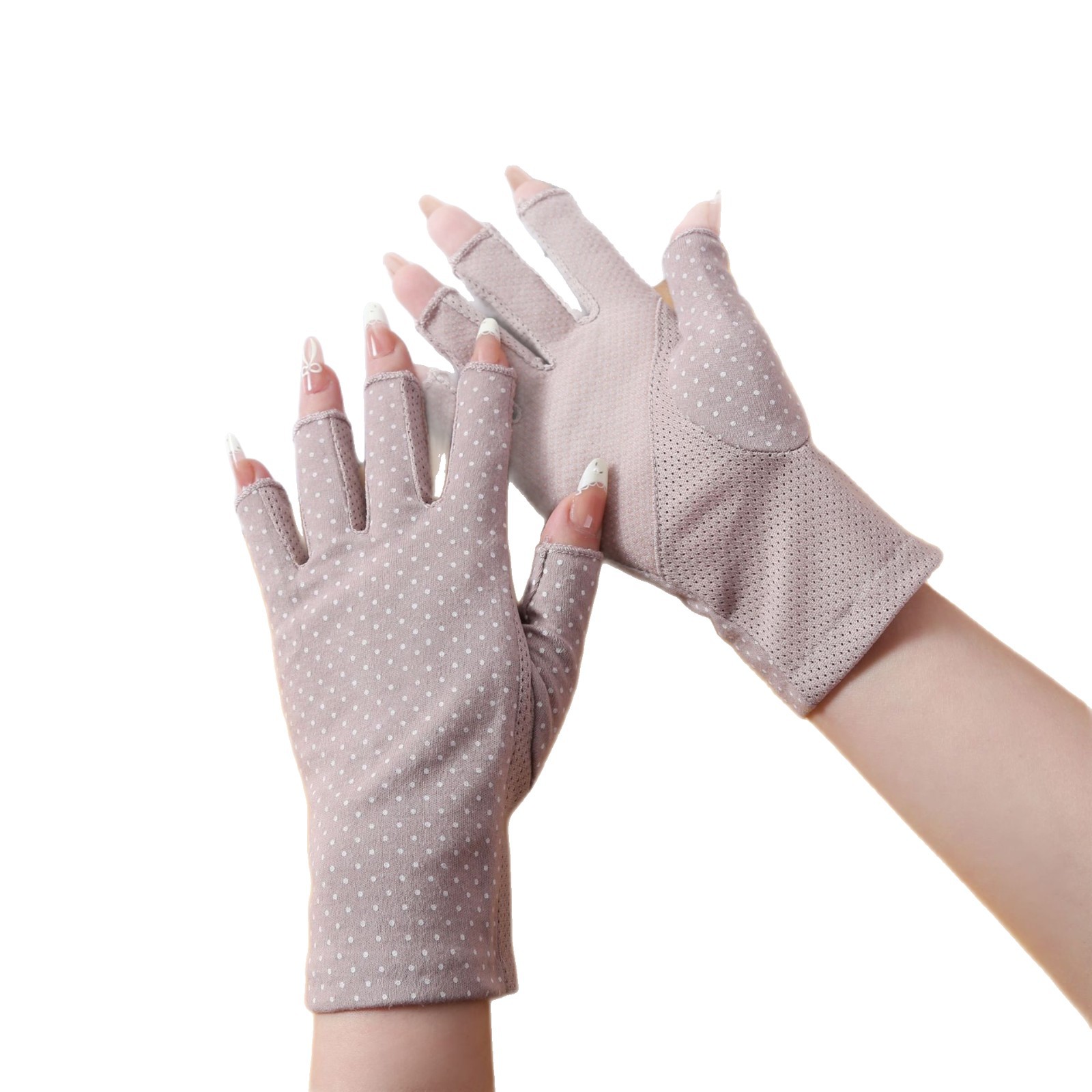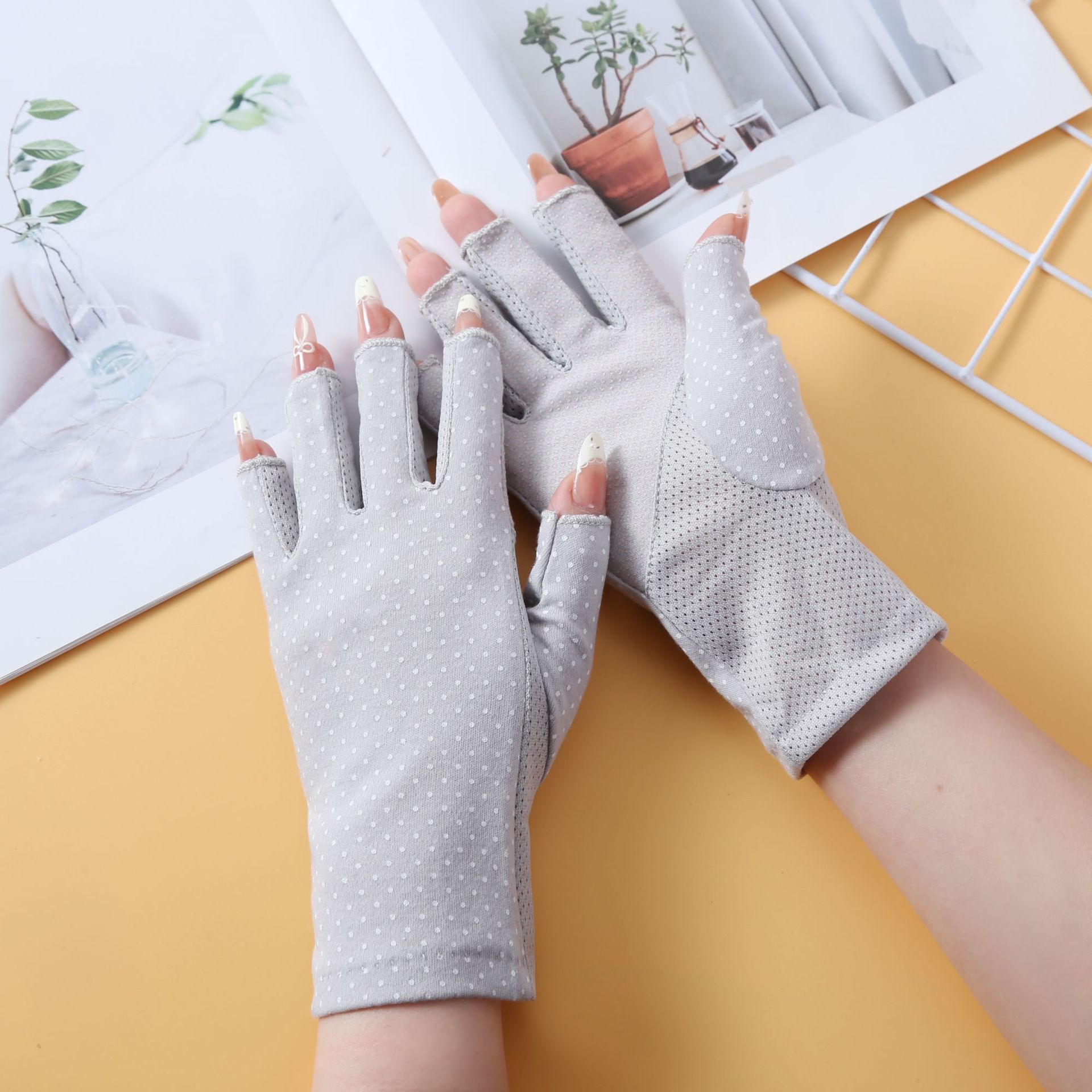 防晒手套夏季薄款男女开车防紫外线波点防滑半指纯棉手套跨境外贸