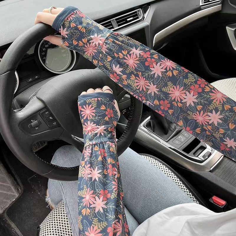 防晒冰丝袖套女夏季薄款宽松手臂套户外开车防紫外线轻薄透气手袖