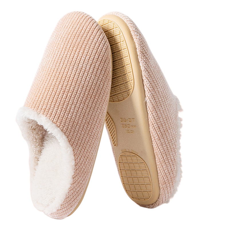 新款秋冬加绒保暖毛绒防水底静音居家室内地板男女无声情侣棉拖鞋