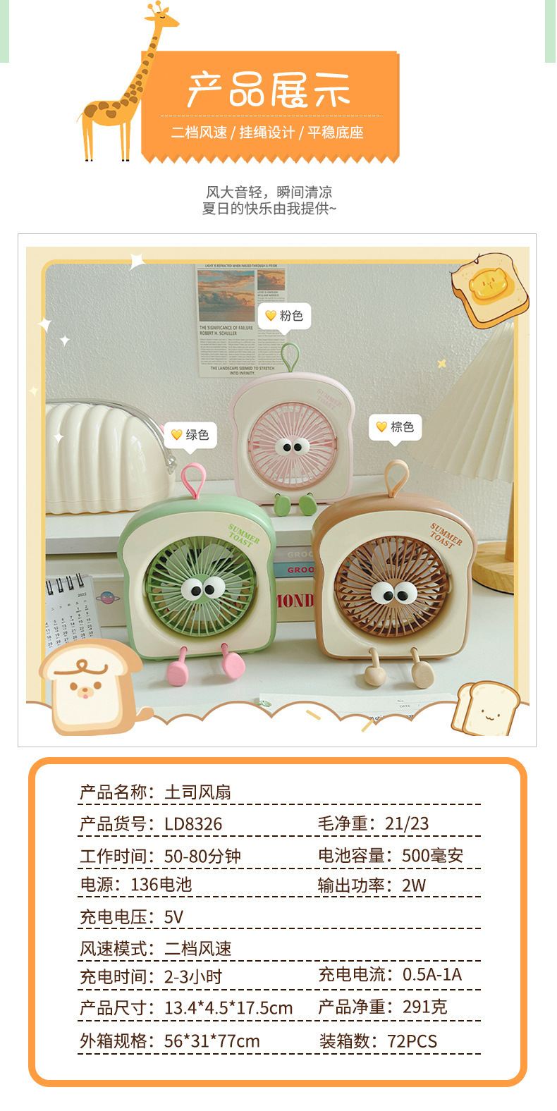 新款便携吐司小型桌上学生儿童桌面USB电风扇办公室桌面静音风扇