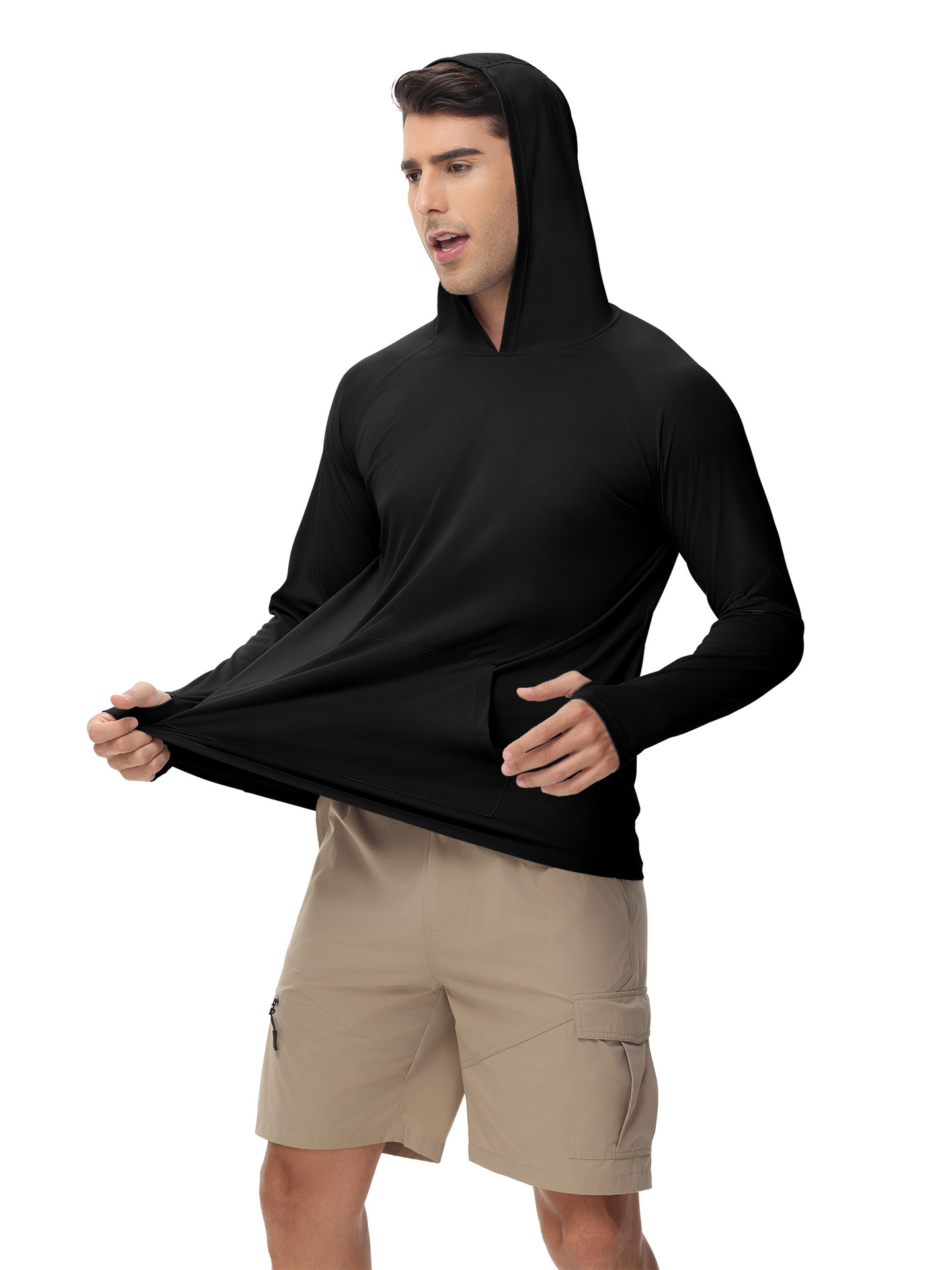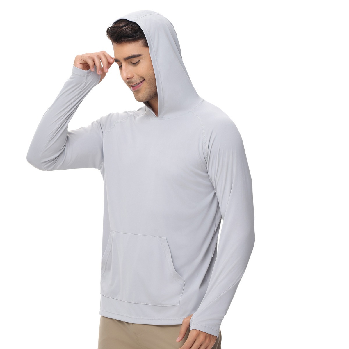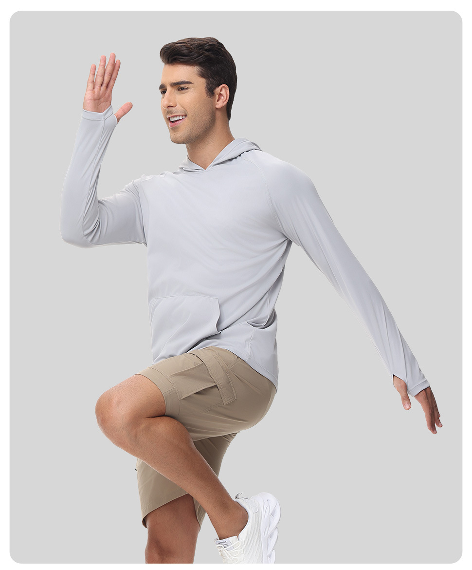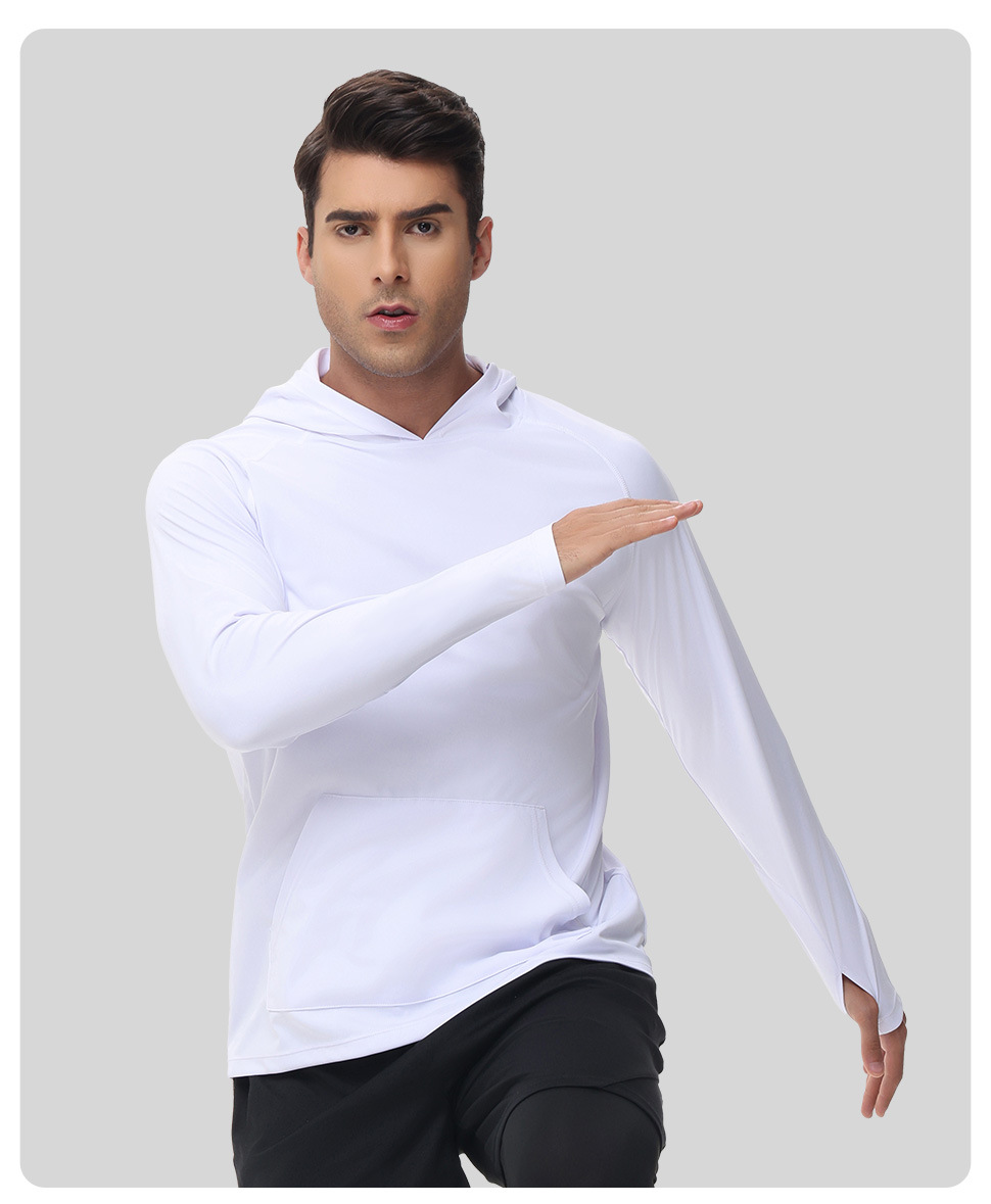 男士新款一体连帽防晒衣防紫外线跑步长袖T恤带拇指洞男士卫衣