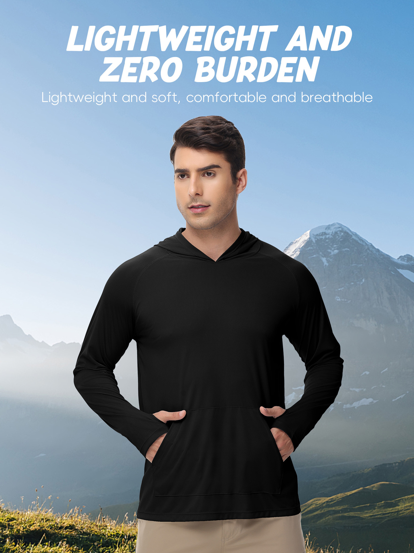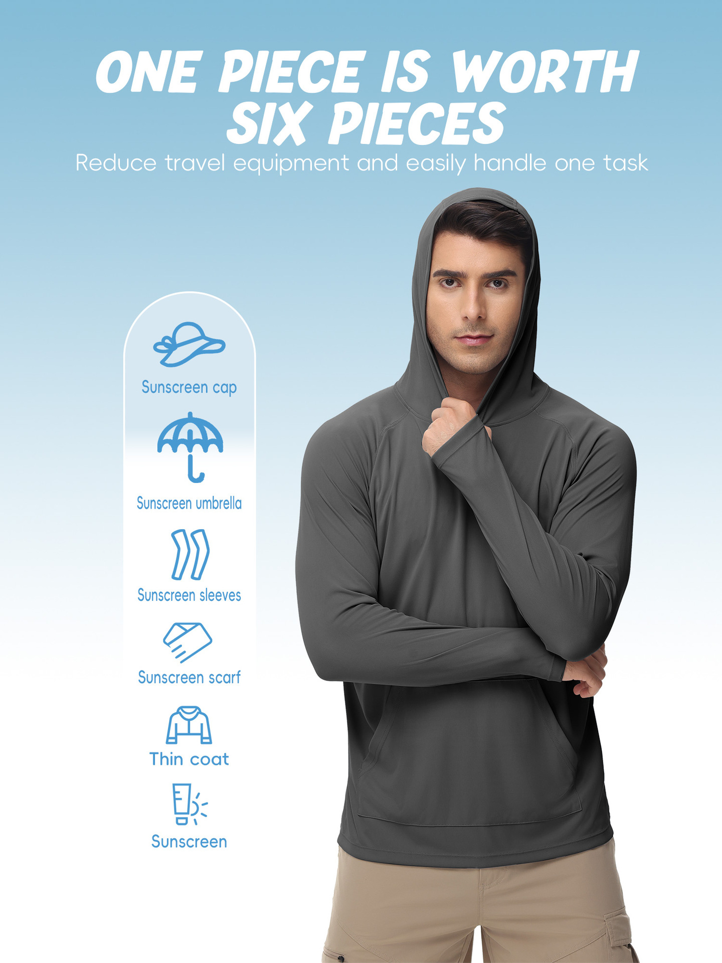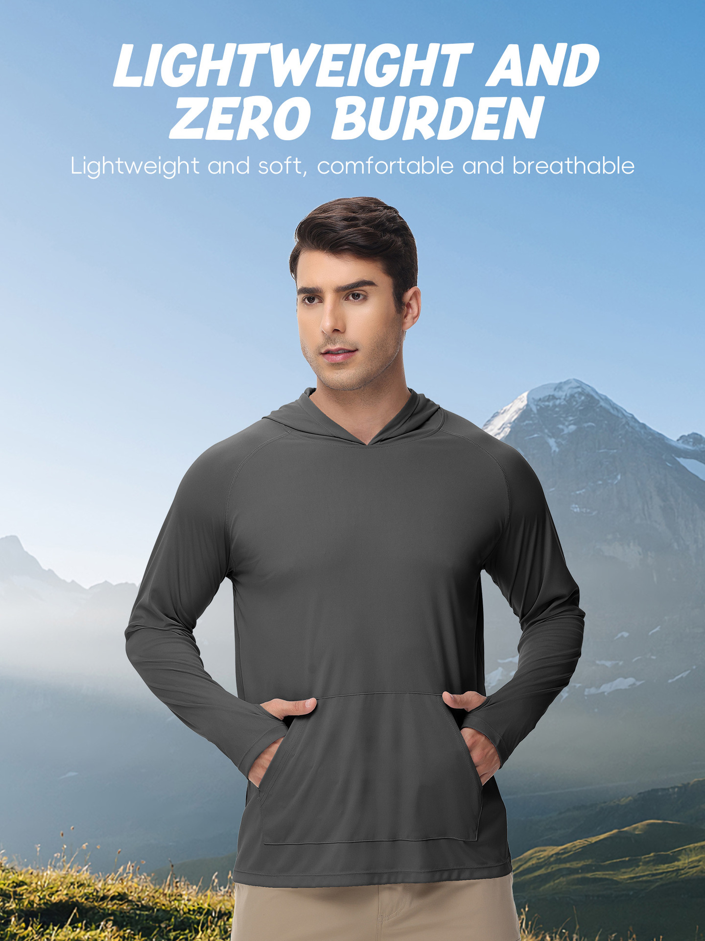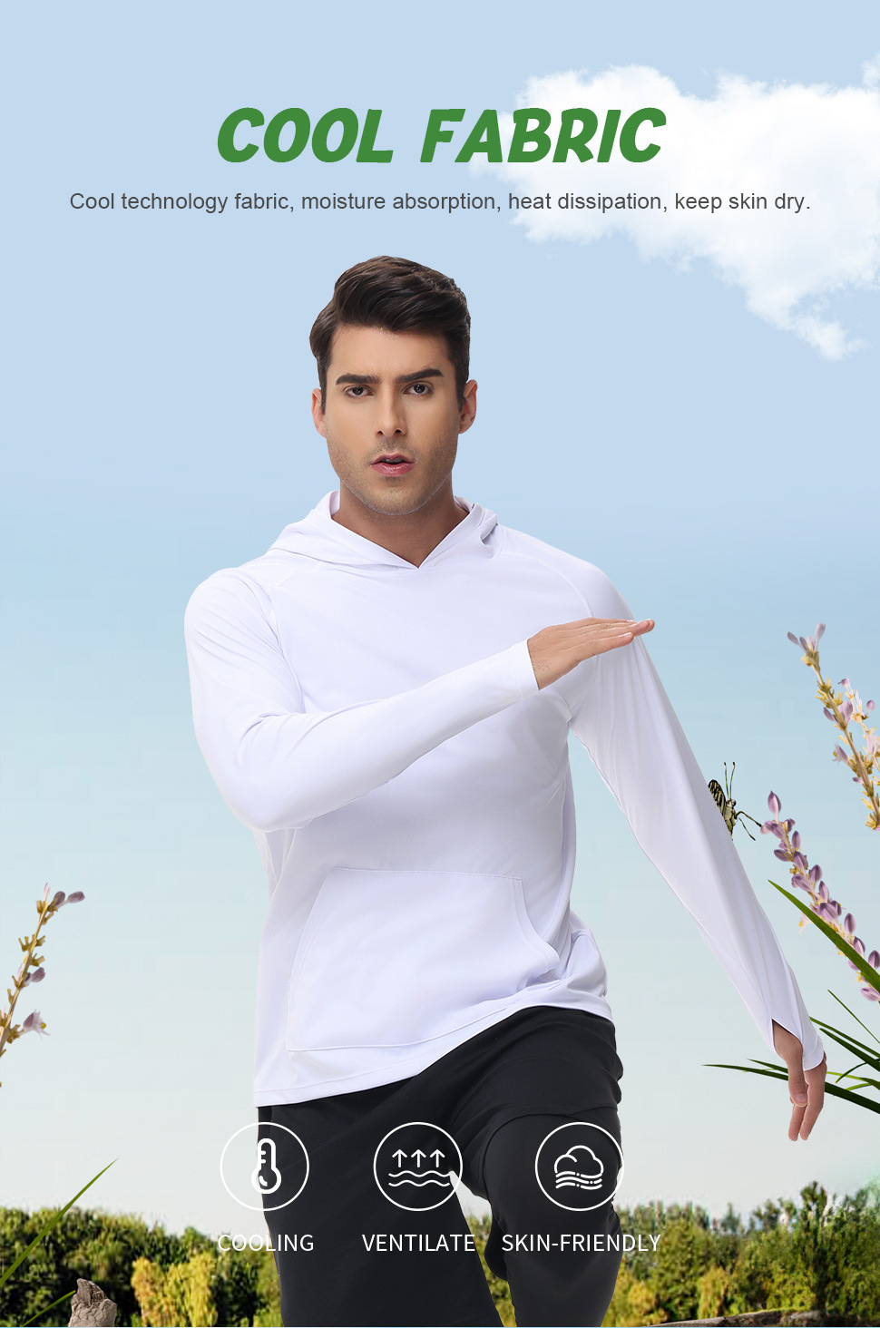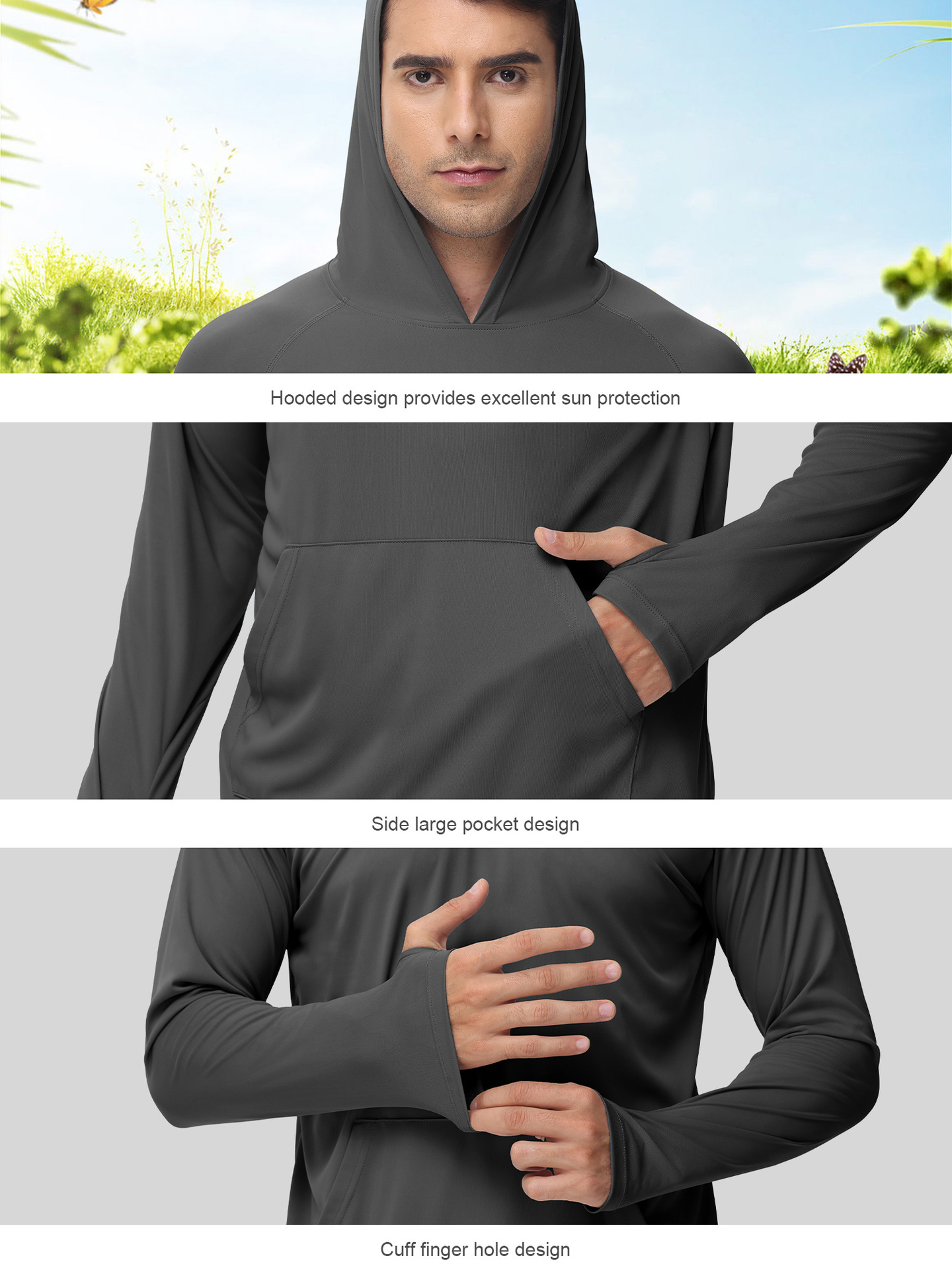 男士新款一体连帽防晒衣防紫外线跑步长袖T恤带拇指洞男士卫衣