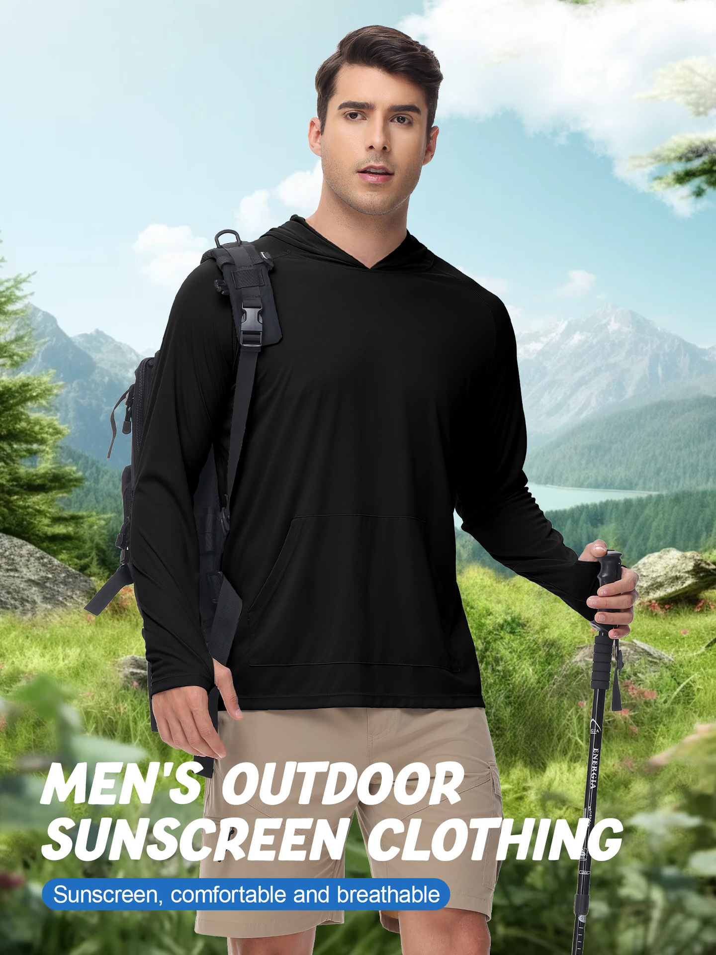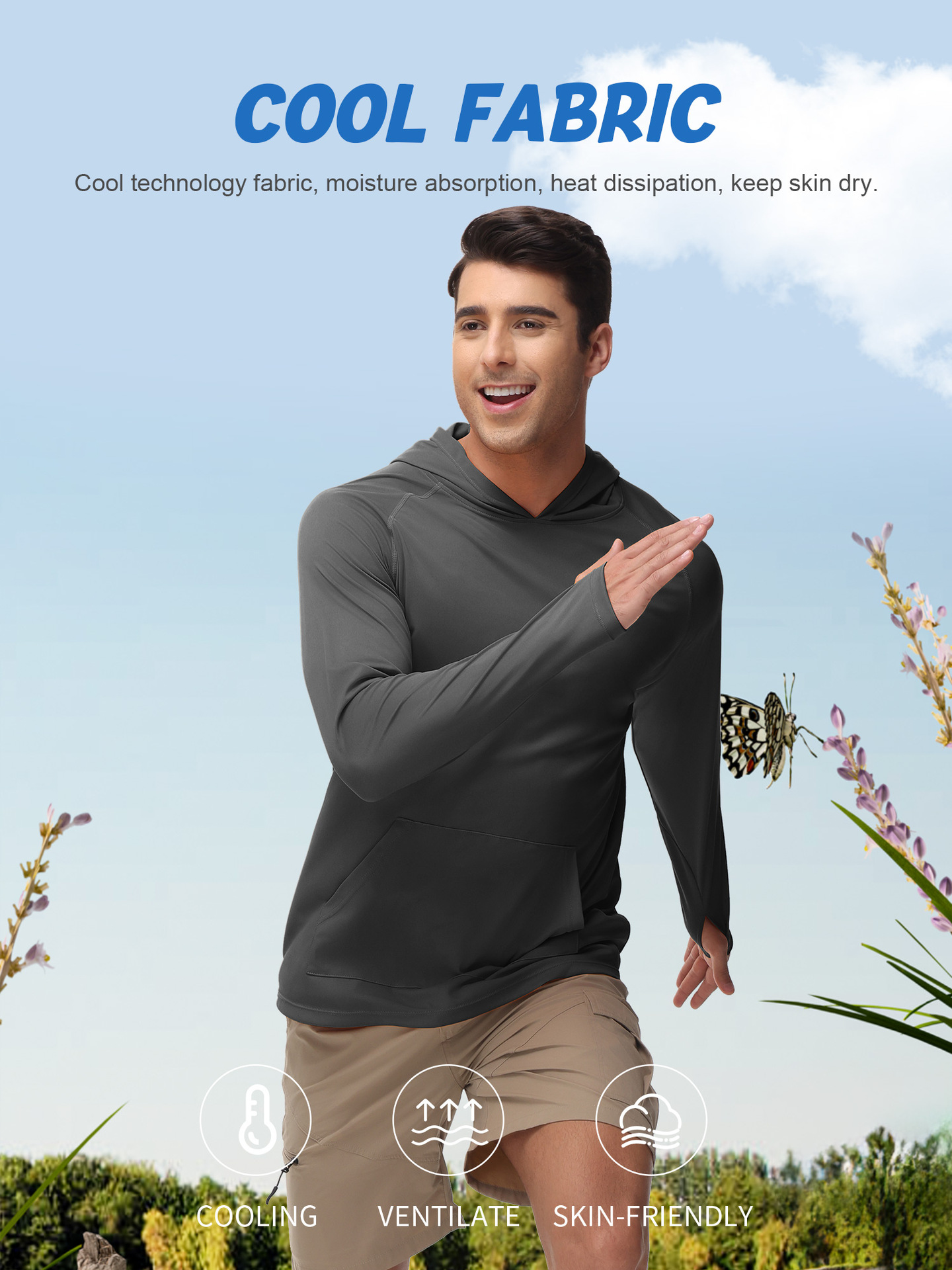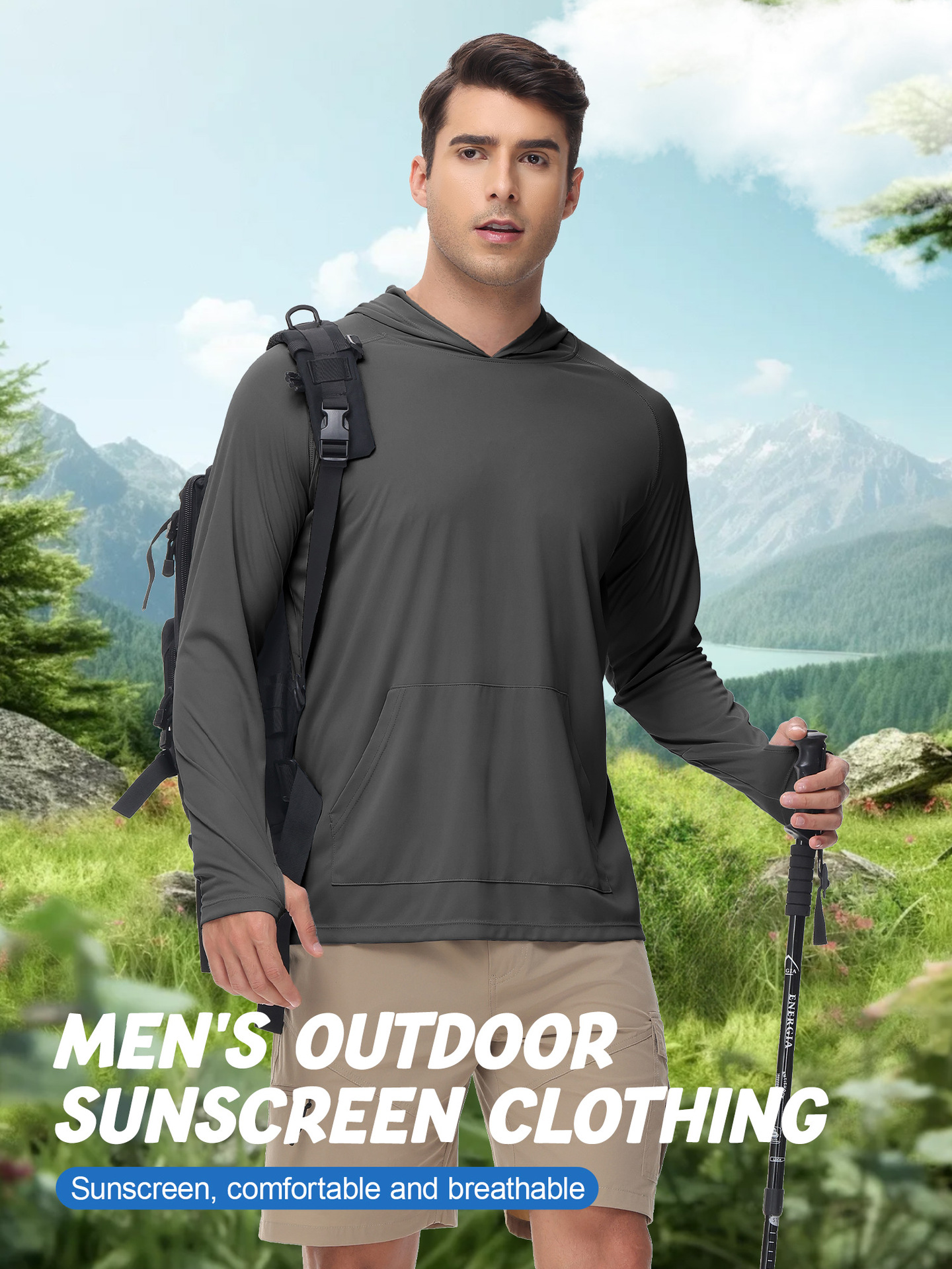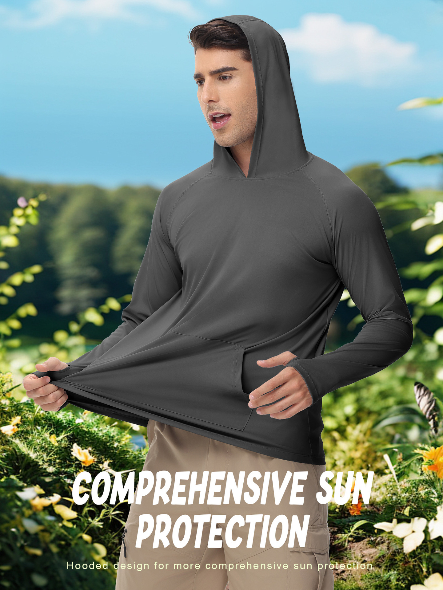 男士新款一体连帽防晒衣防紫外线跑步长袖T恤带拇指洞男士卫衣