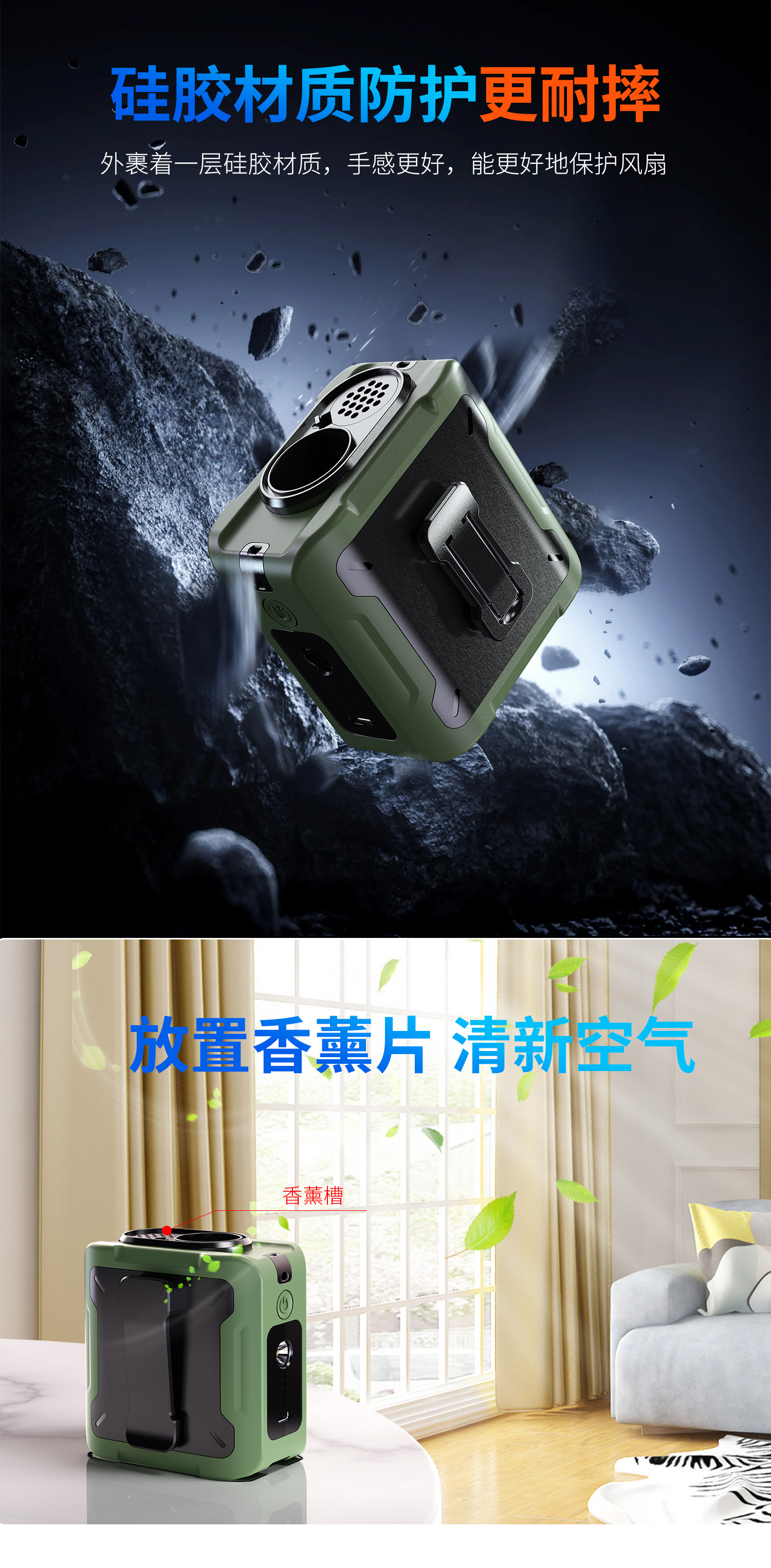 户外挂腰风扇便携夹腰usb充电随身无叶挂脖风扇长续航手持小风扇