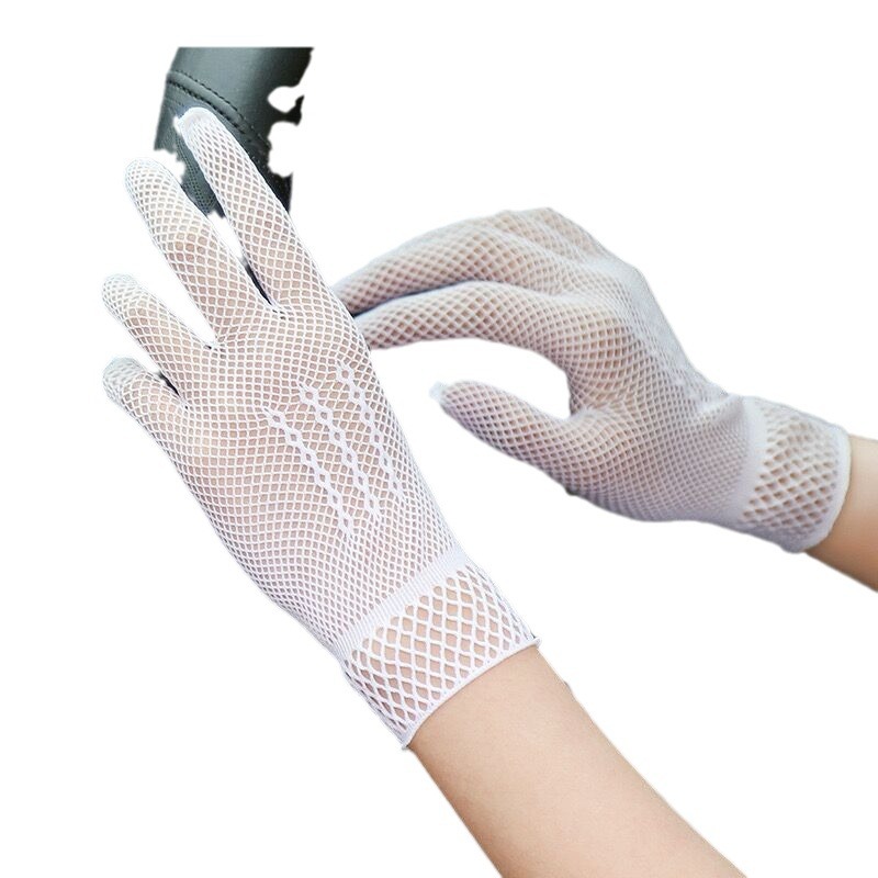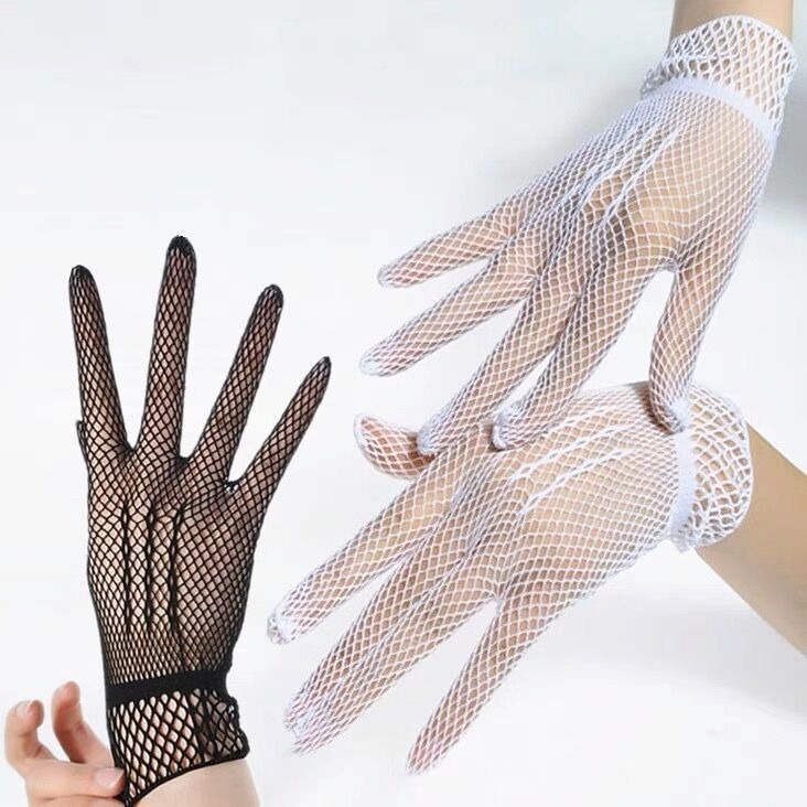 夏季薄个性网眼手套白色礼仪网纱手套高弹氨纶防晒渔网婚礼手套