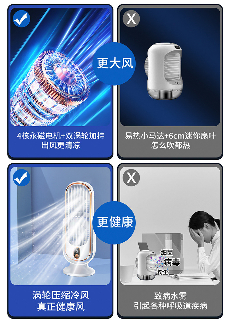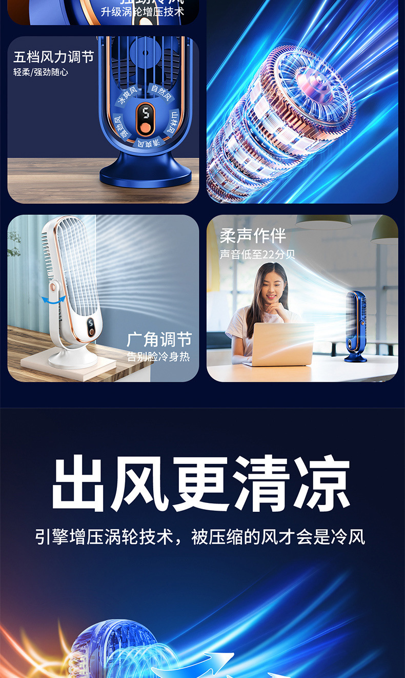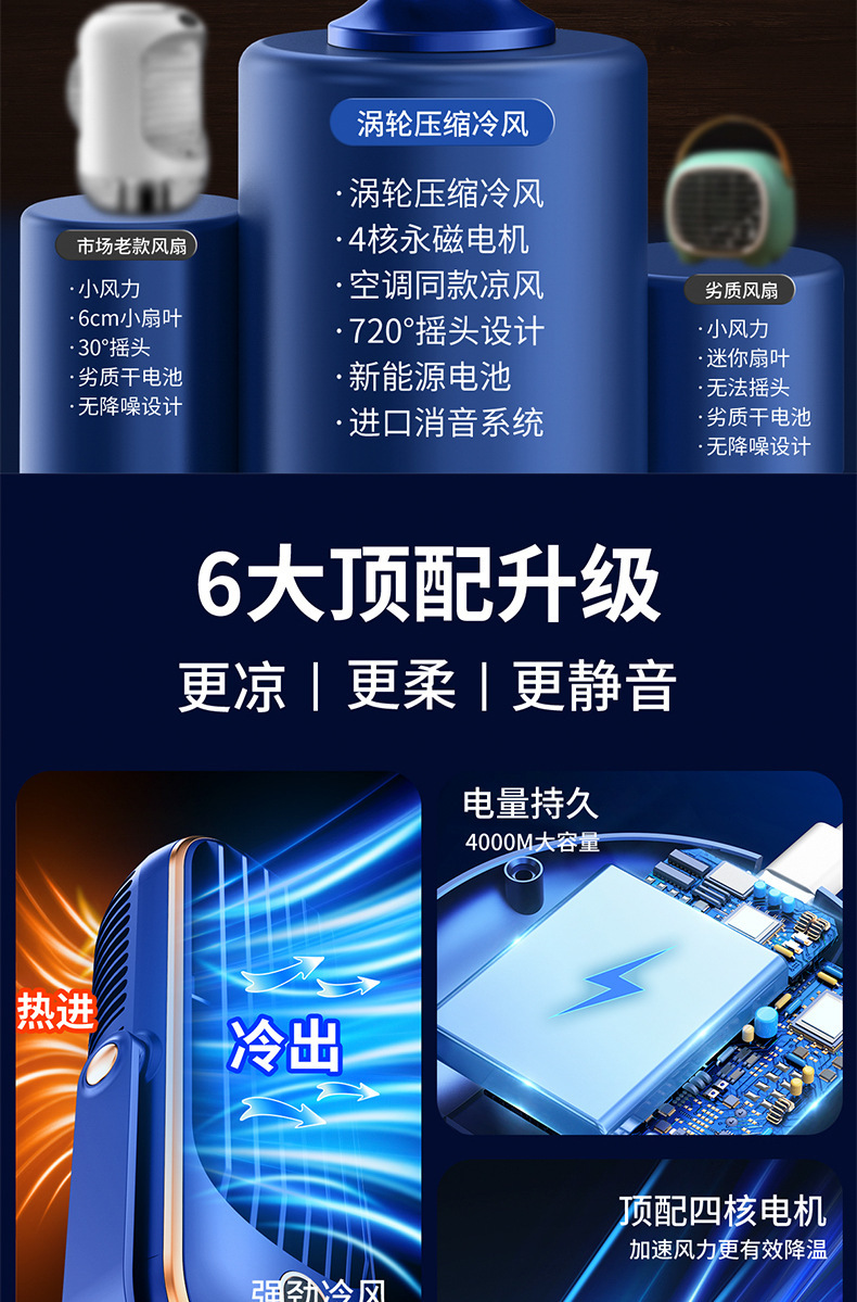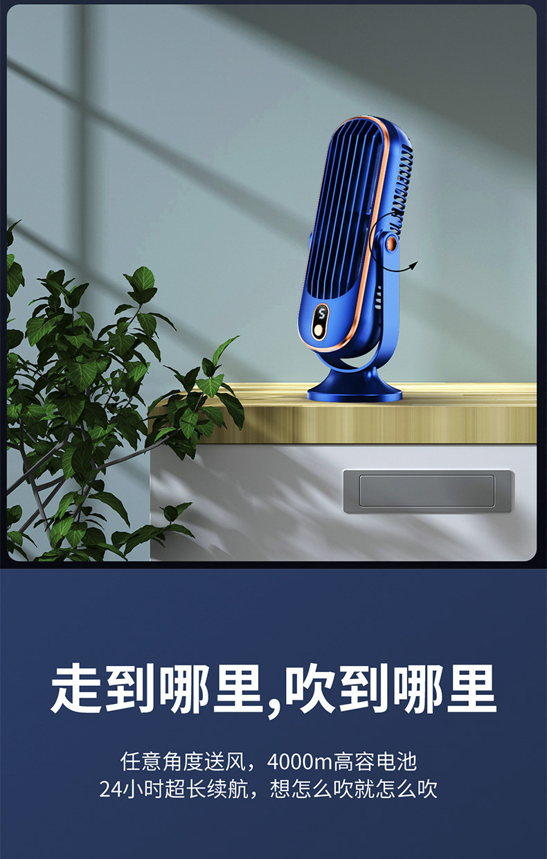 跨境桌面便携式小风扇USB可充电车载家用摇头款风扇迷你电风扇