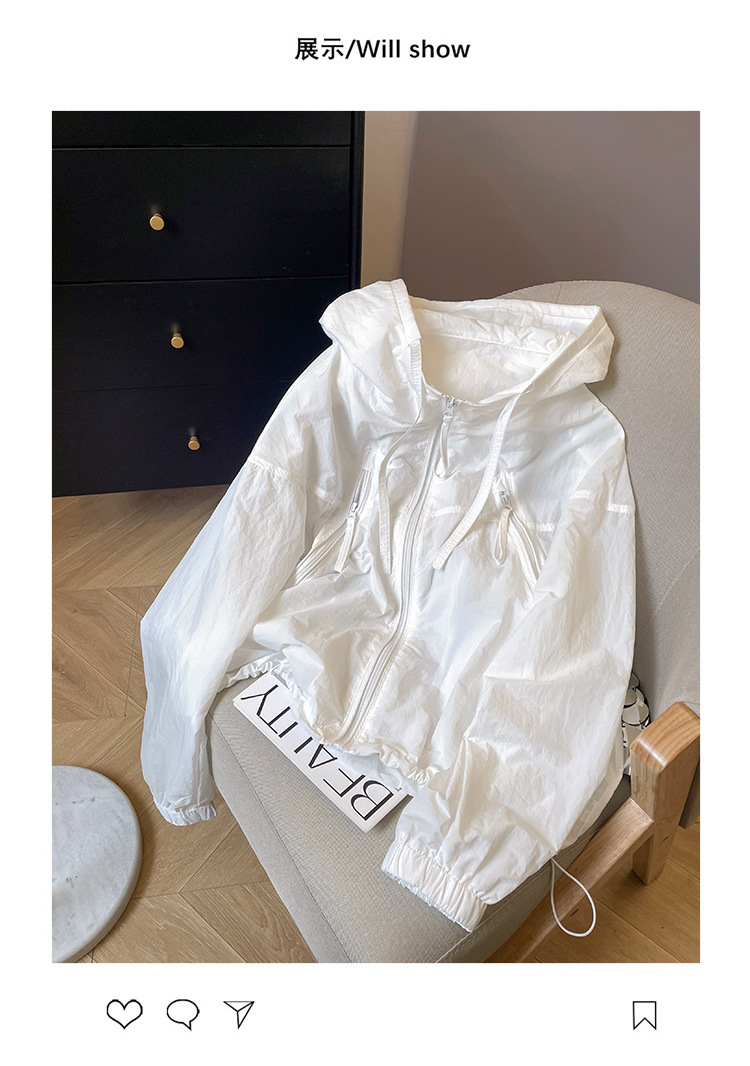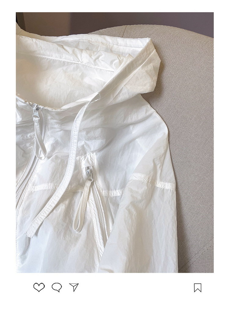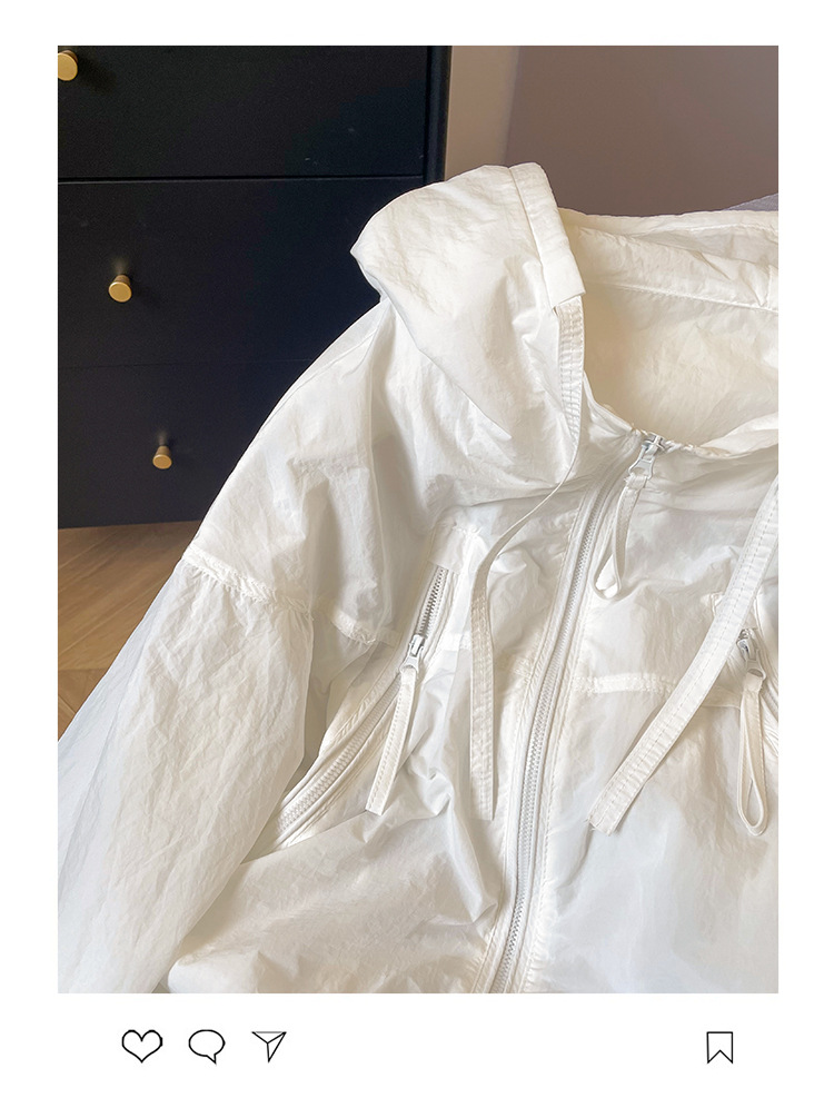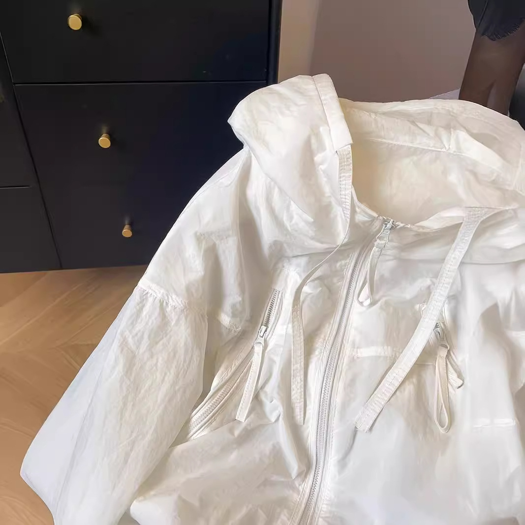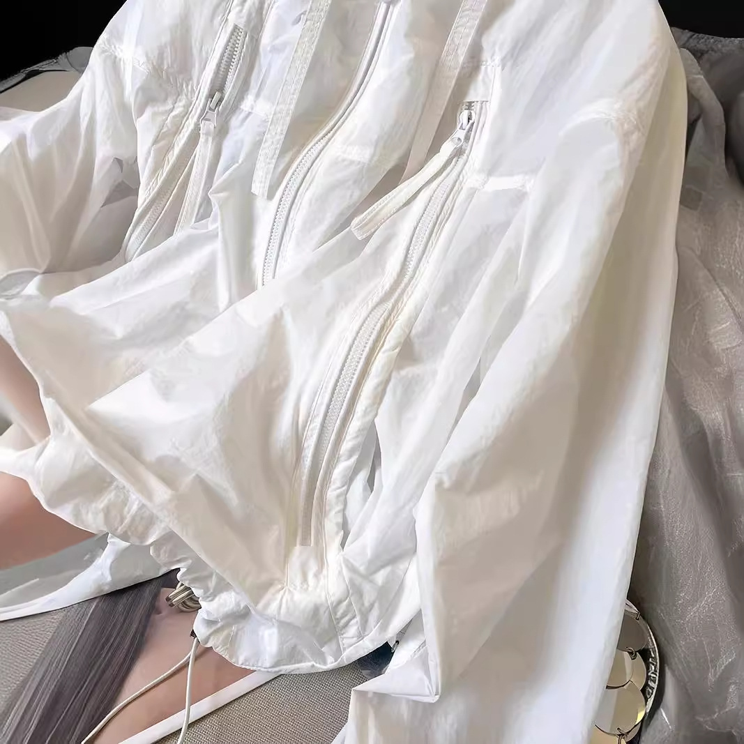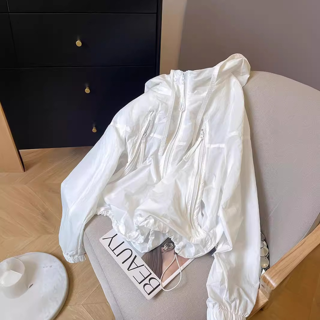品牌外贸~剪标专柜白色薄款防晒衣女夏抽绳连帽宽松透气长袖上衣