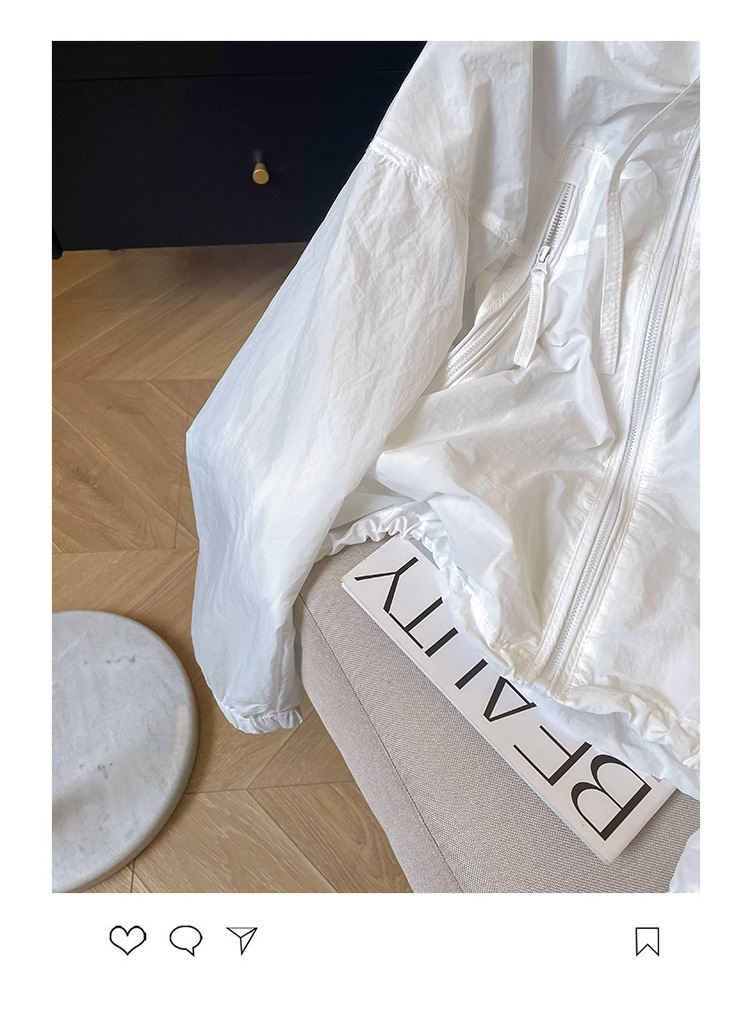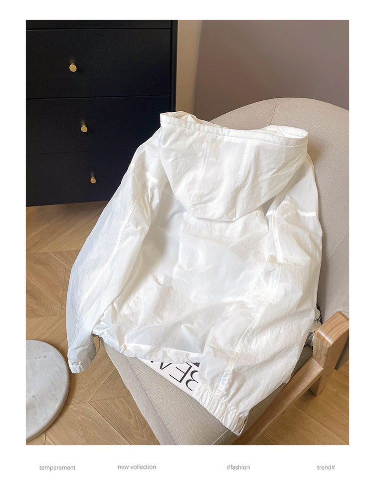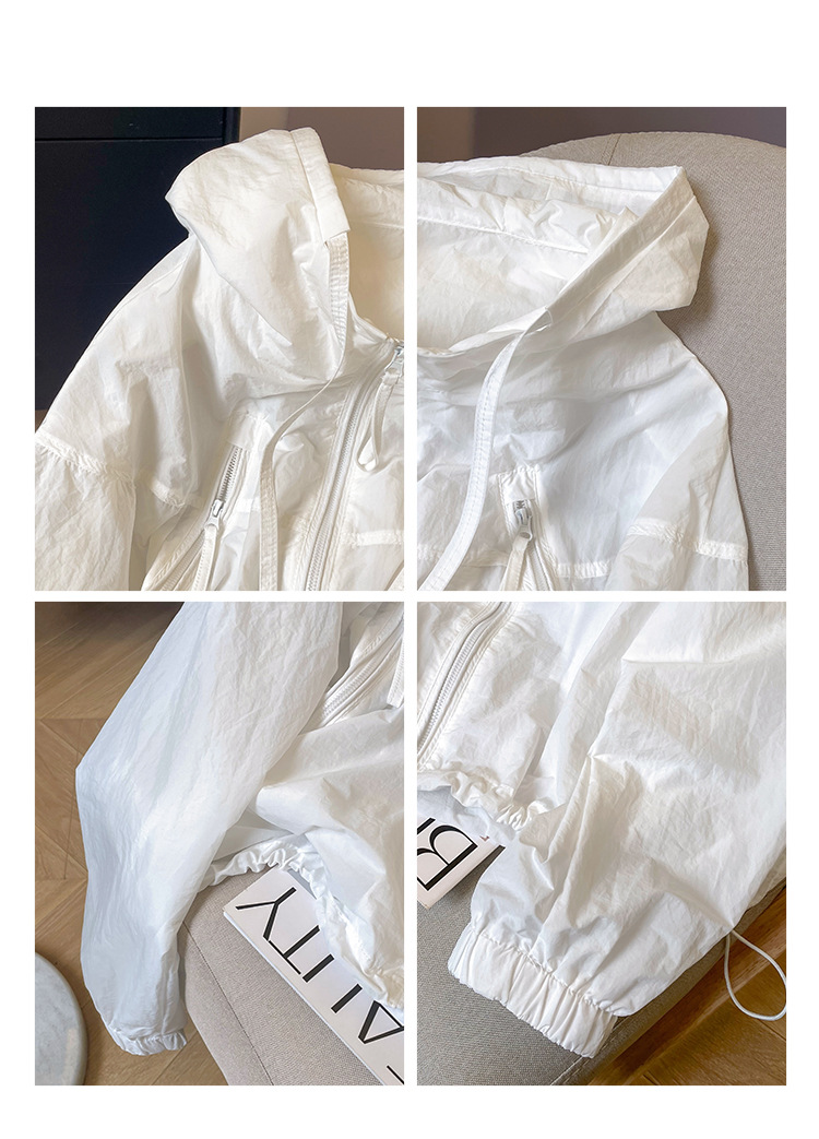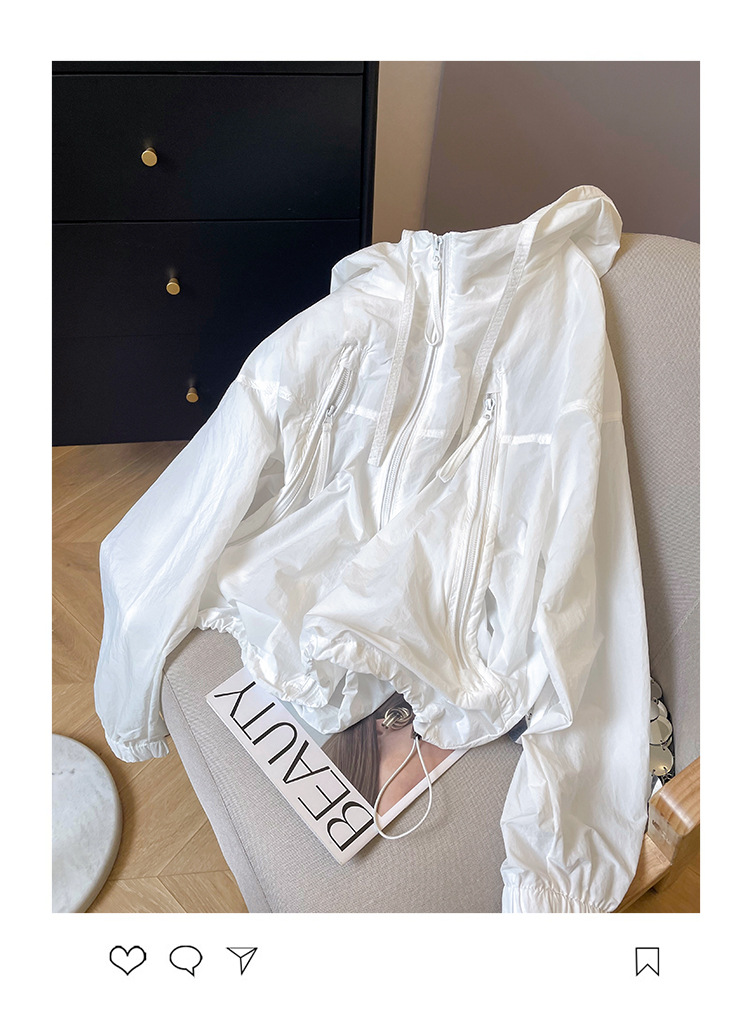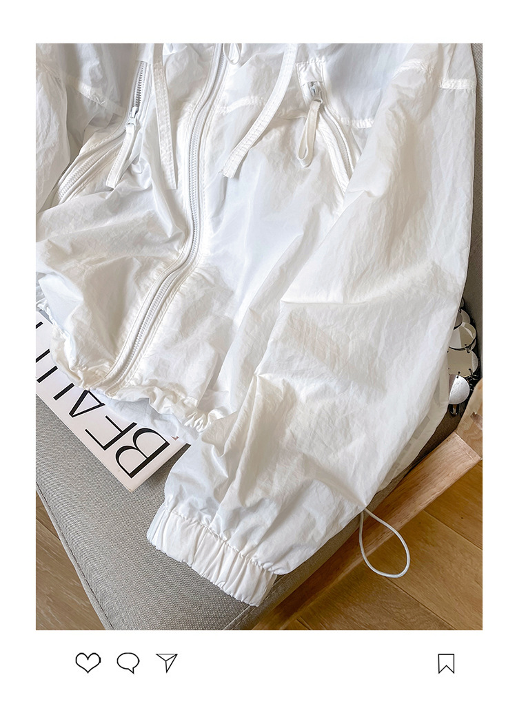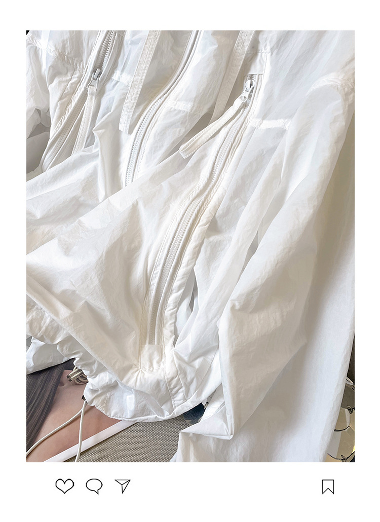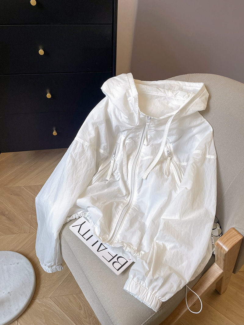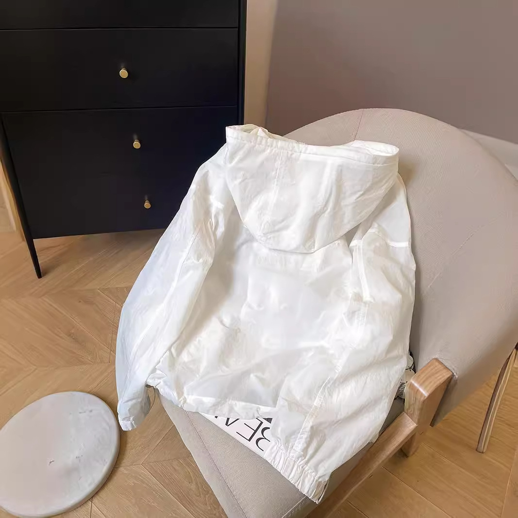 品牌外贸~剪标专柜白色薄款防晒衣女夏抽绳连帽宽松透气长袖上衣