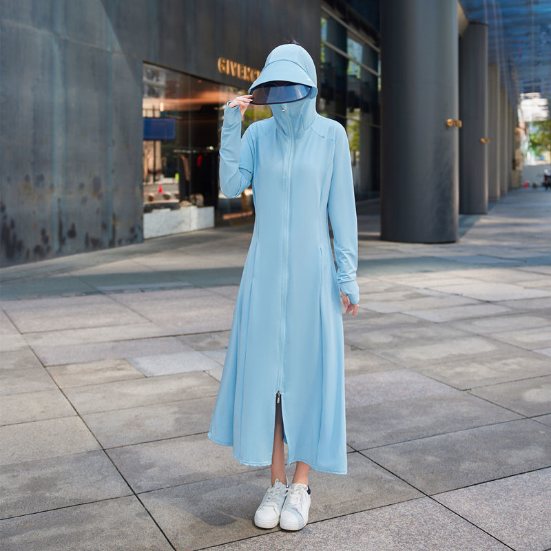冰丝防晒衣女长款2025夏新款薄款全身防紫外线宽松连帽透气防晒服