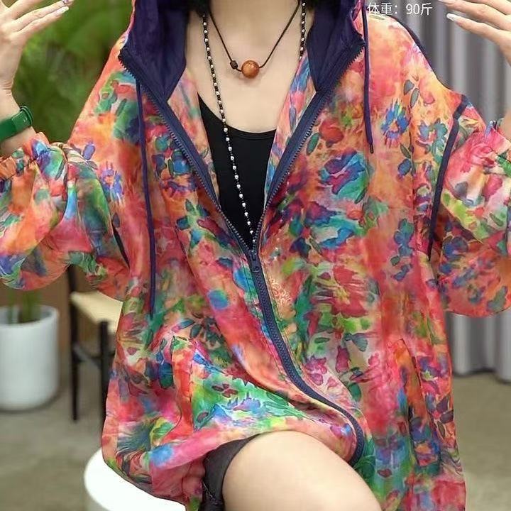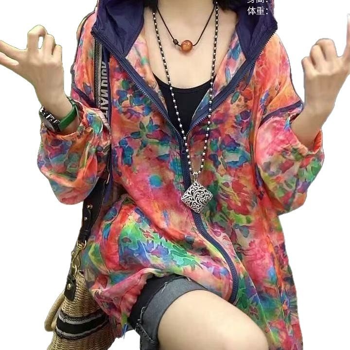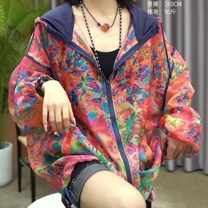 时尚拼接撞色印花连帽轻薄防晒衣外套女夏季新款休闲宽松百搭上衣