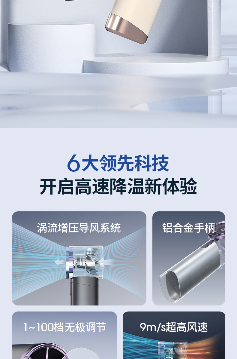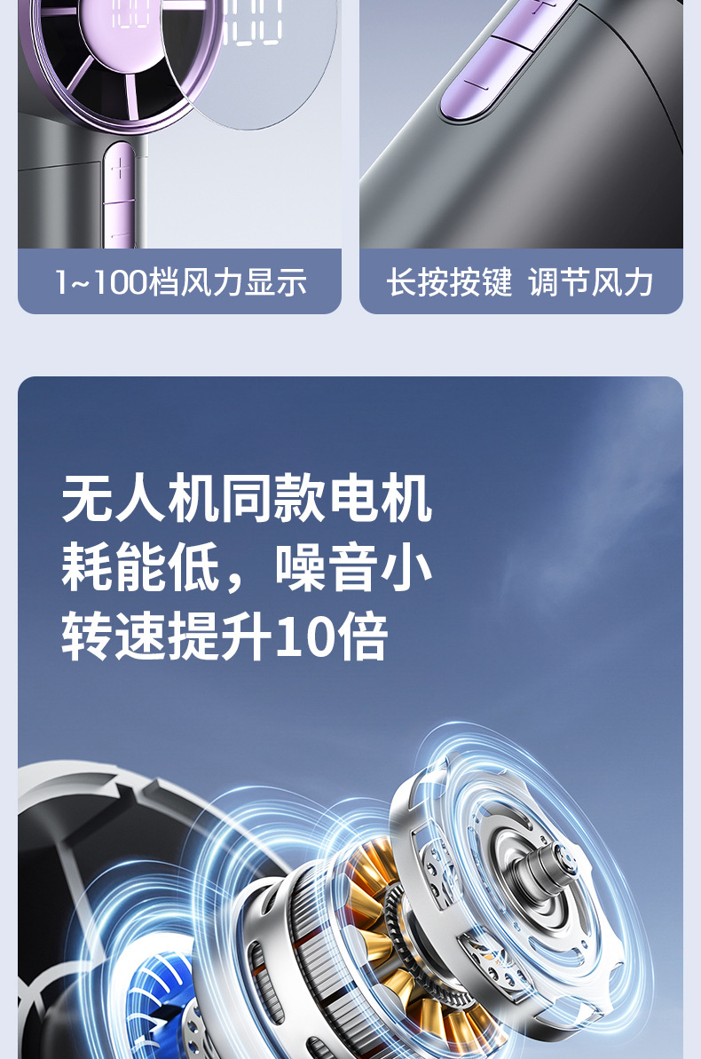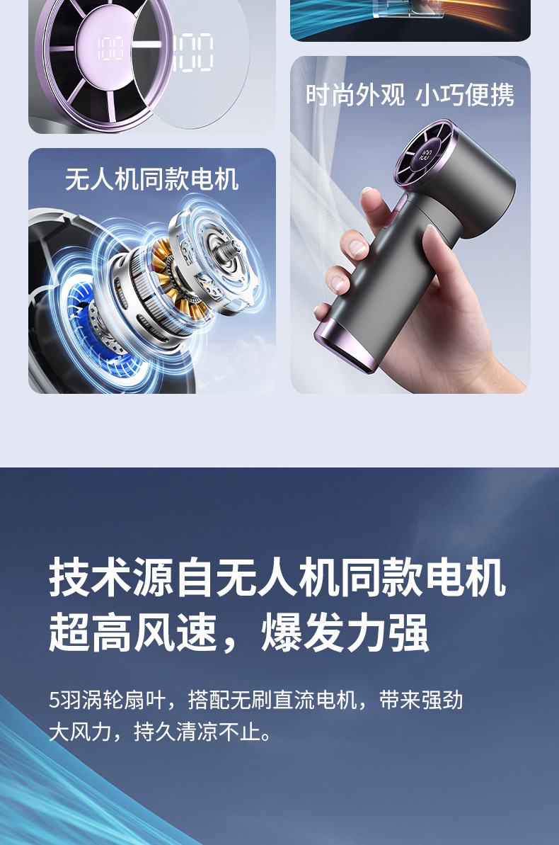 铝合金usb100挡无极高速小风扇手持充电便携迷你充电式超长续航