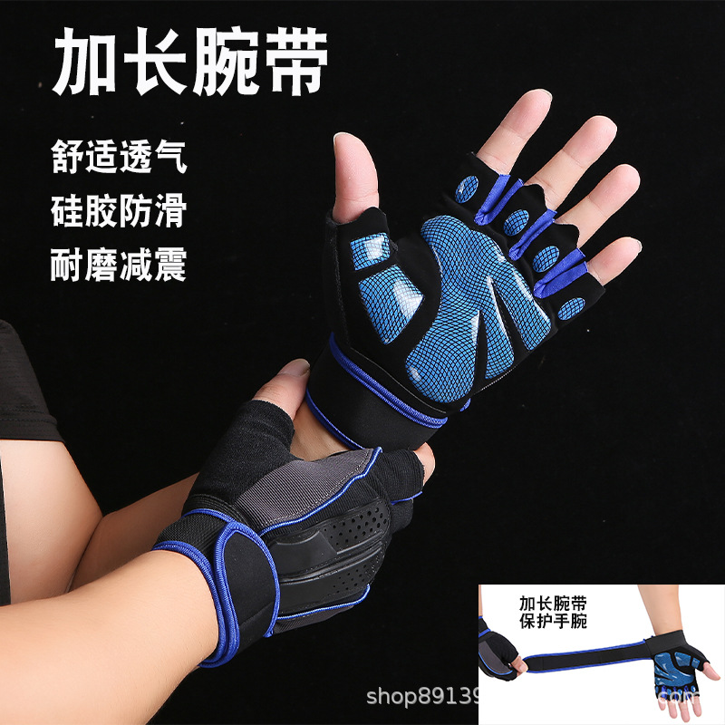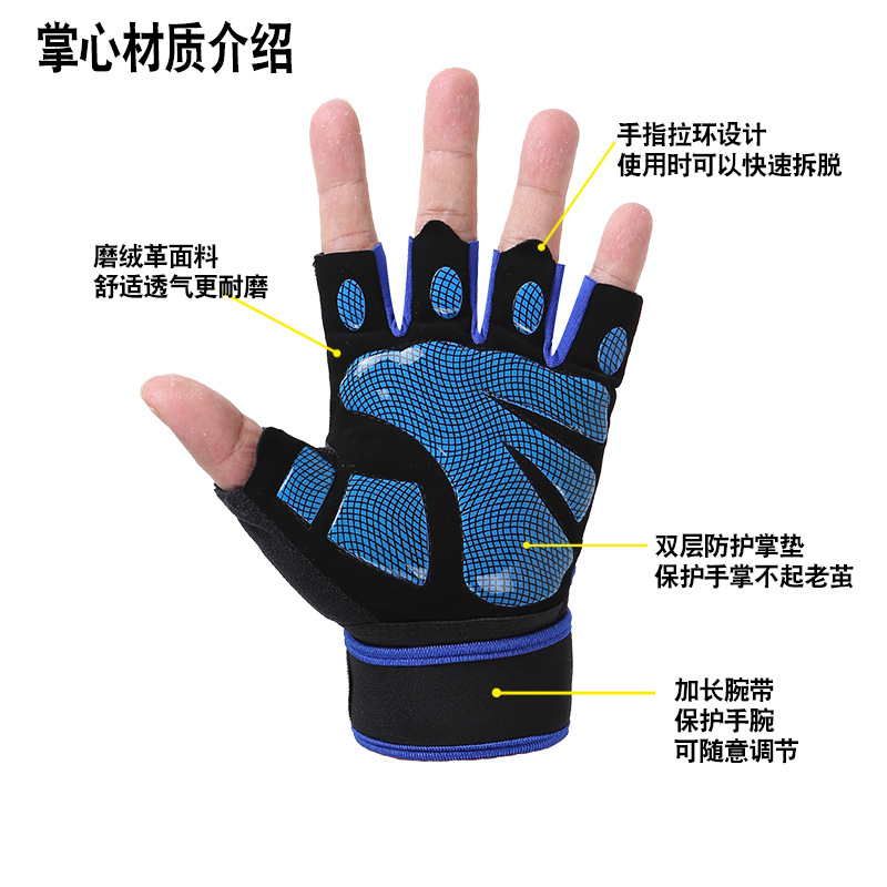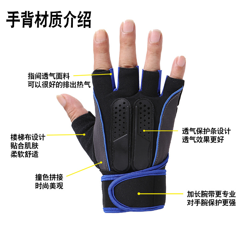 户外运动男女手套薄款训练哑铃单杠护手掌防滑耐磨加长腕带半指