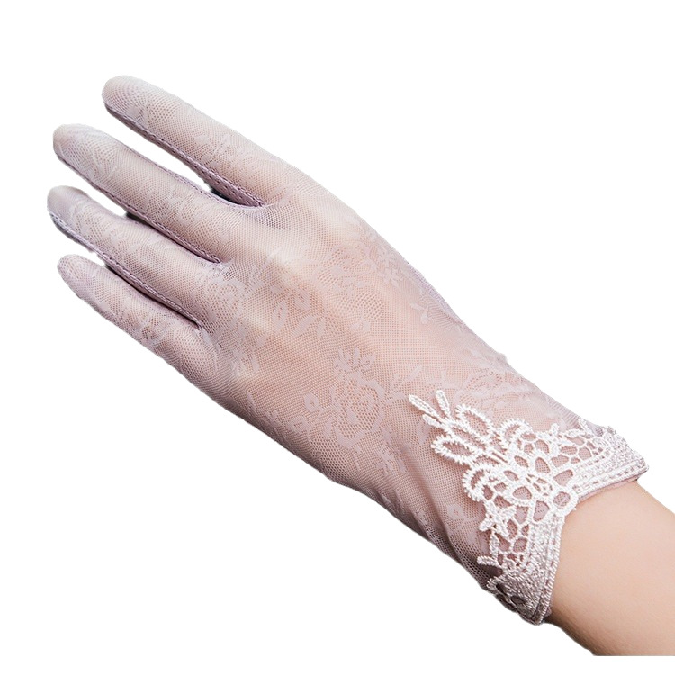 防晒手套女夏冰丝薄款防紫外线开车防滑触屏蕾丝短款批发现货供应