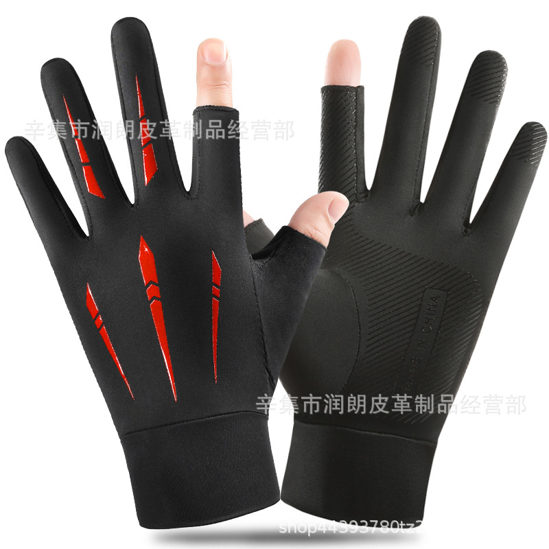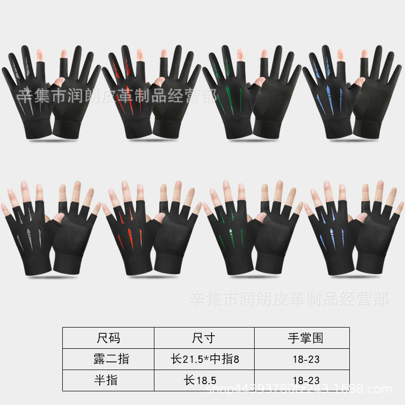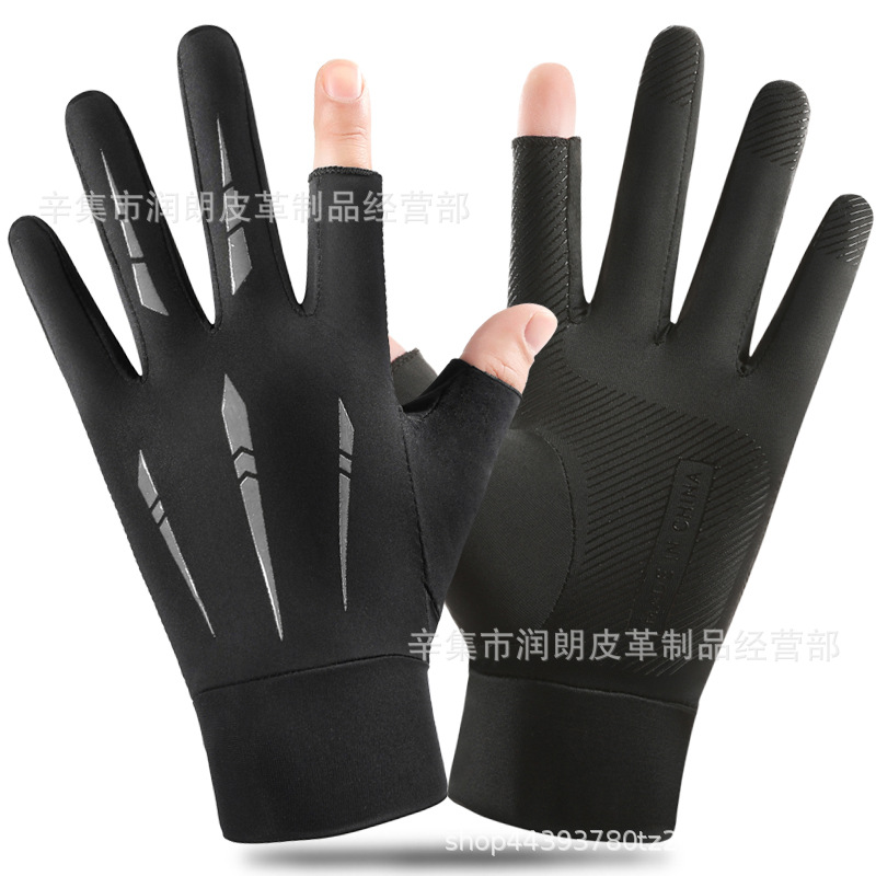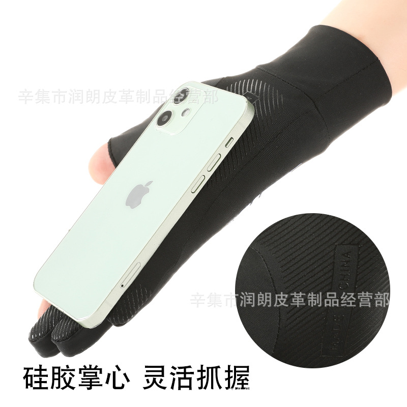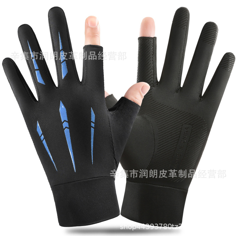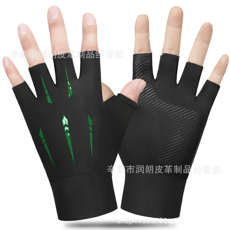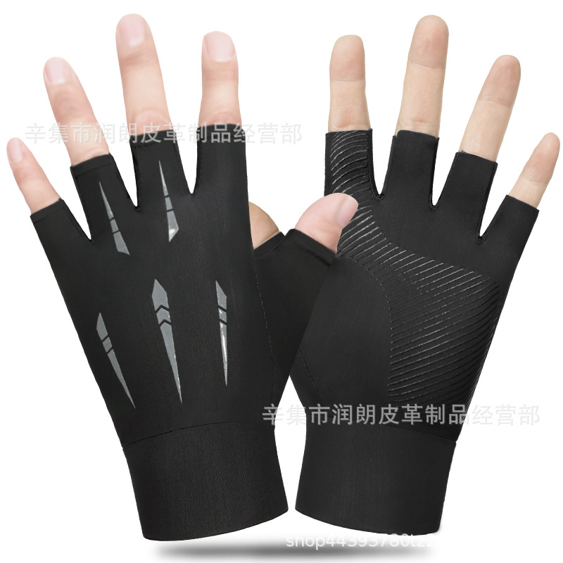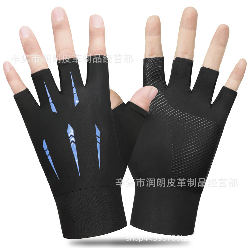 骑行手套男士夏季凉爽薄款防晒防磨冰丝开车二指手套钓鱼半指手套