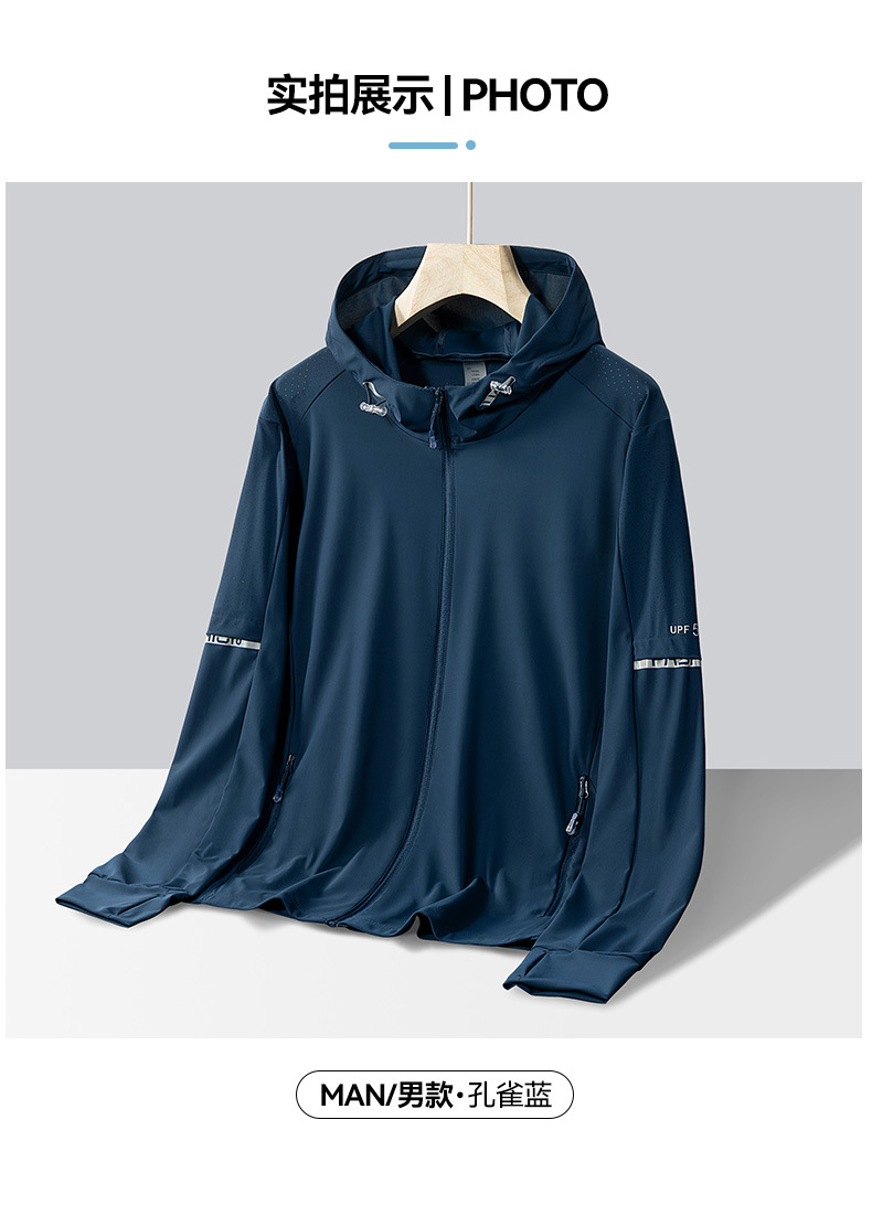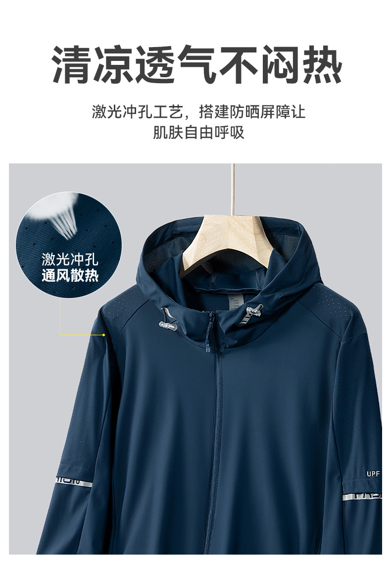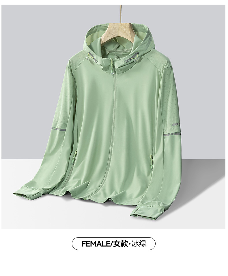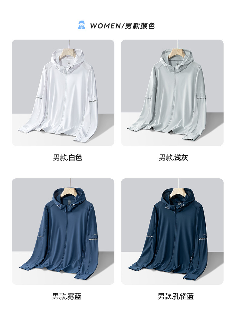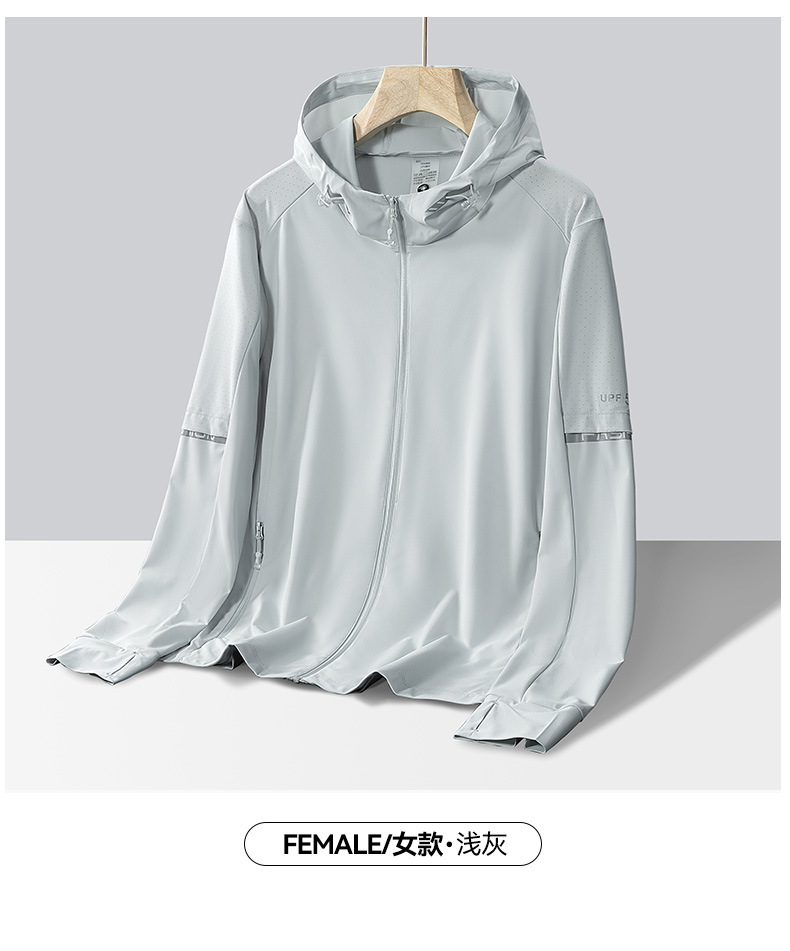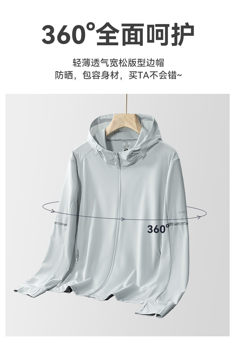 户外运动UPF50+水冷冰感连帽原纱防晒衣情侣款百搭透气凉感防晒衣